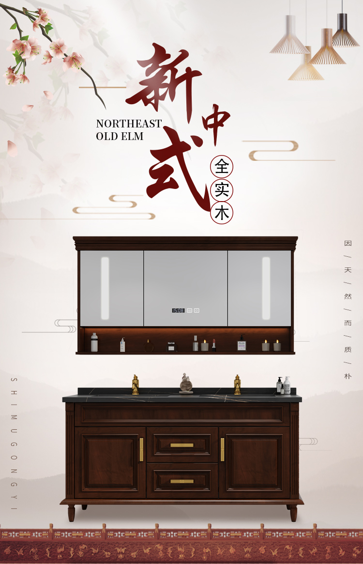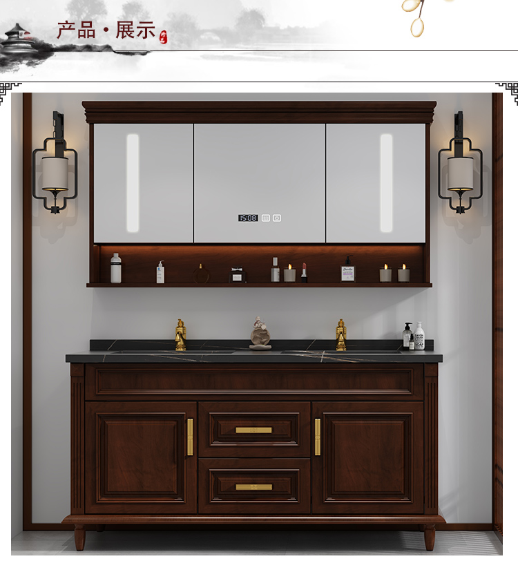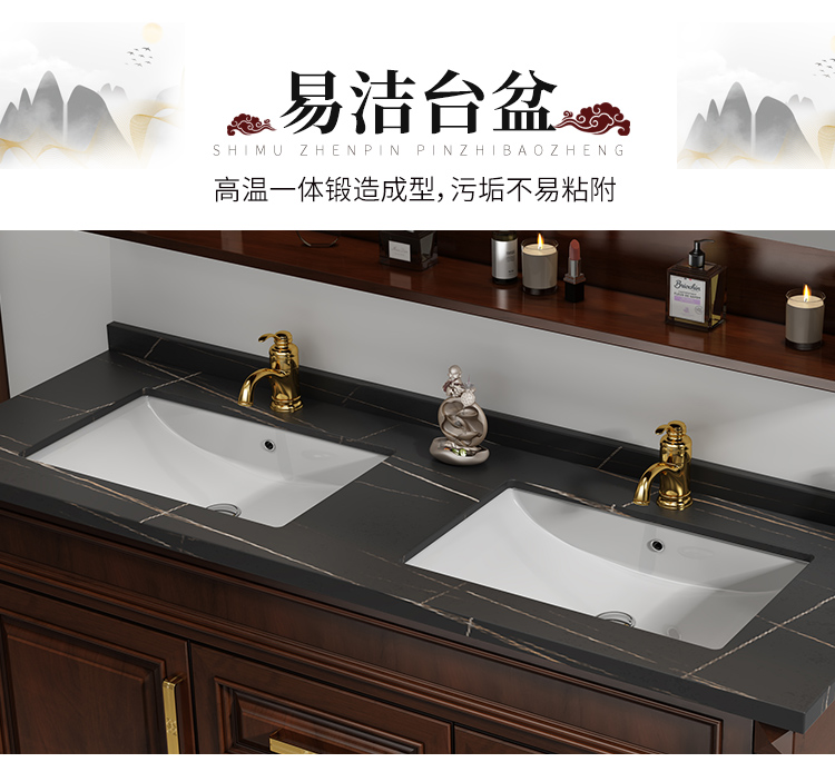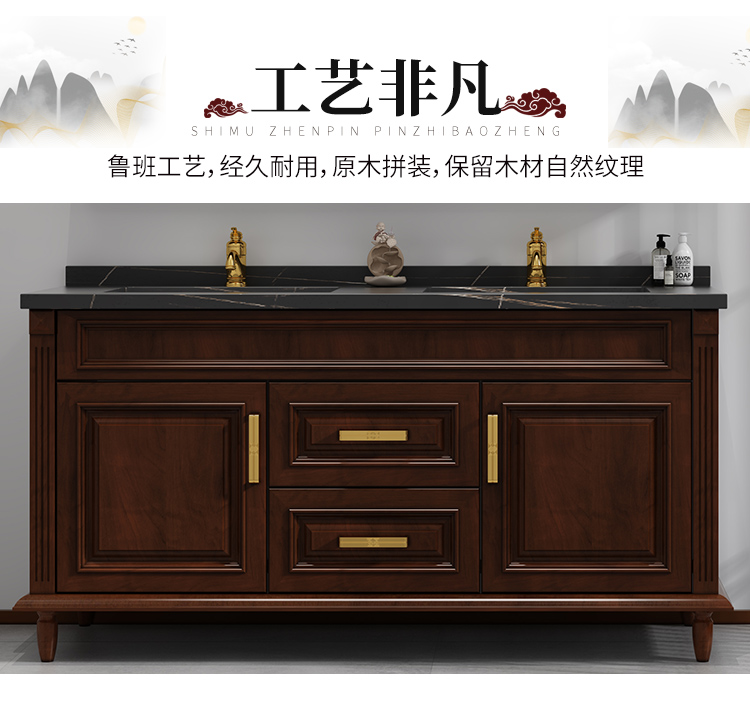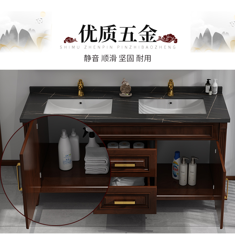 Tủ phòng tắm kiểu Mỹ gỗ cứng từ sàn đến trần nhà vệ sinh bằng gỗ sồi bồn rửa tay hồ bơi bồn tắm đôi thông minh kết hợp tủ phòng tắm