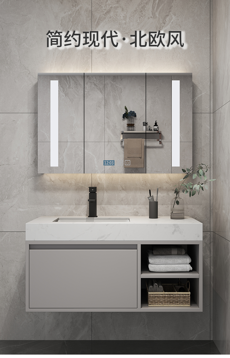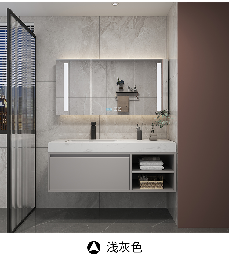 Tủ phòng tắm sang trọng nhẹ kết hợp đá phiến hiện đại tối giản tích hợp chậu rửa nhà vệ sinh chậu rửa thông minh chậu rửa