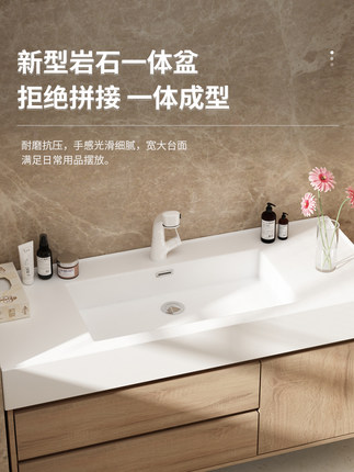Tủ phòng tắm sang trọng nhẹ kết hợp phòng tắm chậu rửa nhà vệ sinh chậu rửa bàn rửa hiện đại tối giản đá phiến một