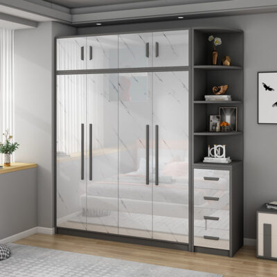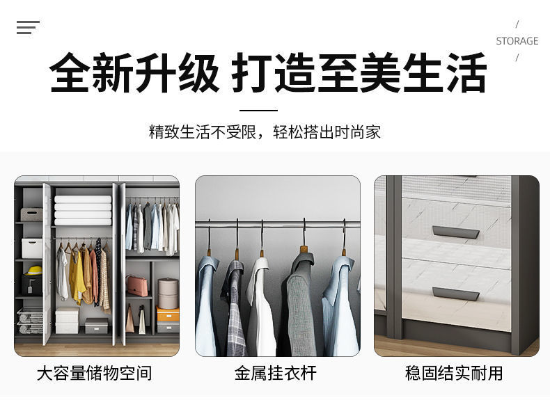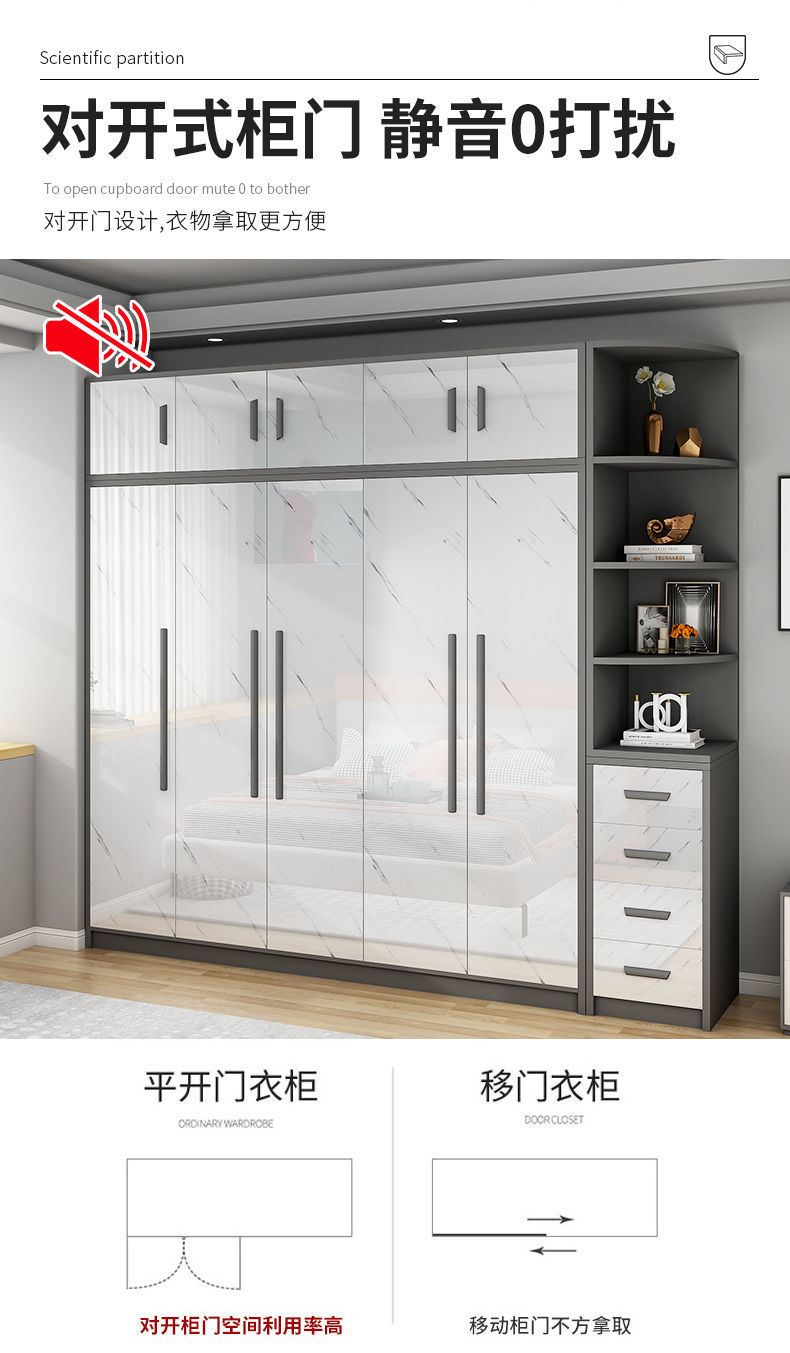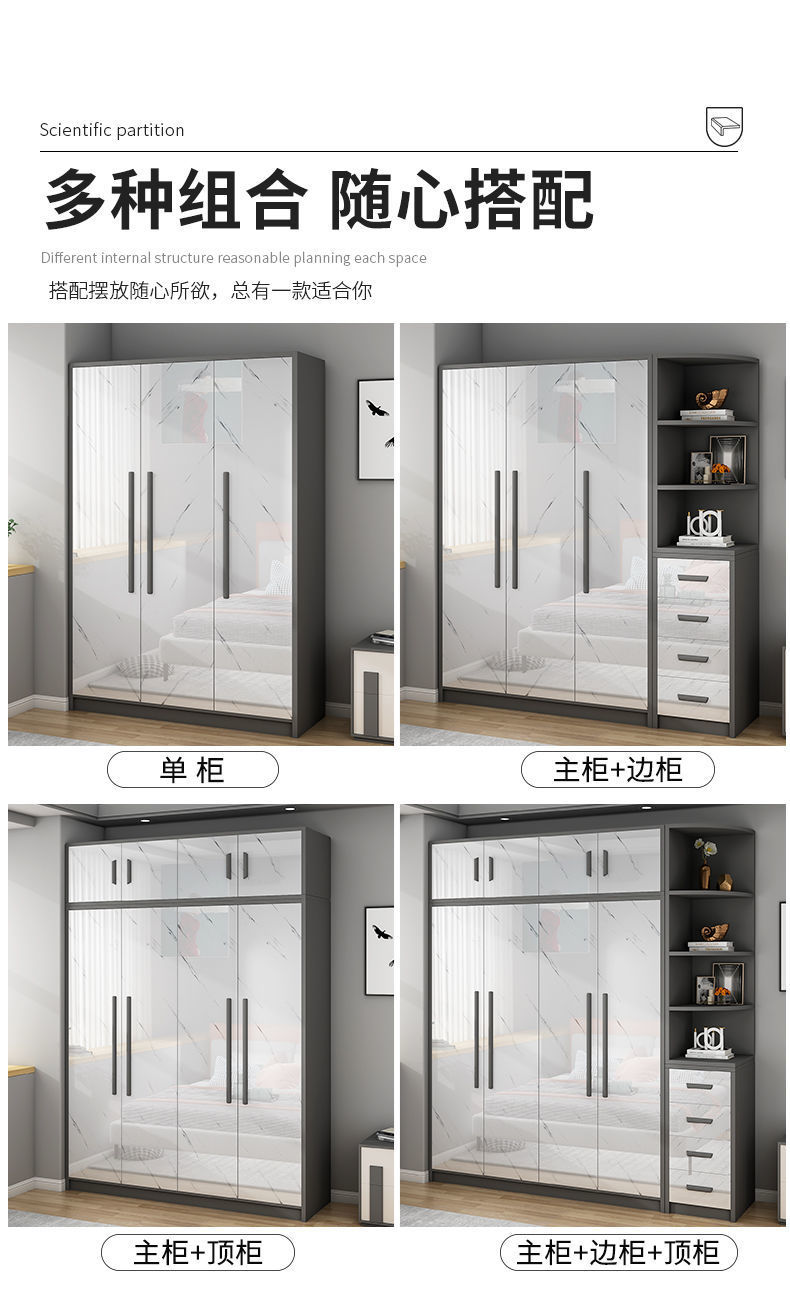 Tủ quần áo cửa trượt phòng ngủ gia đình tủ quần áo gỗ nguyên khối lắp ráp đơn giản phòng cho thuê có lưu trữ tủ quần áo người lớn tiết kiệm
