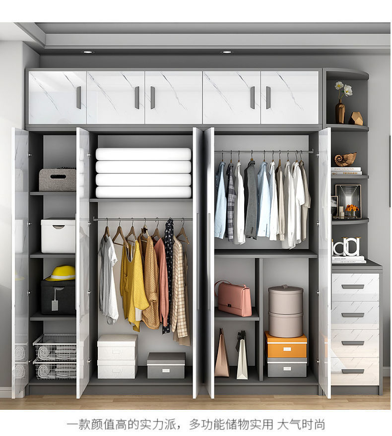 Tủ quần áo cửa trượt phòng ngủ gia đình tủ quần áo gỗ nguyên khối lắp ráp đơn giản phòng cho thuê có lưu trữ tủ quần áo người lớn tiết kiệm
