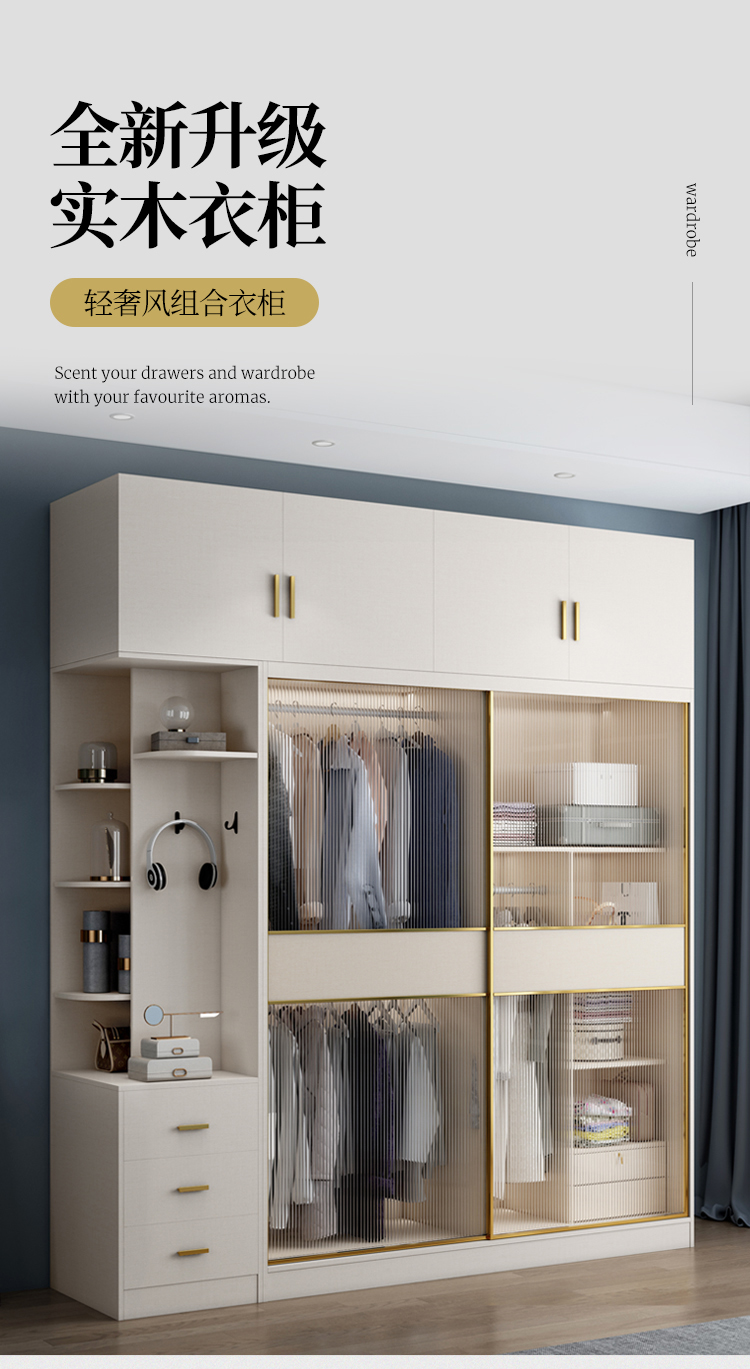 Tủ quần áo gỗ cứng màu sáng phòng ngủ nhà sang trọng lưu trữ phòng ngủ chính cửa trượt cửa kính hiện đại cửa trượt lưu trữ tủ quần áo lớn