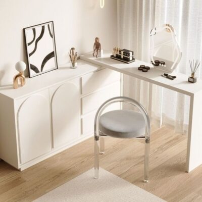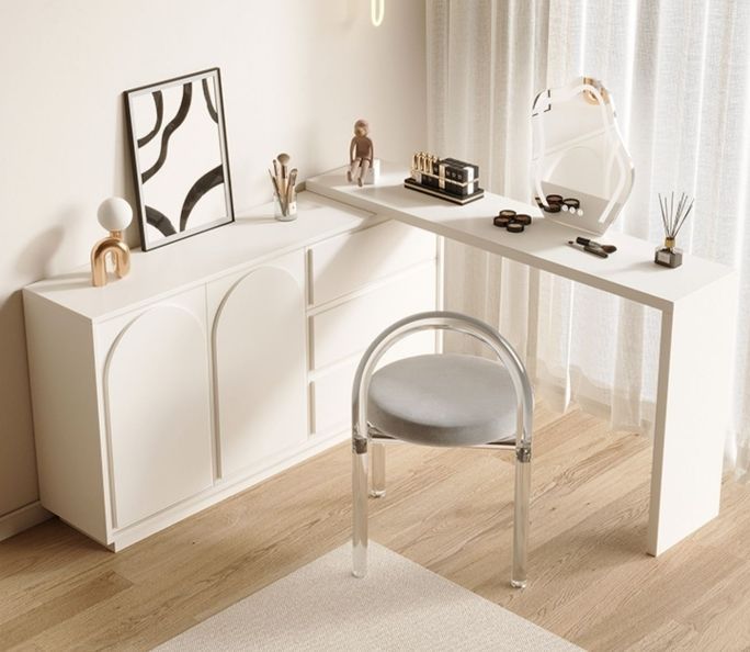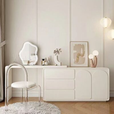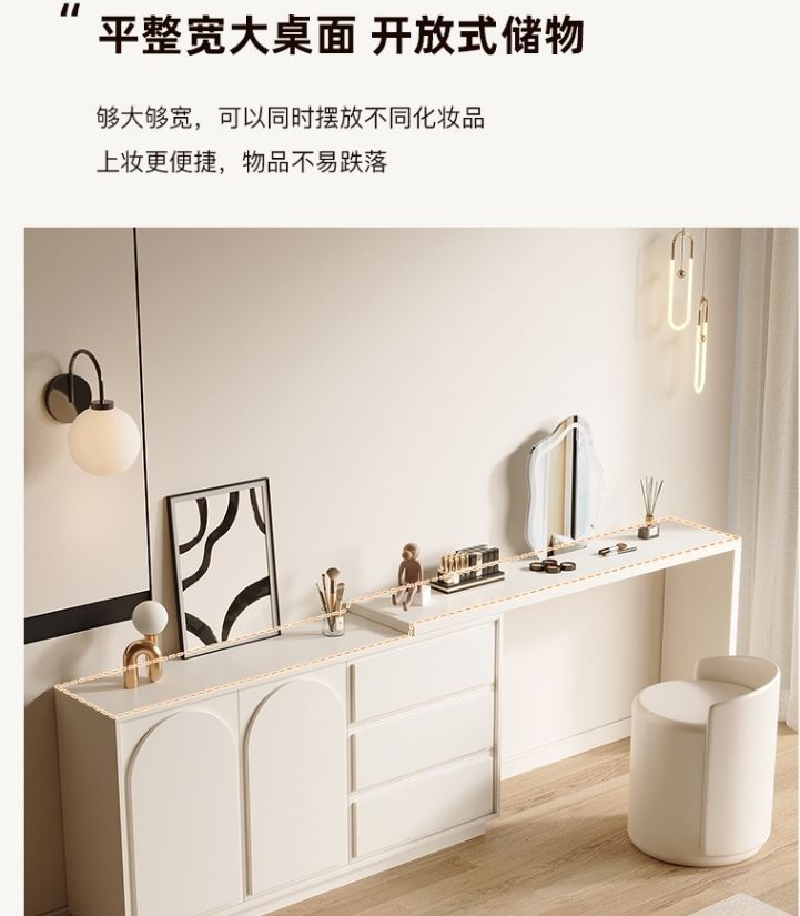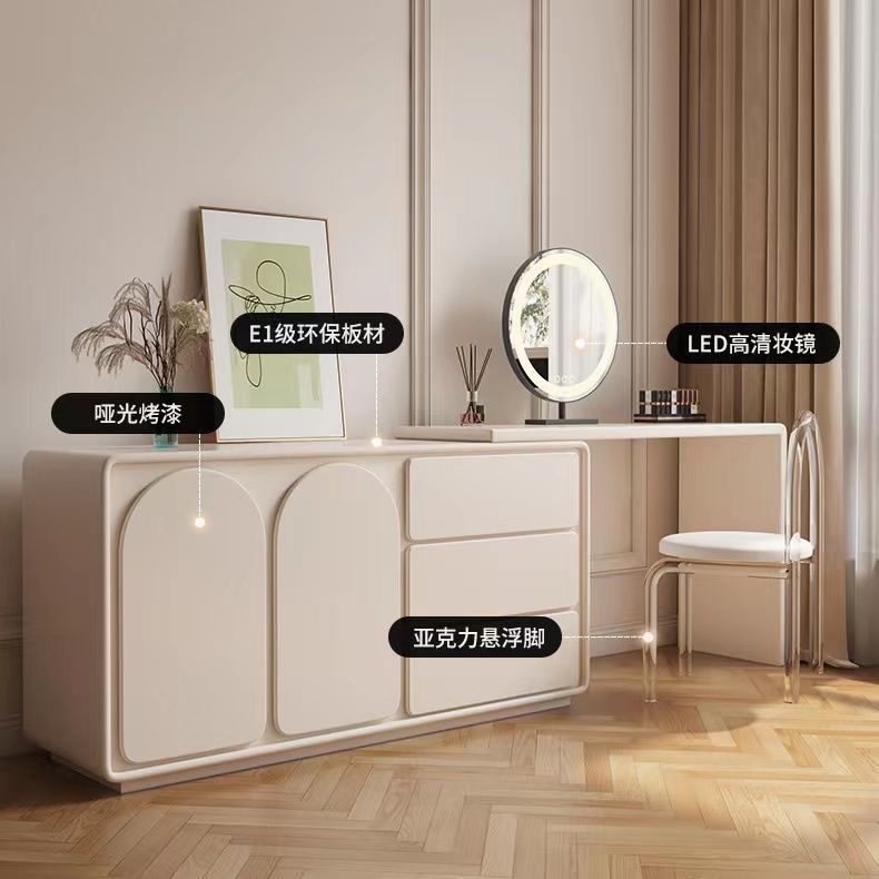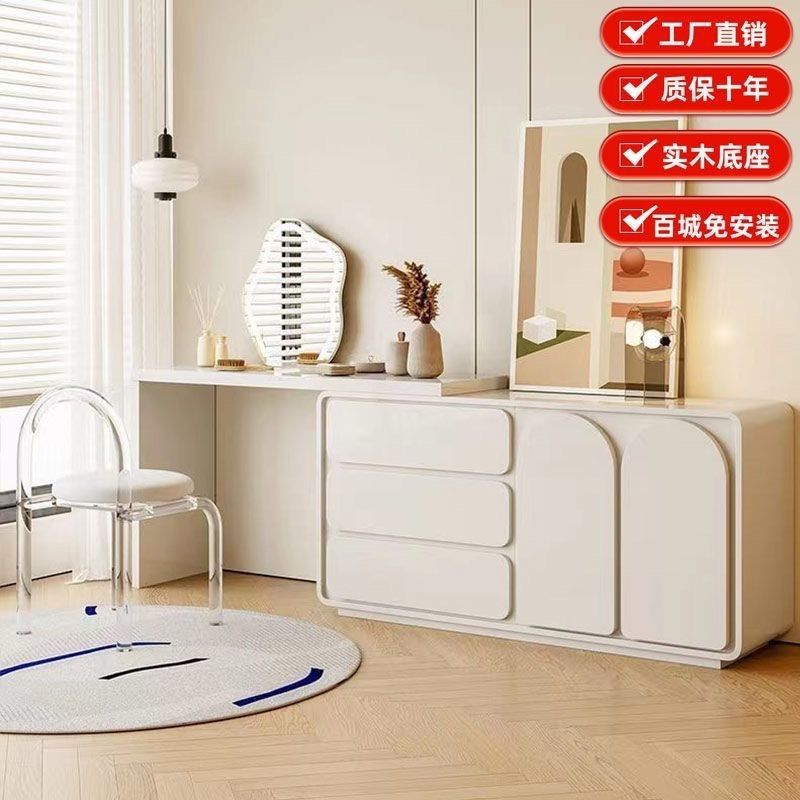 Tủ quần áo gỗ nguyên khối phong cách kem cửa tủ tối giản hiện đại bàn tích hợp tủ quần áo kiểu Pháp