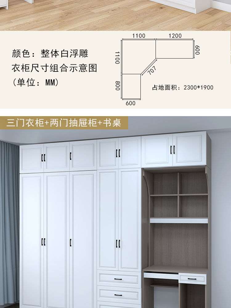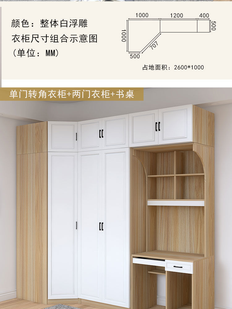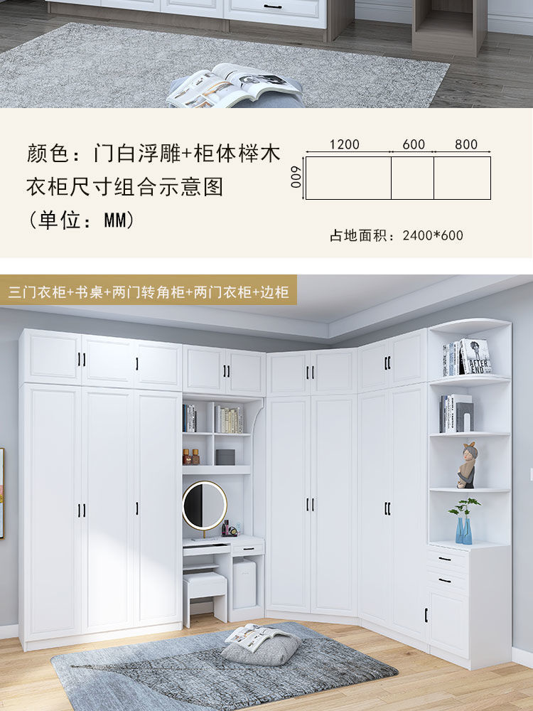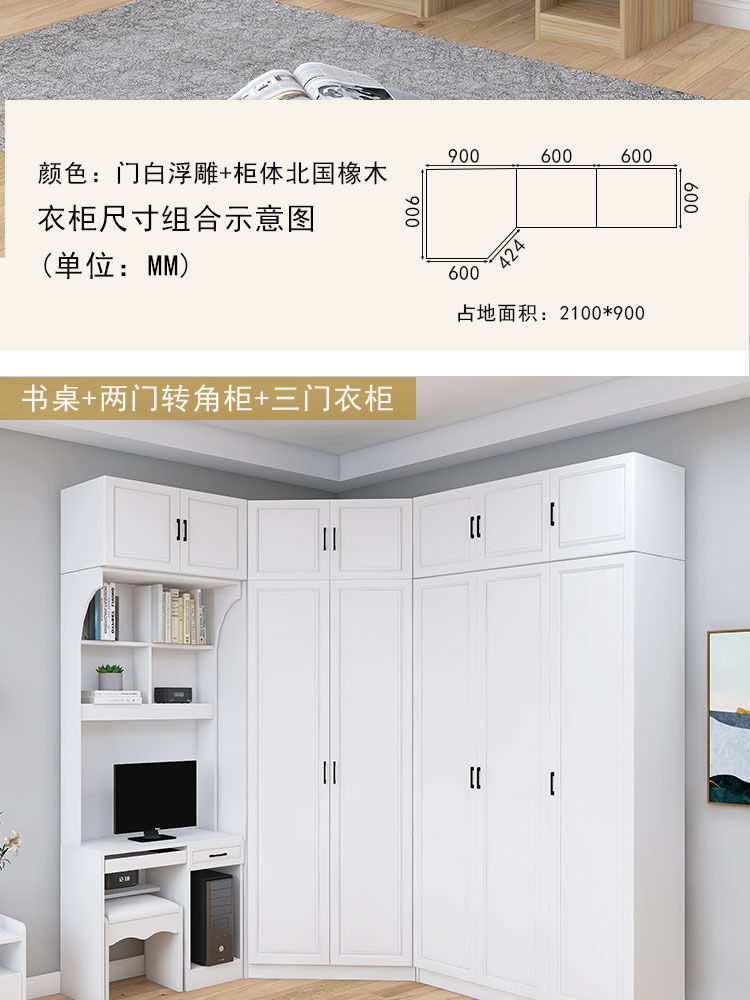 Tủ quần áo góc 90 độ tối giản phòng ngủ gia đình căn hộ nhỏ góc phòng ngủ chính 7 chữ kết hợp tủ quần áo bàn chữ L