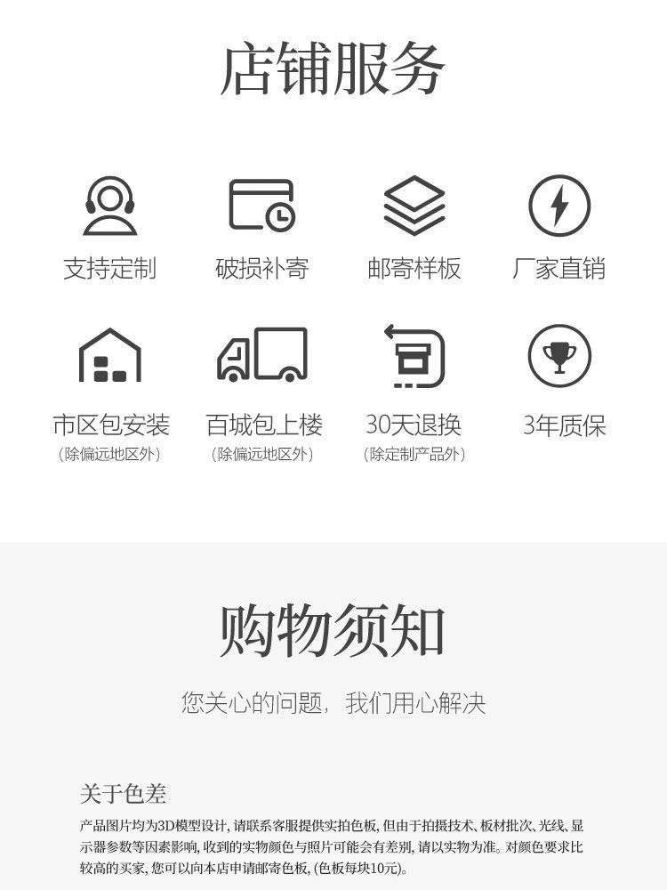 1.本工厂产品页面的标价都是不含税运价格。个别商品需要咨询客服补运费,否则有权利不发货,拍下默认遵守这规则。 2.需要开票另加税点。 3.由于单量较大,库存更新不及时,若少货客服会主动联系您,新疆,西藏,青海,海南,甘肃地区下单联系客服咨询是否能发货。本店铺为了提高发货速度,采用分箱多仓库发货,如果您购买组合款/大件,只收到1件的请耐心等待哦,可能是仓库先后派送,请在签收物品时先检查商品是否完整无损,如果少货缺件联系客服为您补发。