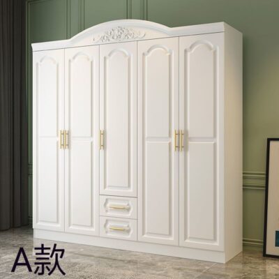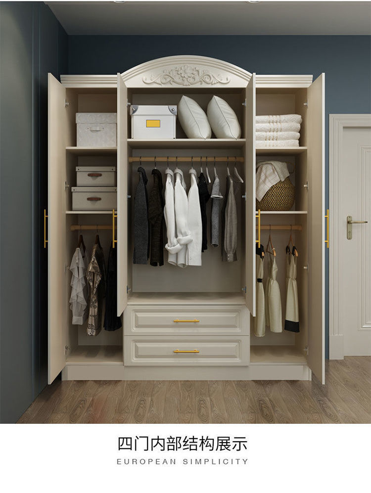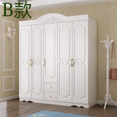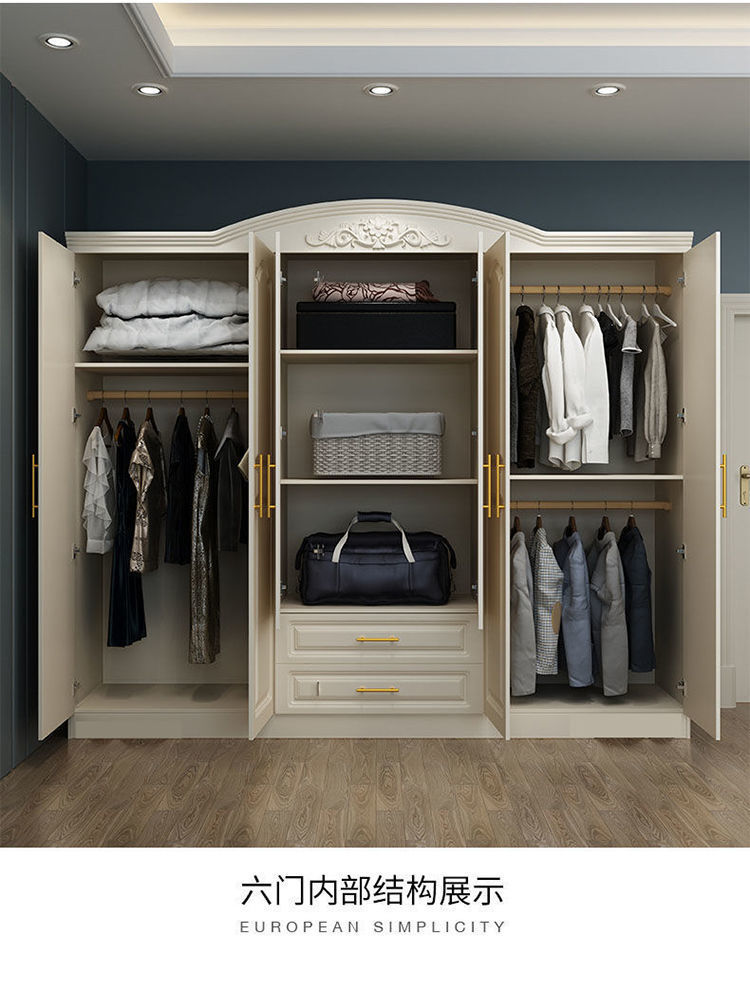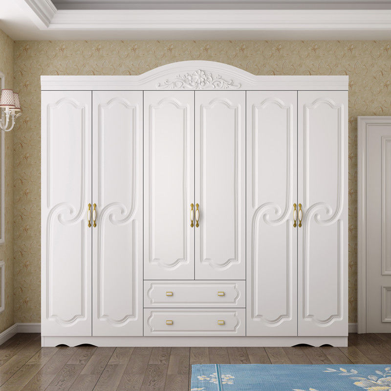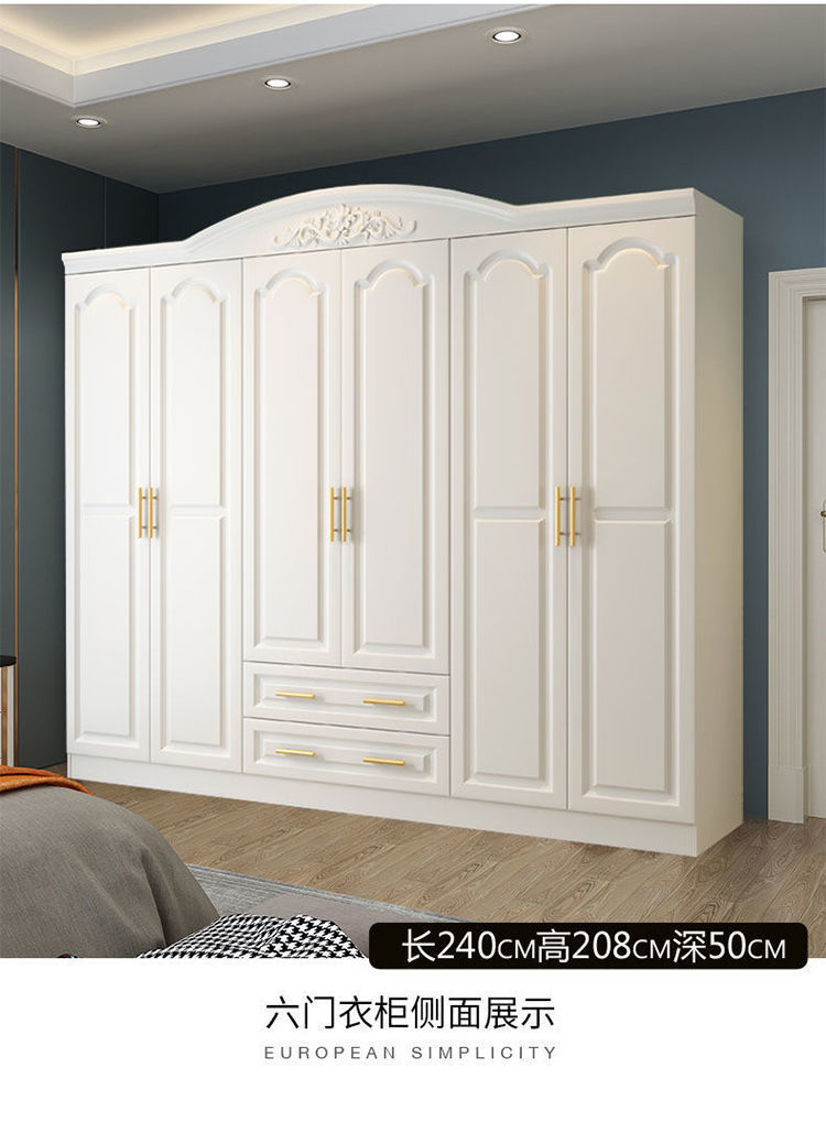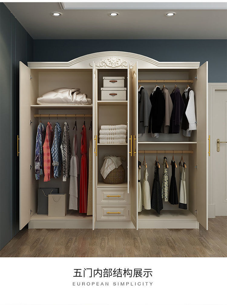 Tủ quần áo phong cách châu Âu bằng gỗ bốn cửa phòng ngủ hiện đại đơn giản năm cửa lắp ráp bảng điều khiển căn hộ nhỏ tủ quần áo lớn màu trắng sáu cửa