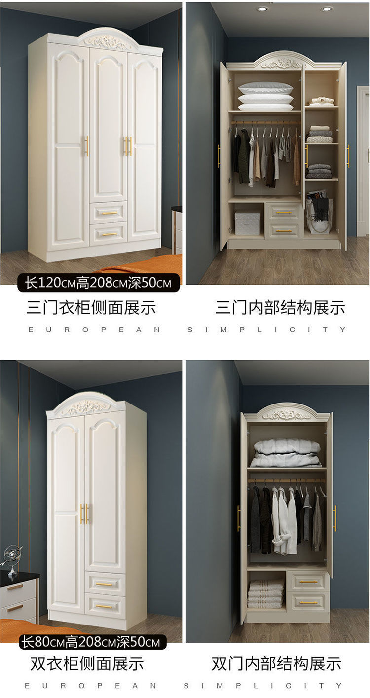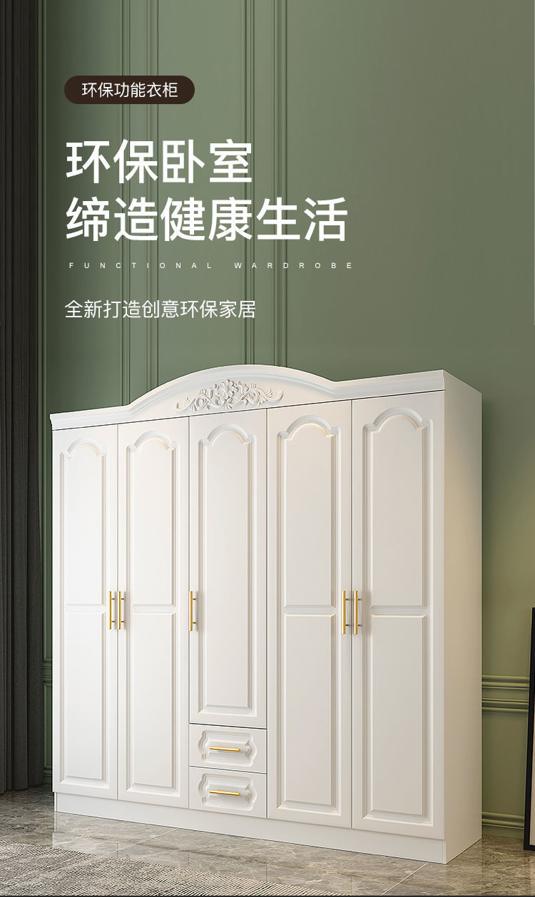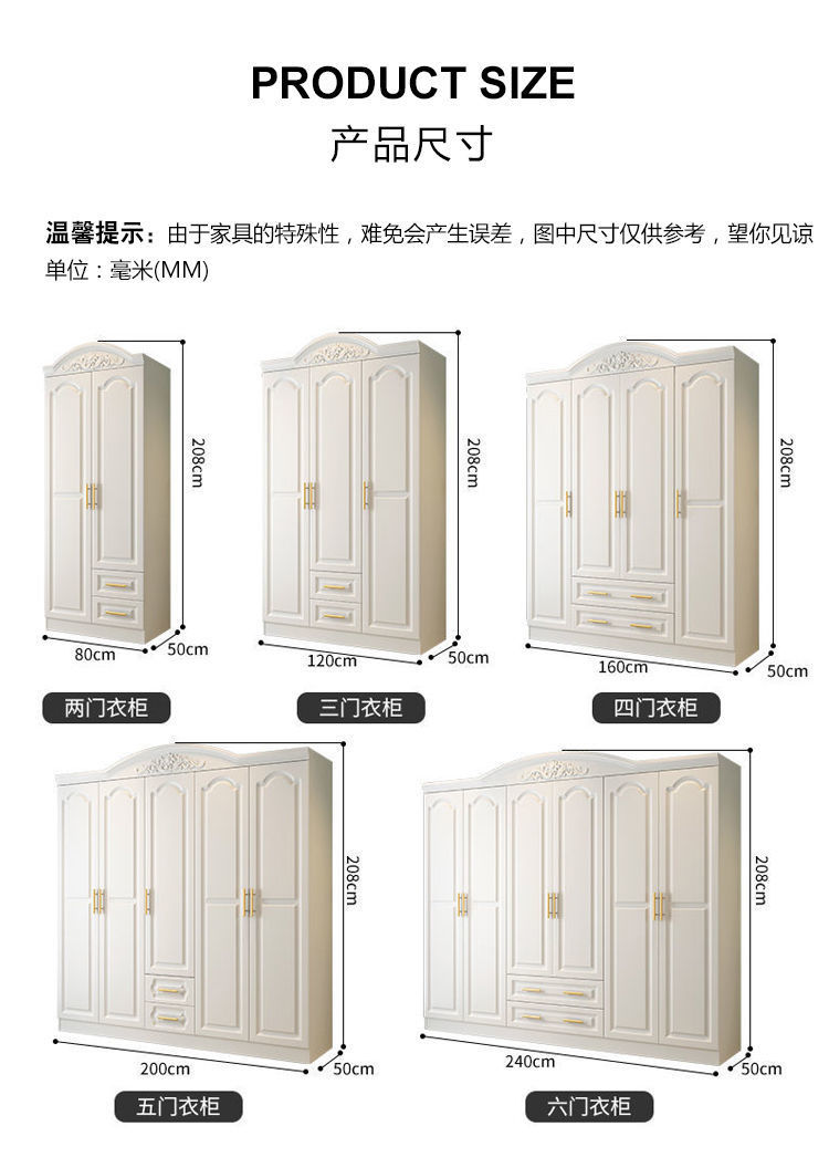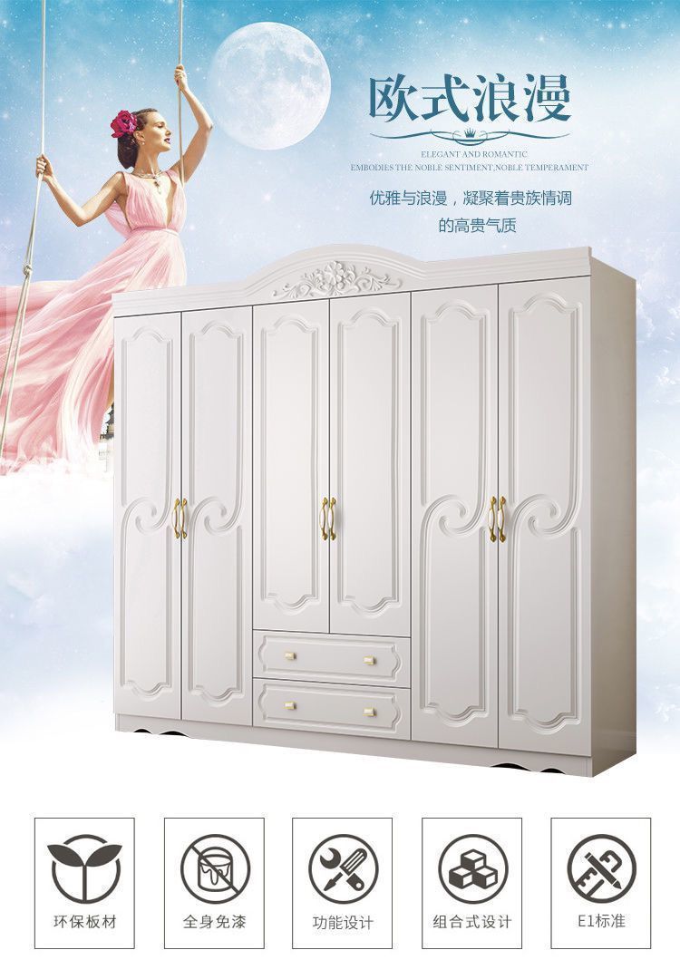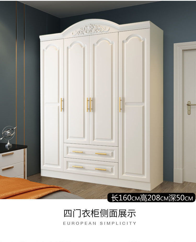 Tủ quần áo phong cách châu Âu bằng gỗ bốn cửa phòng ngủ hiện đại đơn giản năm cửa lắp ráp bảng điều khiển căn hộ nhỏ tủ quần áo lớn màu trắng sáu cửa