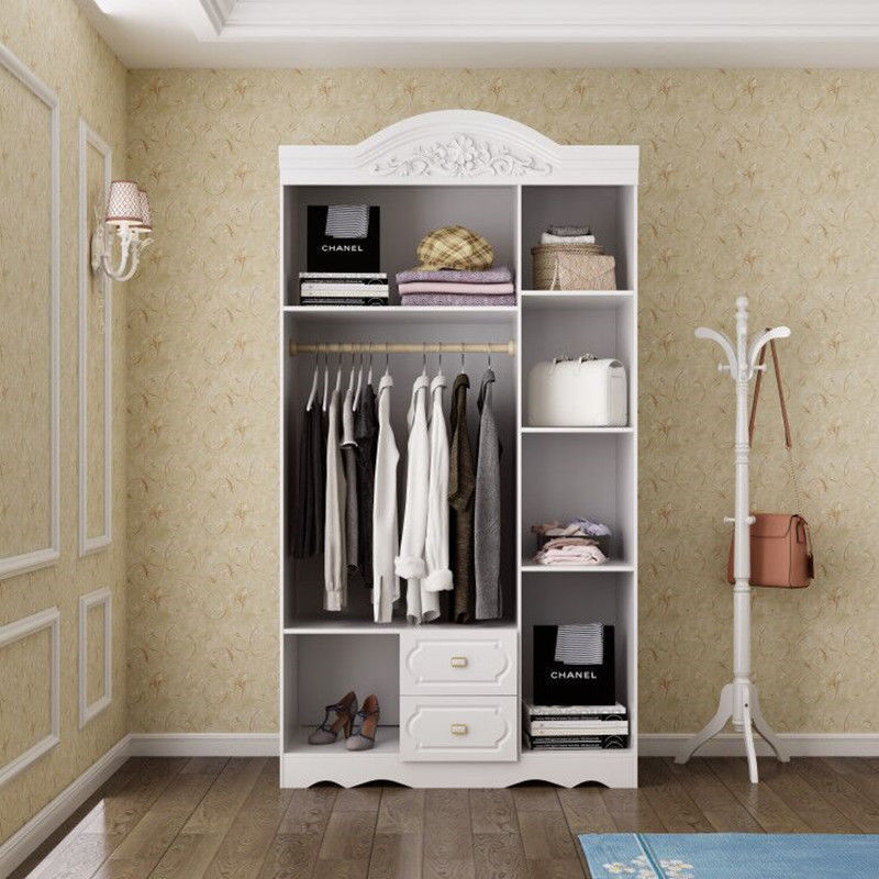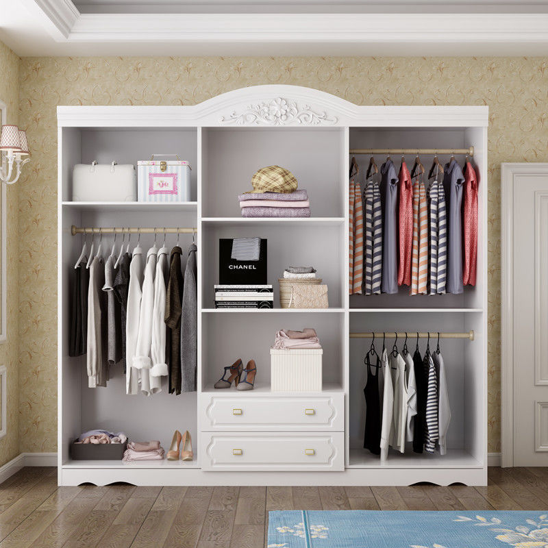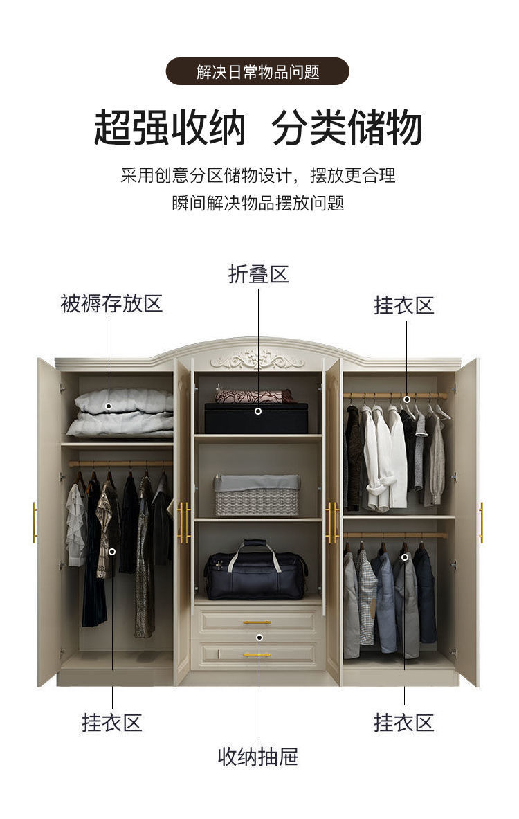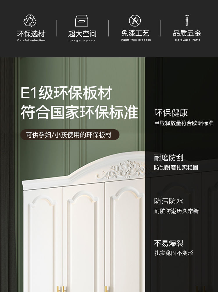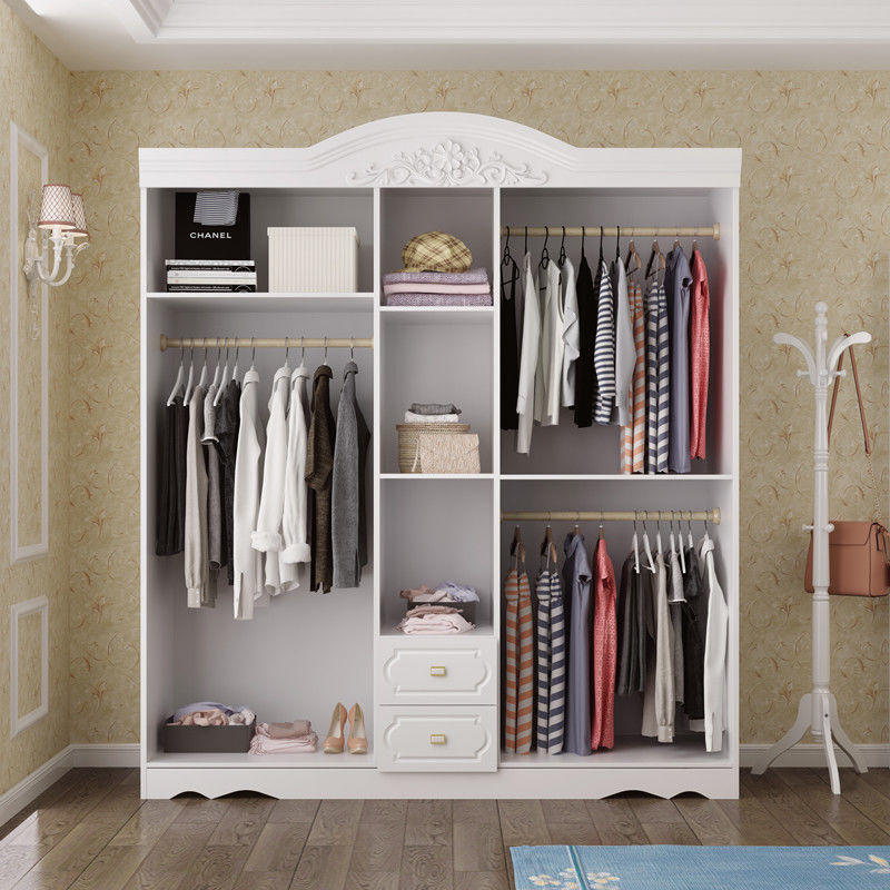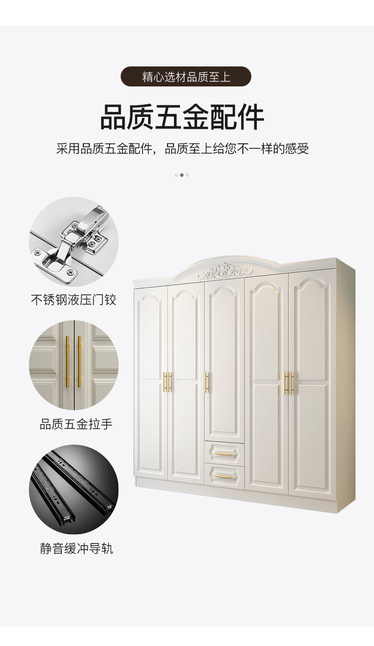 Tủ quần áo phong cách châu Âu bằng gỗ bốn cửa phòng ngủ hiện đại đơn giản năm cửa lắp ráp bảng điều khiển căn hộ nhỏ tủ quần áo lớn màu trắng sáu cửa