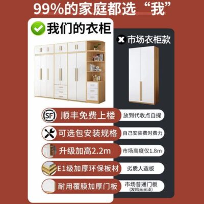 Tủ quần áo phòng cho thuê tối giản hiện đại với cửa mở tủ quần áo lớn phòng ngủ gia đình tủ quần áo dung tích lớn tủ tủ