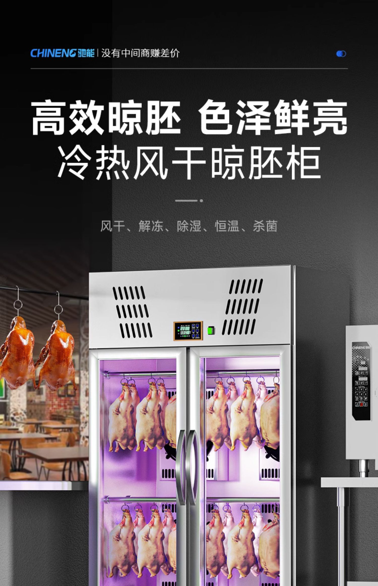Tủ sấy vịt Chineng thương mại ngỗng quay máy sấy vịt quay tủ sấy không khí ngang hút ẩm thịt nướng hút ẩm bảo quản vịt treo là thiết bị nằm trong danh mục Đồ nhà hàng > Tủ sấy thực phẩm, được thiết kế chuyên dụng cho các nhà hàng cần sự tiện nghi và chuyên nghiệp.
