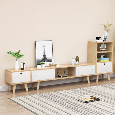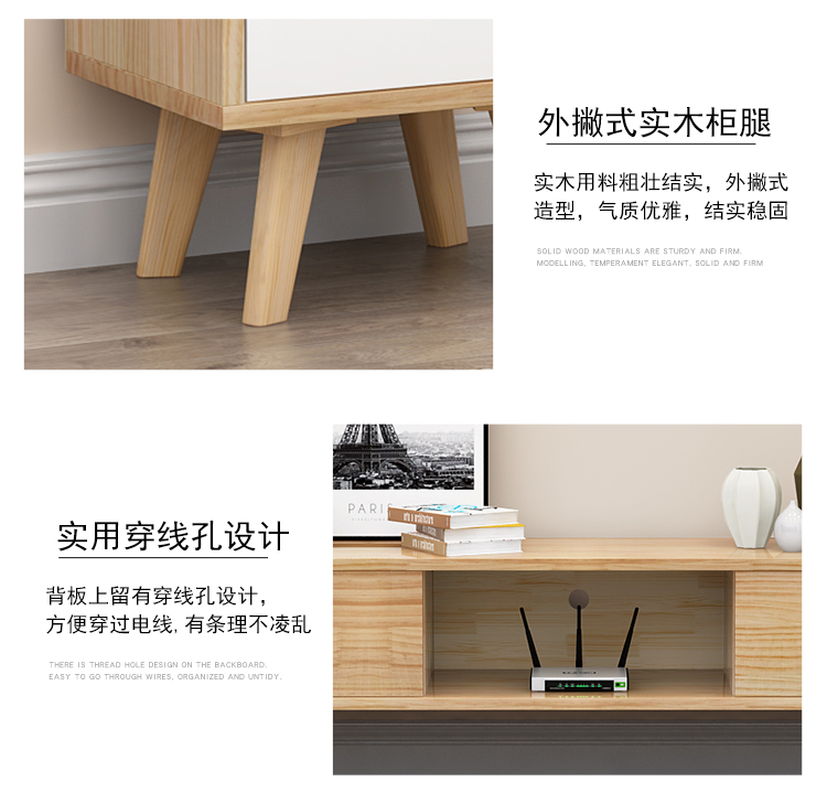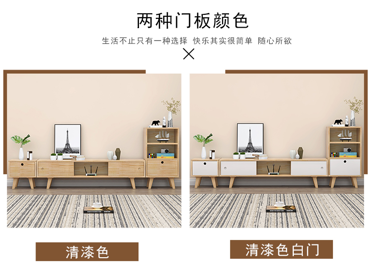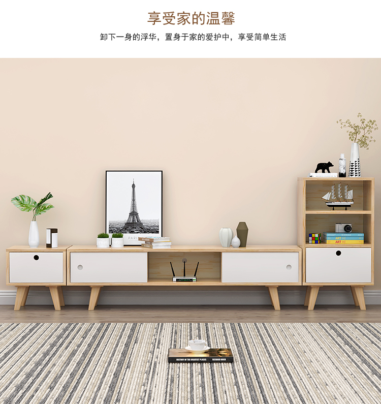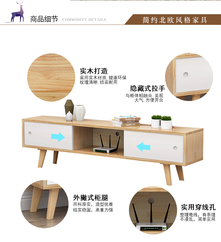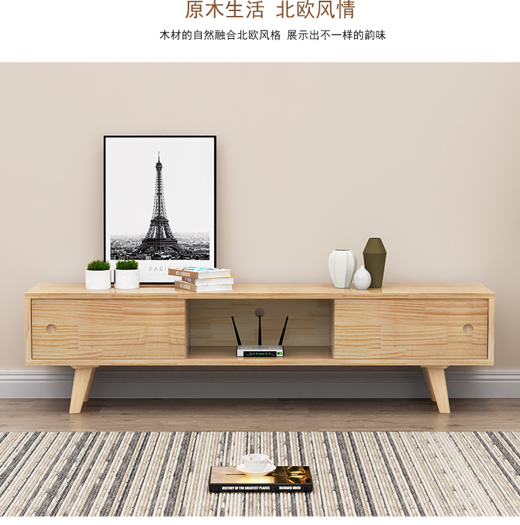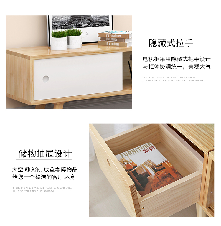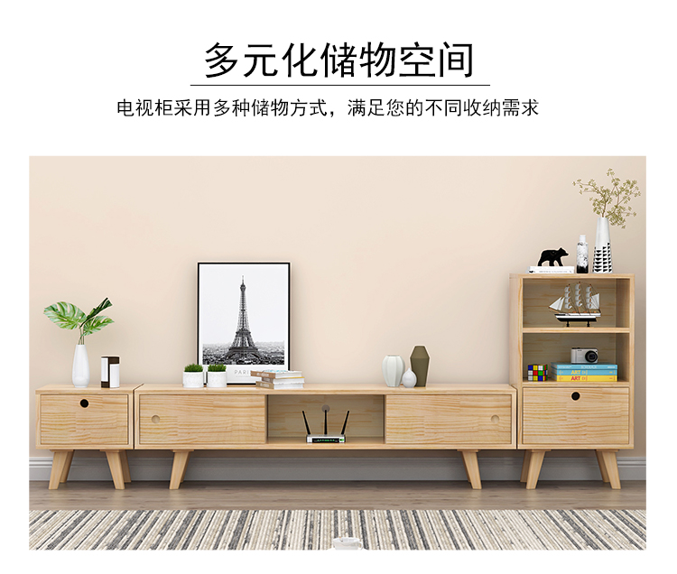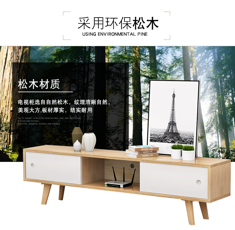 Tủ tivi đa chức năng hoàn toàn bằng gỗ nguyên khối thời trang tối giản hiện đại căn hộ nhỏ phòng khách bàn cà phê gỗ thông kết hợp tủ sàn gỗ thông