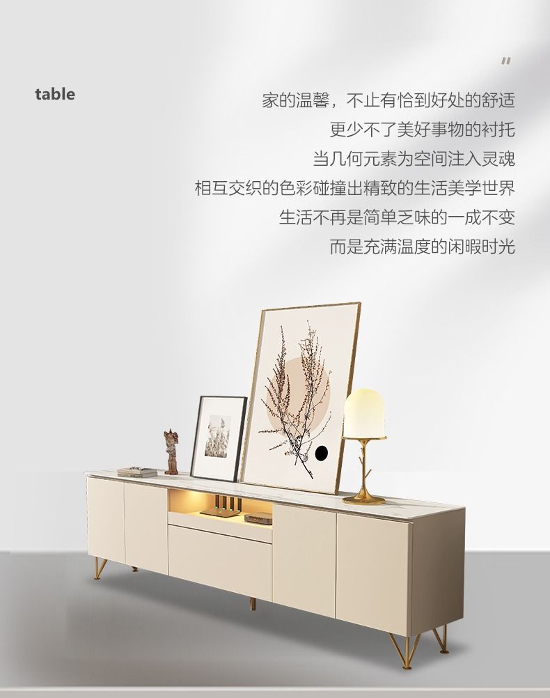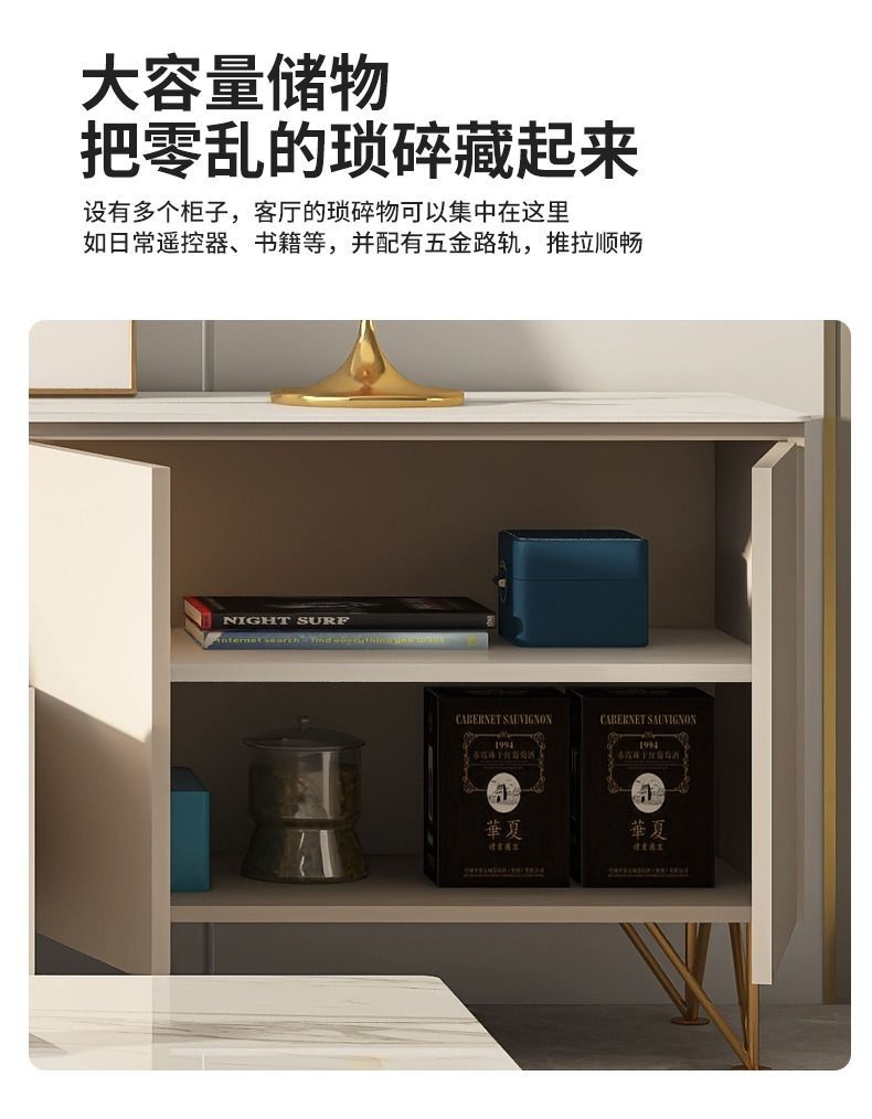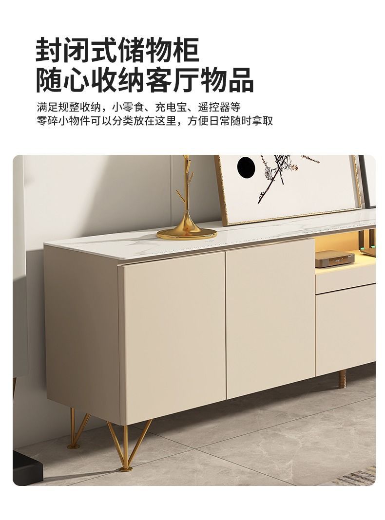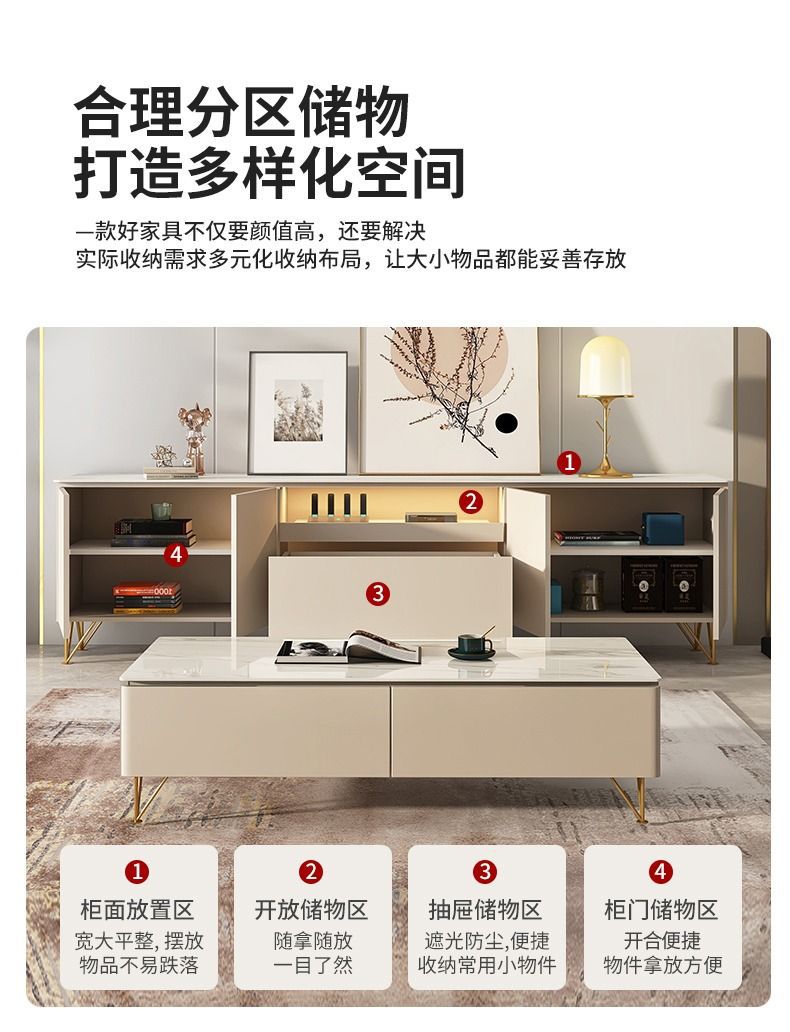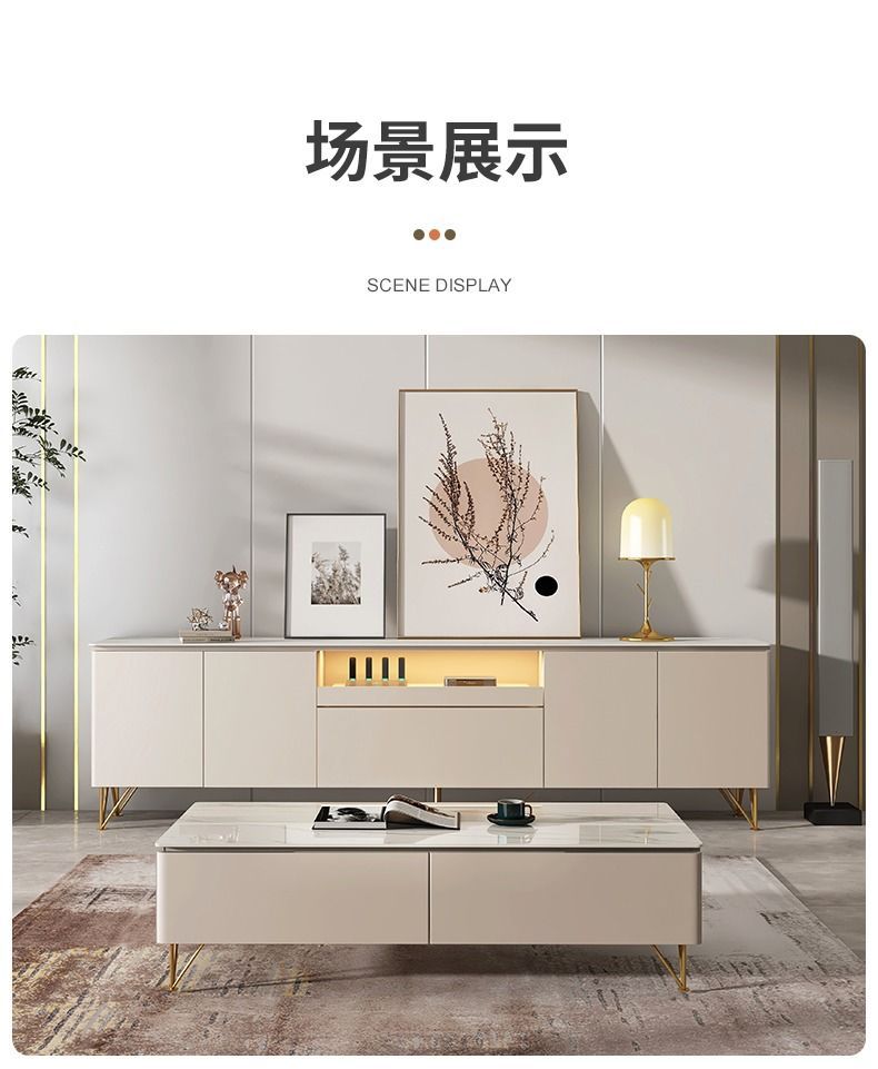 Tủ tivi đá phiến cao đơn giản hiện đại kết hợp bàn cà phê căn hộ nhỏ ánh sáng sang trọng phòng khách phòng ngủ kem gió gỗ nguyên khối
