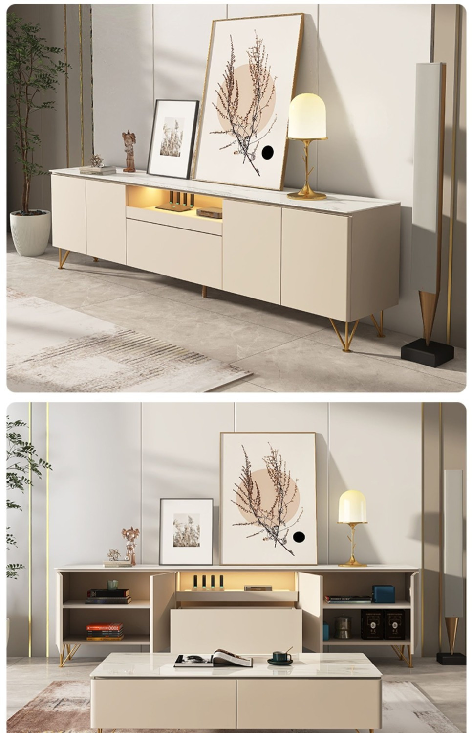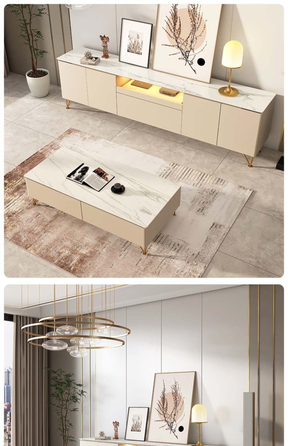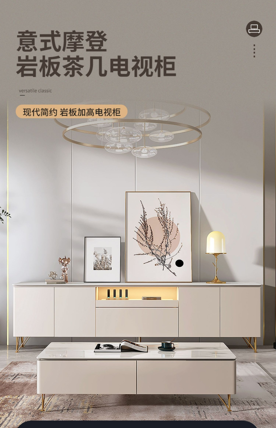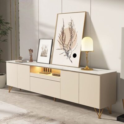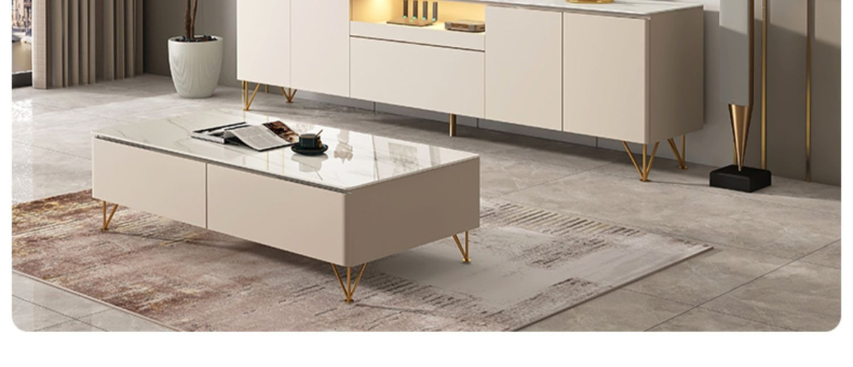 Tủ tivi đá phiến cao đơn giản hiện đại kết hợp bàn cà phê căn hộ nhỏ ánh sáng sang trọng phòng khách phòng ngủ kem gió gỗ nguyên khối