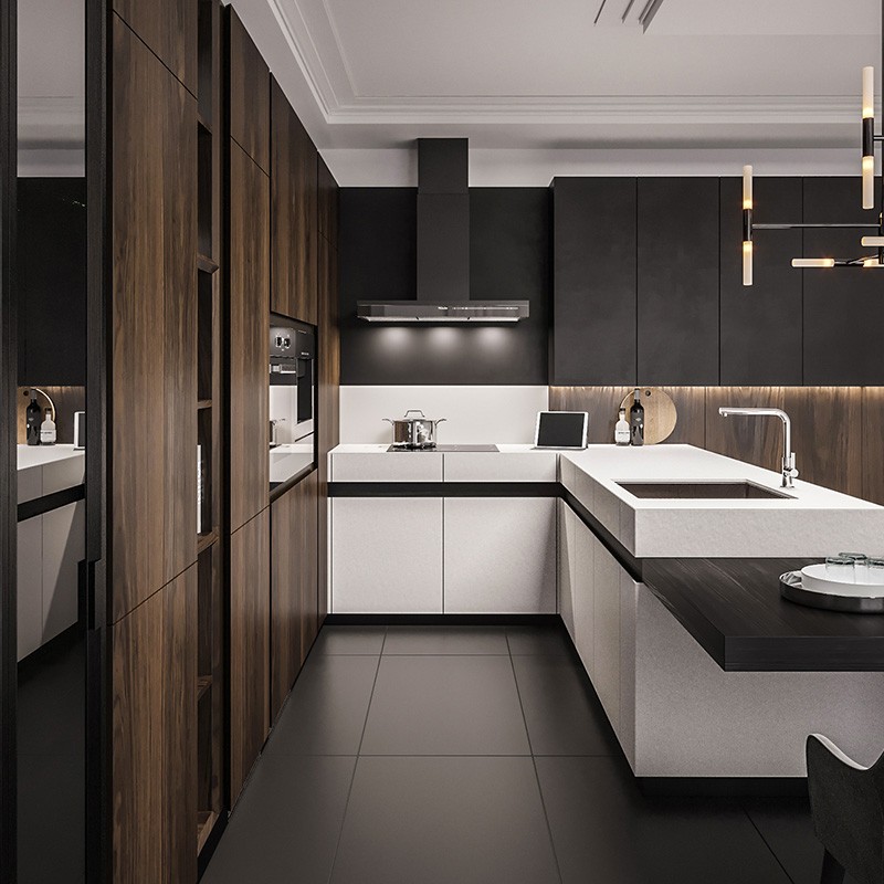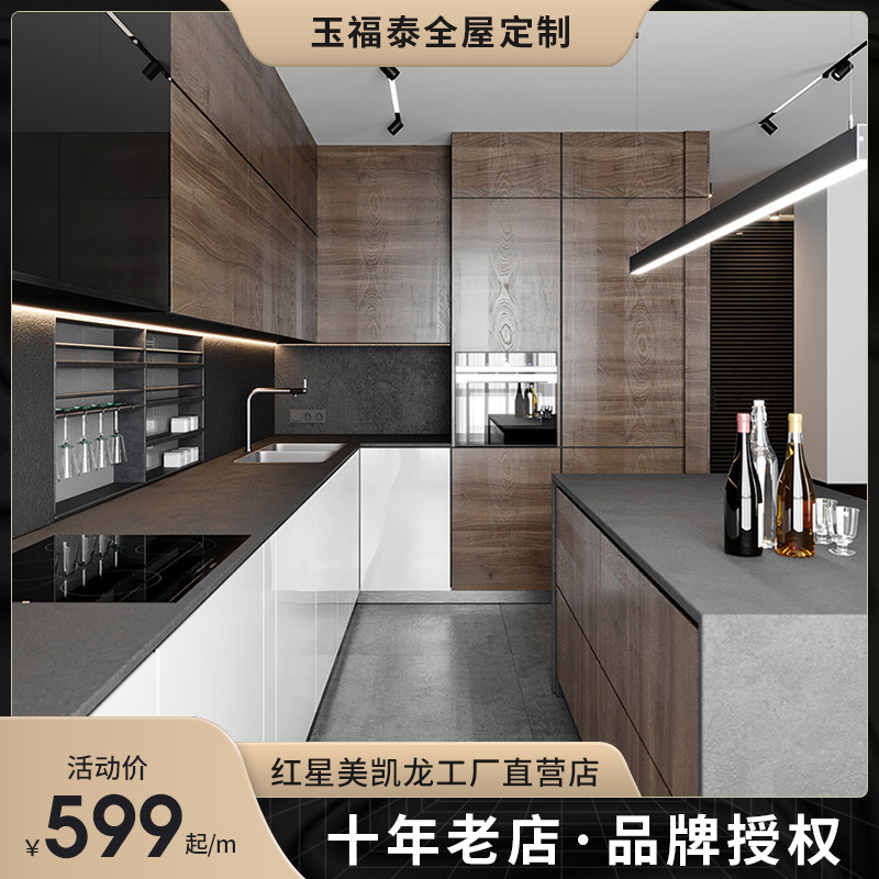 Tủ tổng thể Yufutai tùy chỉnh tùy chỉnh hiện đại tối giản tủ bếp hình chữ U tùy chỉnh trang trí mặt bàn bằng đá thạch anh