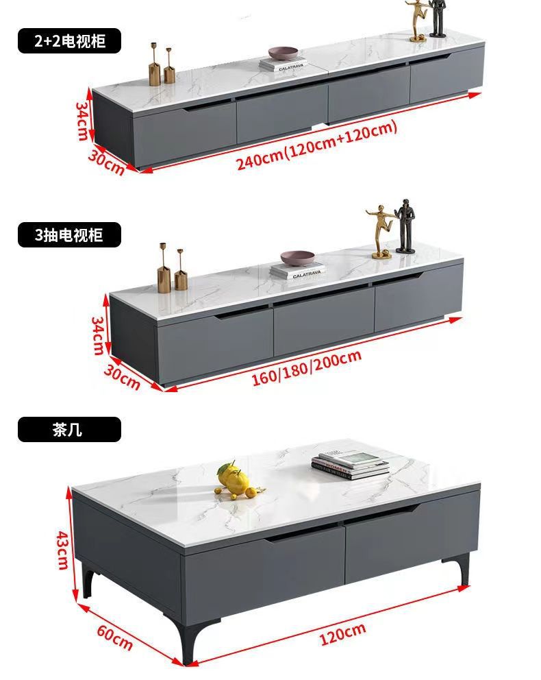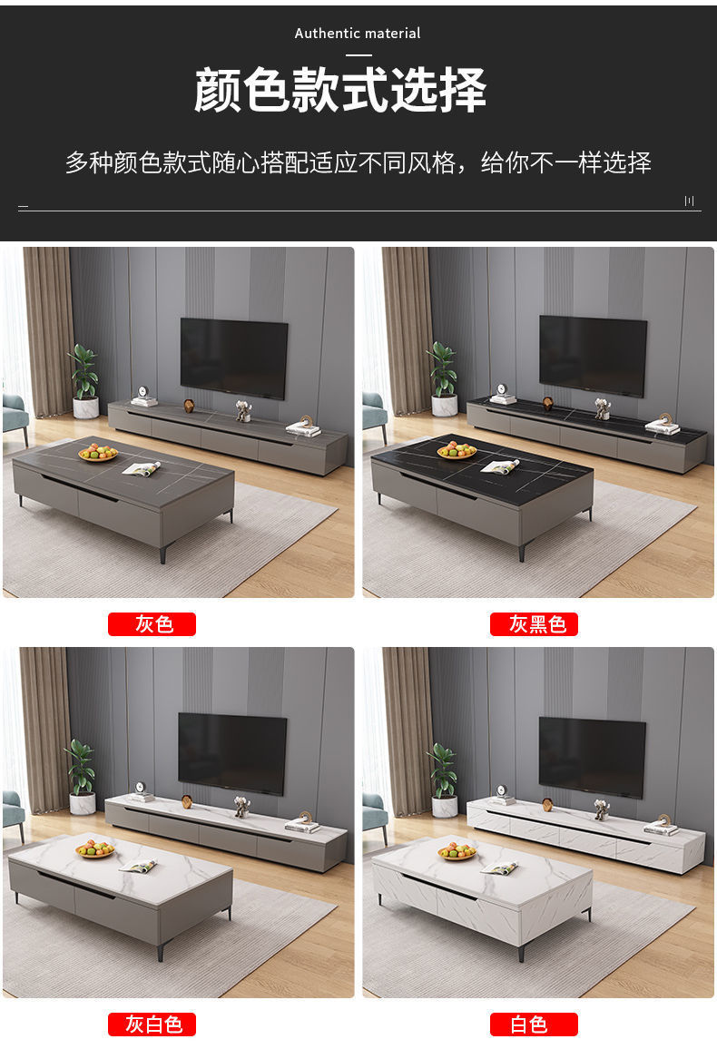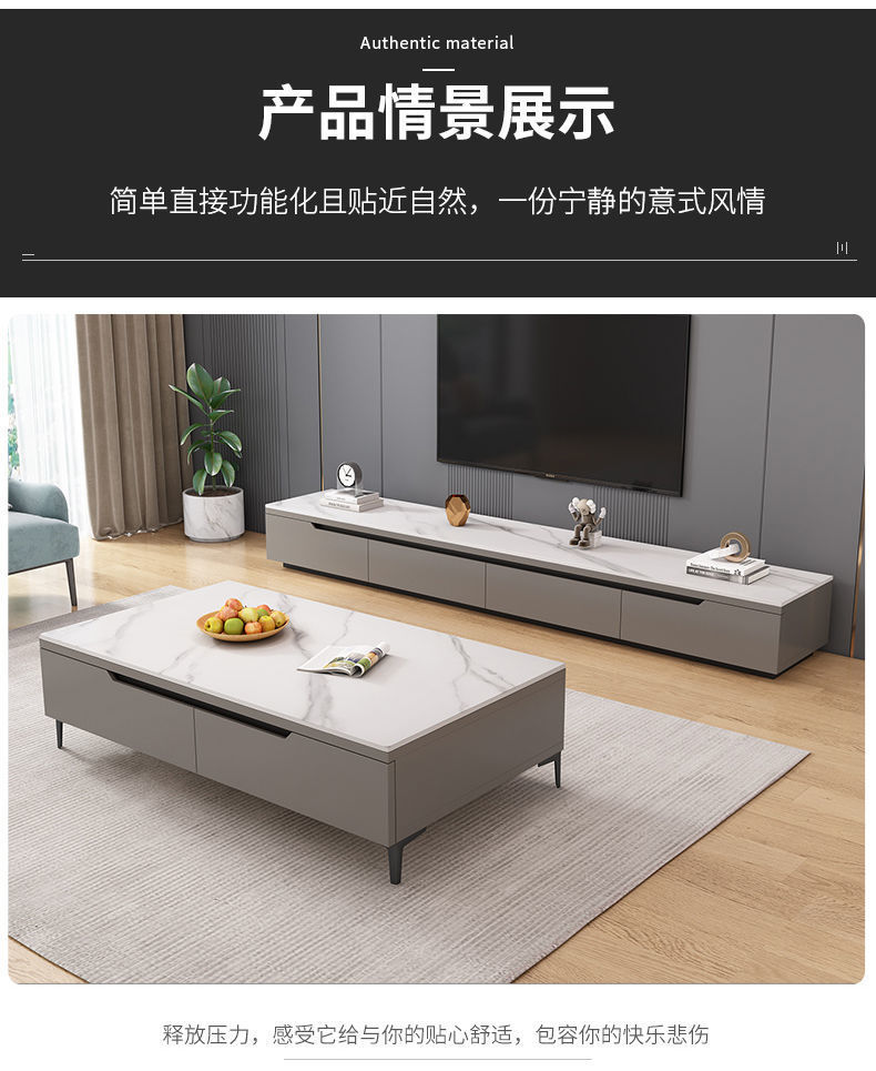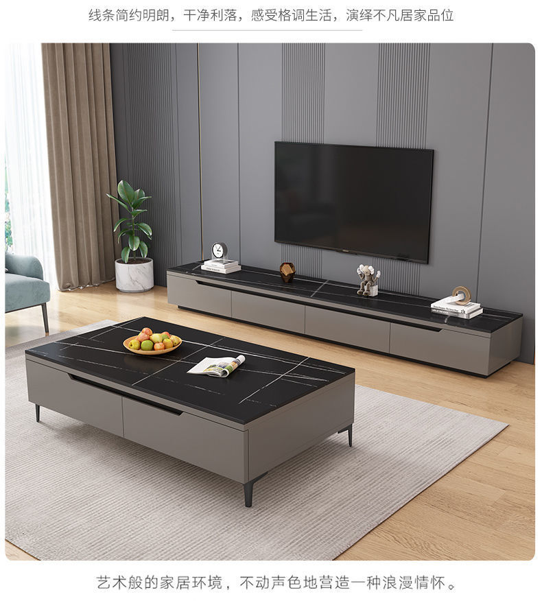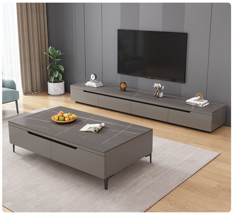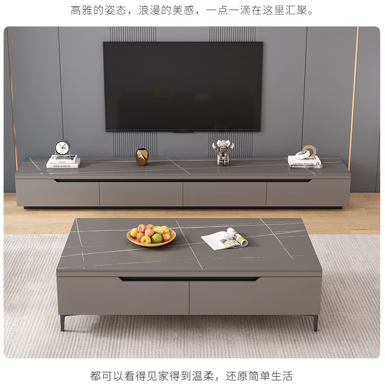 Tủ TV đá phiến kết hợp bàn cà phê tối giản hiện đại Bắc Âu ánh sáng phòng khách sang trọng căn hộ nhỏ tủ sàn đá cẩm thạch