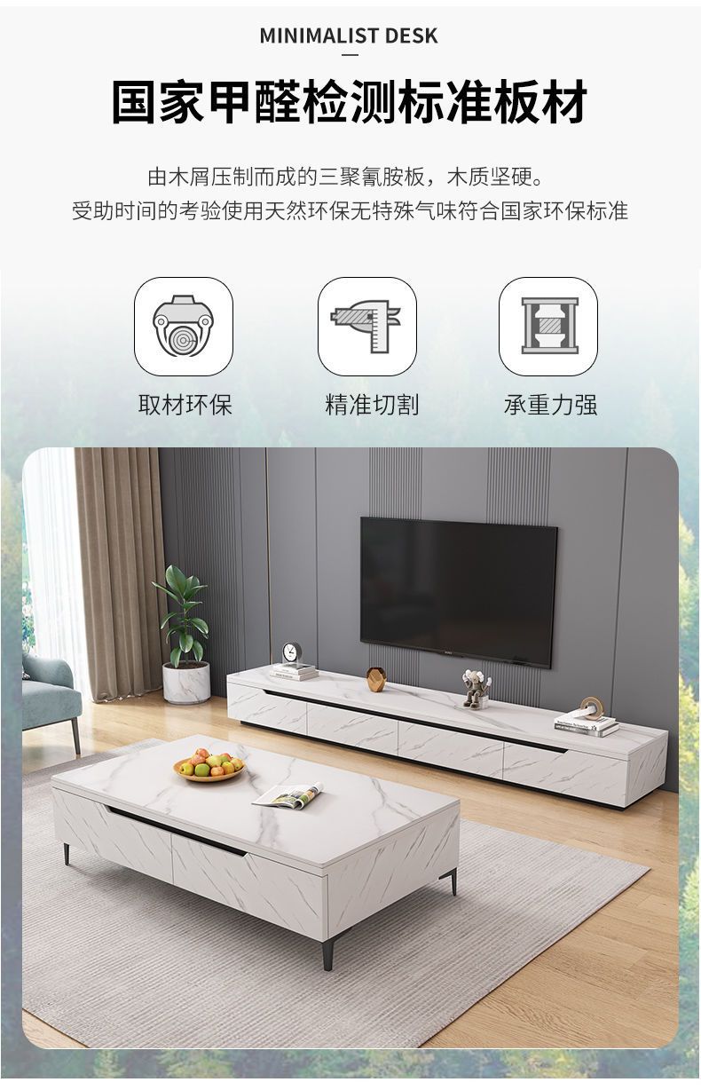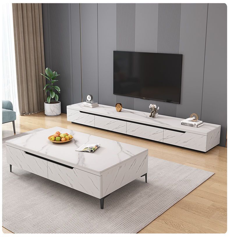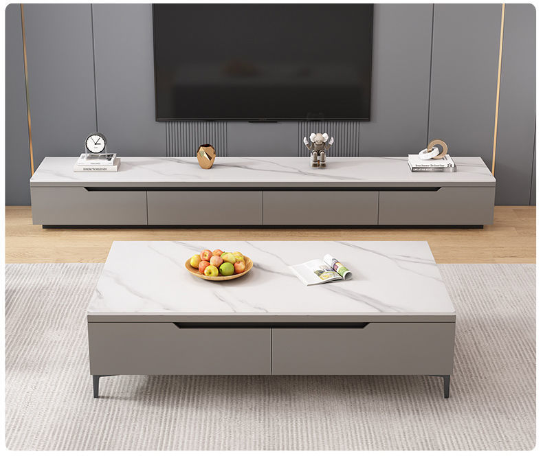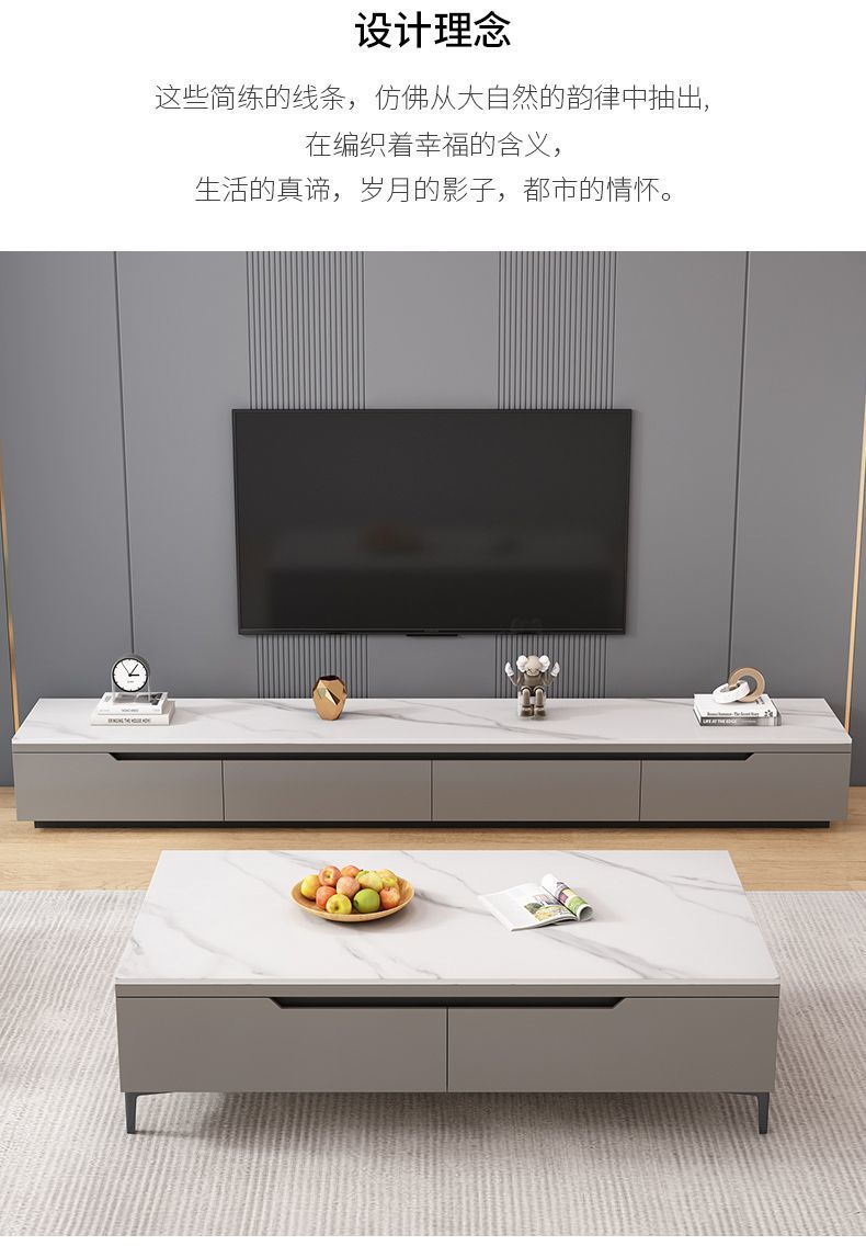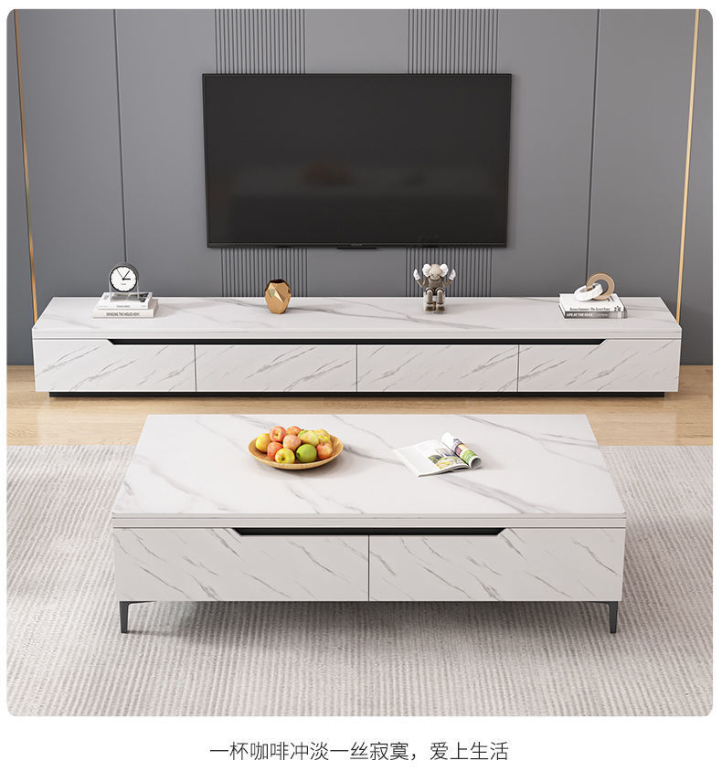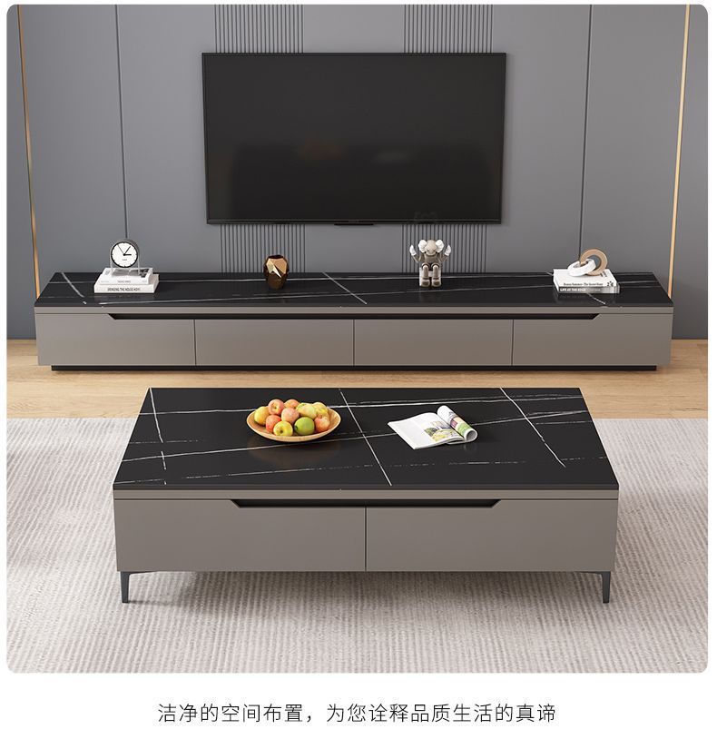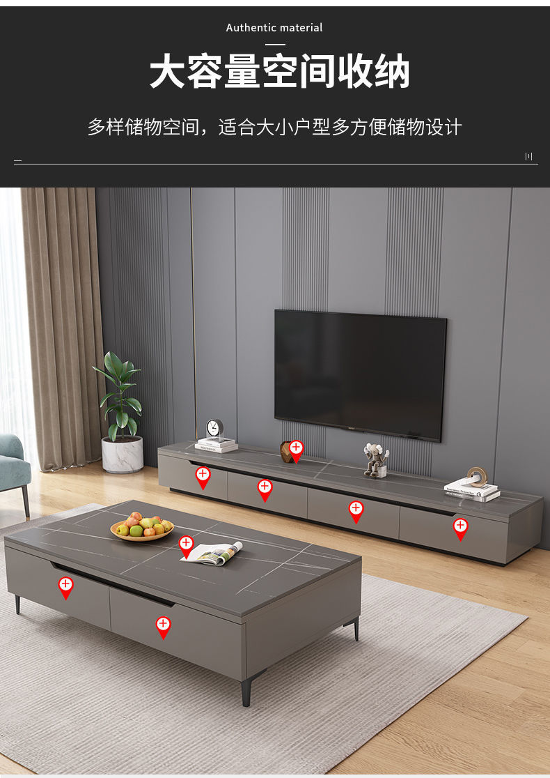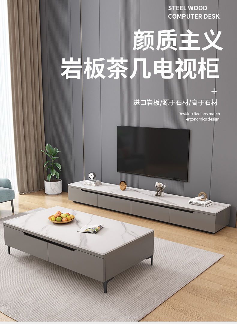 Tủ TV đá phiến kết hợp bàn cà phê tối giản hiện đại Bắc Âu ánh sáng phòng khách sang trọng căn hộ nhỏ tủ sàn phong cách bùng nổ