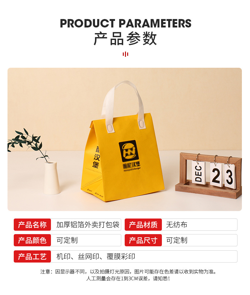 Túi bao bì Takeaway dày cách nhiệt bọc lá nhôm túi xách thức ăn nhanh burger thịt nướng cháo mì túi không dệt là thiết bị nằm trong danh mục Đồ nhà hàng > Tủ hâm nóng, được thiết kế chuyên dụng cho các nhà hàng cần sự tiện nghi và chuyên nghiệp.
