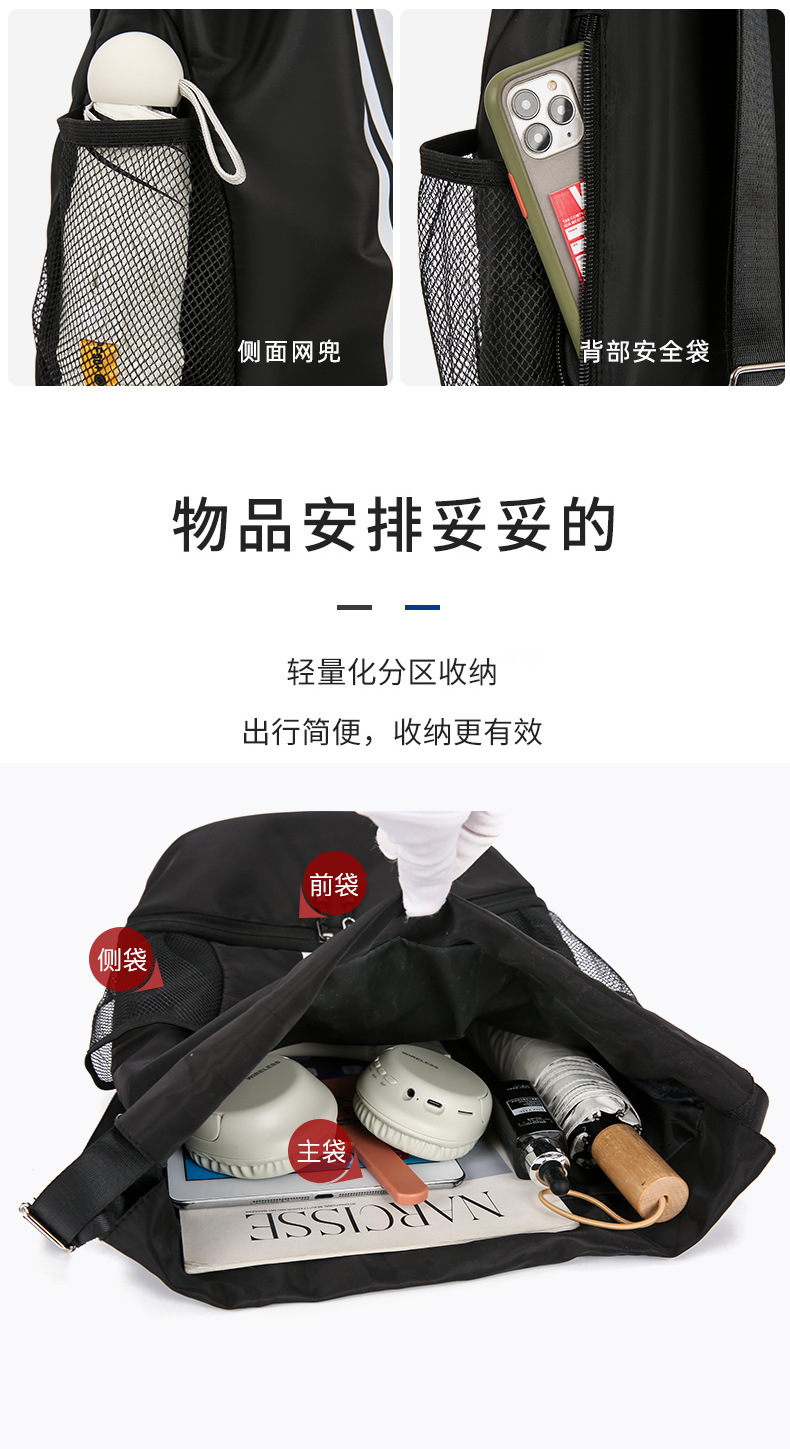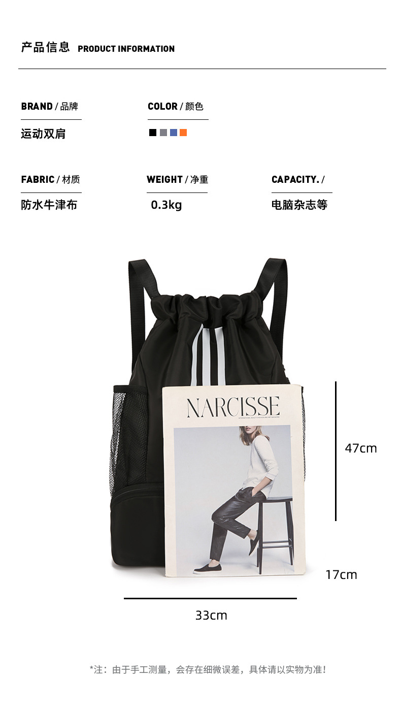 Kích thước máy tính: 14 inch Hoa văn: Sọc Kết cấu lớp lót: Sợi polyester Mã sản phẩm: 823# Cảnh áp dụng: Du lịch giải trí Màu sắc: Đen/Xanh lam/Xám/Cam/Cam Thương hiệu riêng được ủy quyền: Có Giới tính áp dụng: Unisex / Cả nam và nữ Năm có sẵn Mùa: Hè 2023 Chức năng: Siêu nhẹ Chất liệu: Vải Oxford Hệ thống dây đeo: Dây đeo vai cong Các yếu tố phổ biến: Đường chỉ may / kẻ sọc / nối / nối Phong cách: xu hướng đường phố Dung tích: 20- 35L
