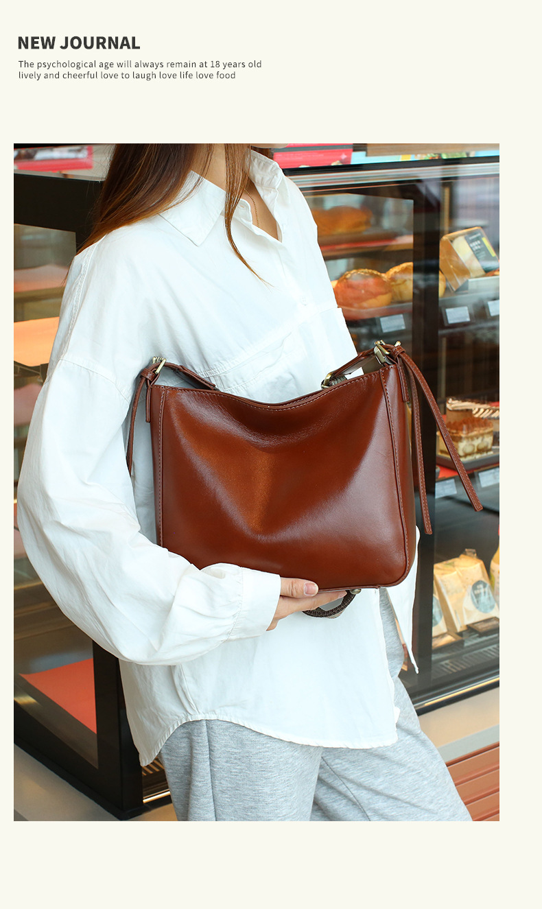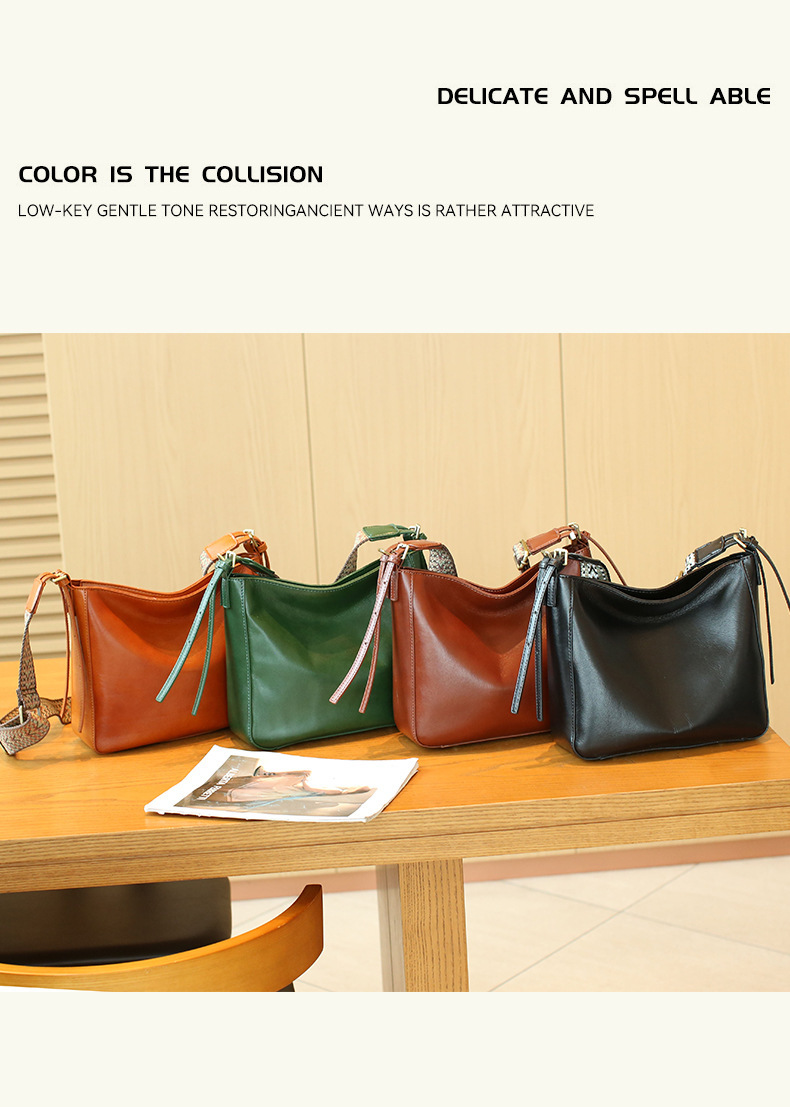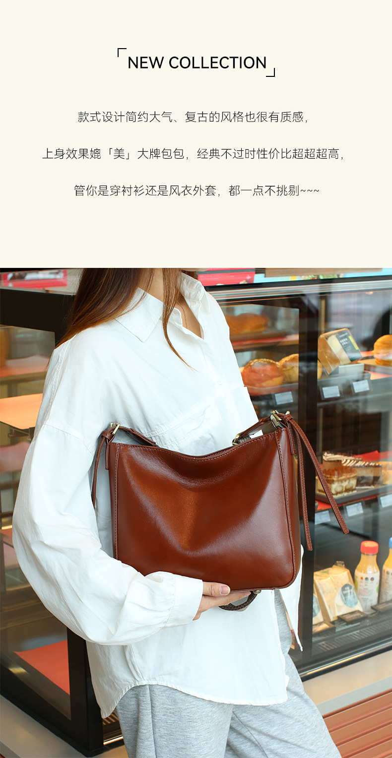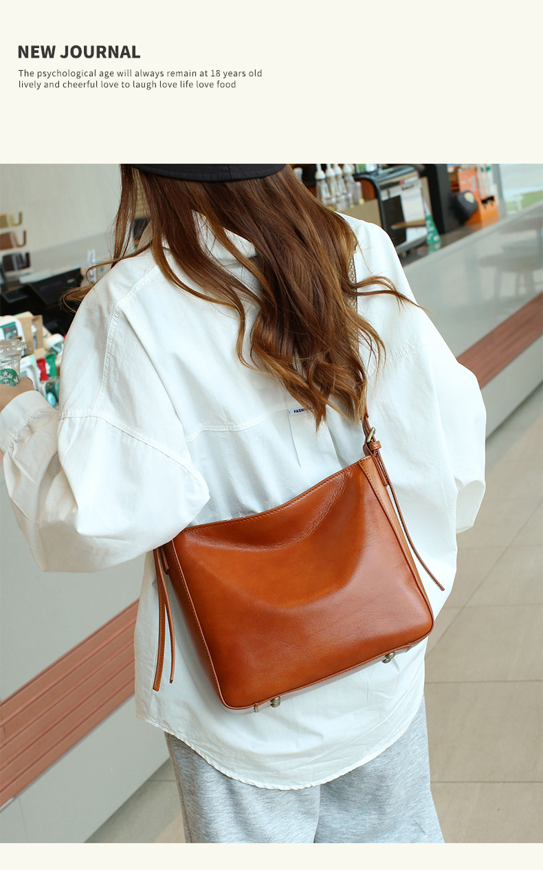 Túi da nữ 2023 mới mùa thu đông túi đeo vai nữ sức chứa lớn túi xô da bò rám nắng lớp đầu chất lượng cao
