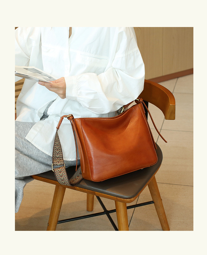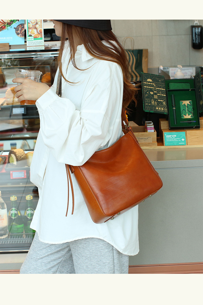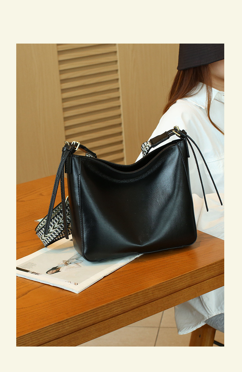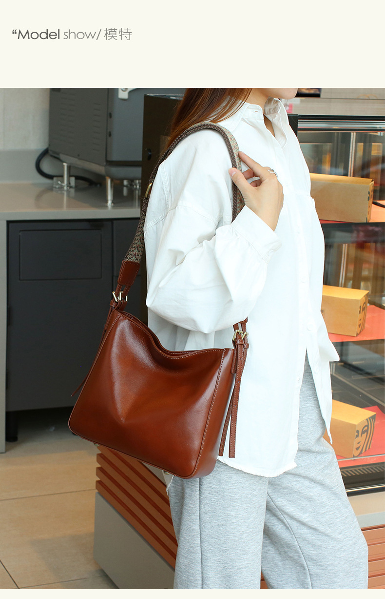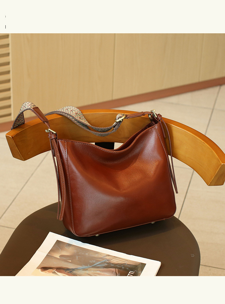 Túi da nữ 2023 mới mùa thu đông túi đeo vai nữ sức chứa lớn túi xô da bò rám nắng lớp đầu chất lượng cao