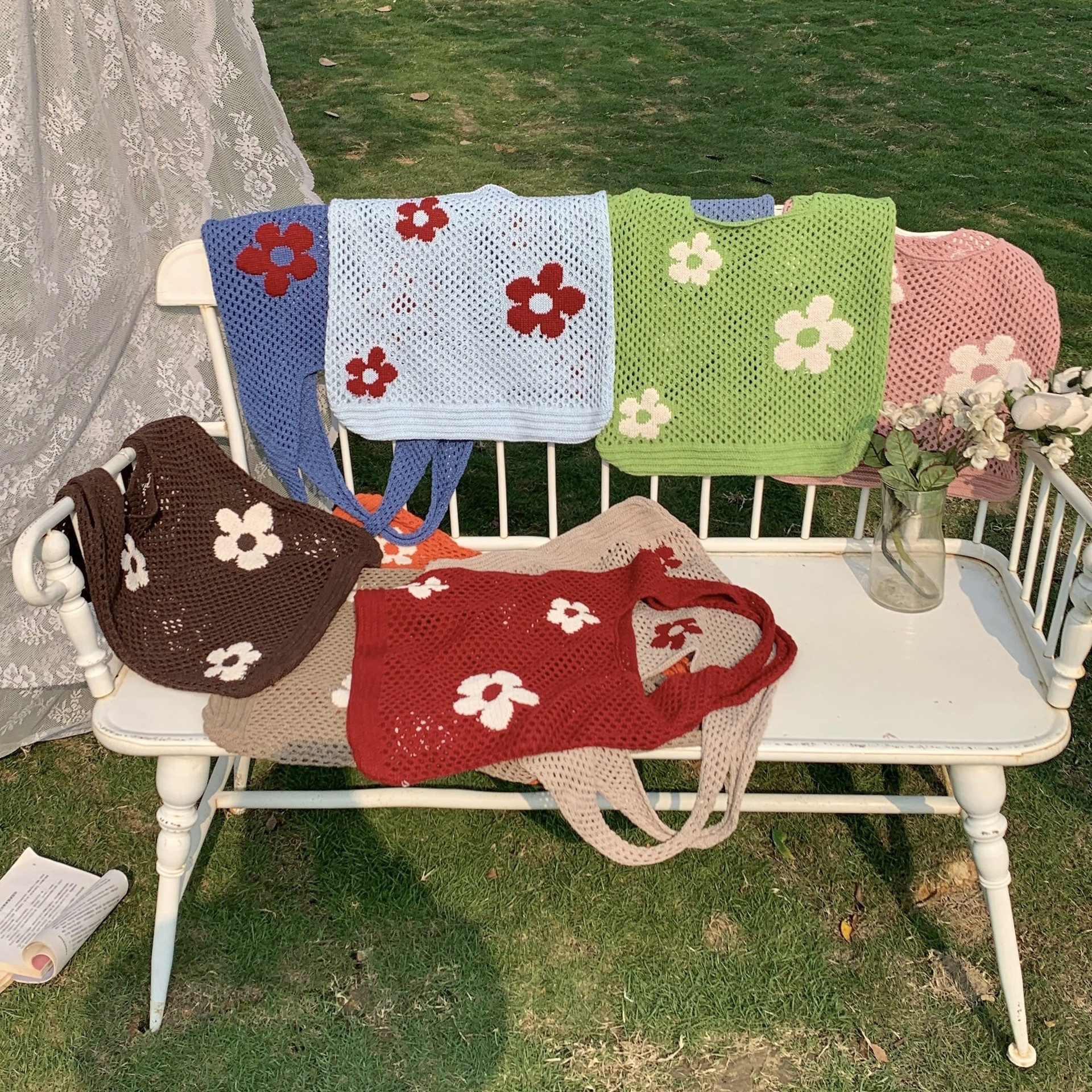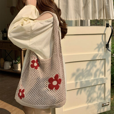 Túi đan chéo mùa hè phù hợp mọi lứa tuổi túi mua sắm sức chứa lớn túi dệt đơn giản lưới rỗng túi đeo vai nữ