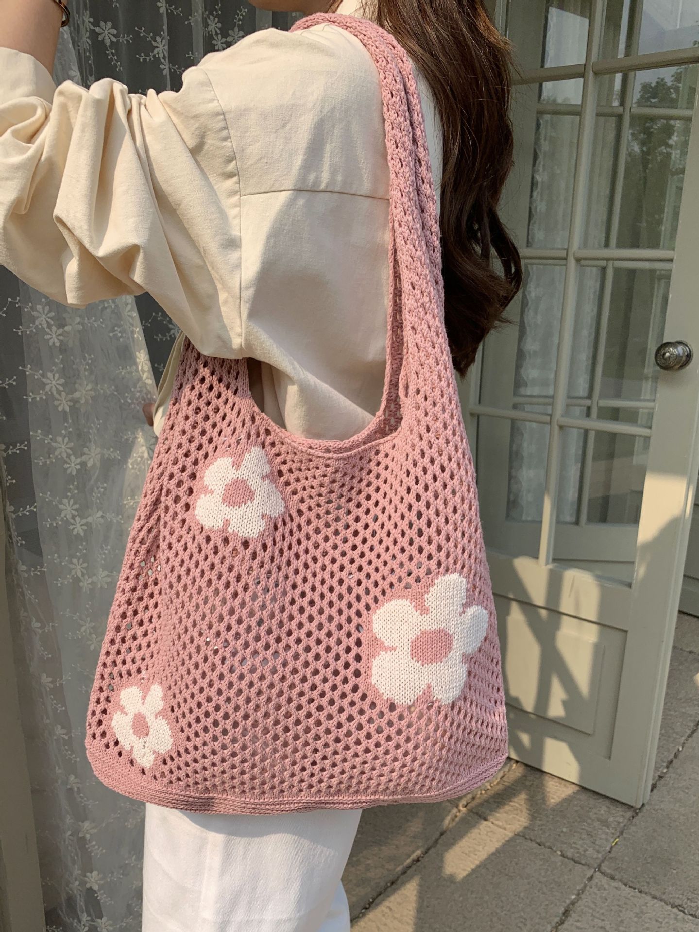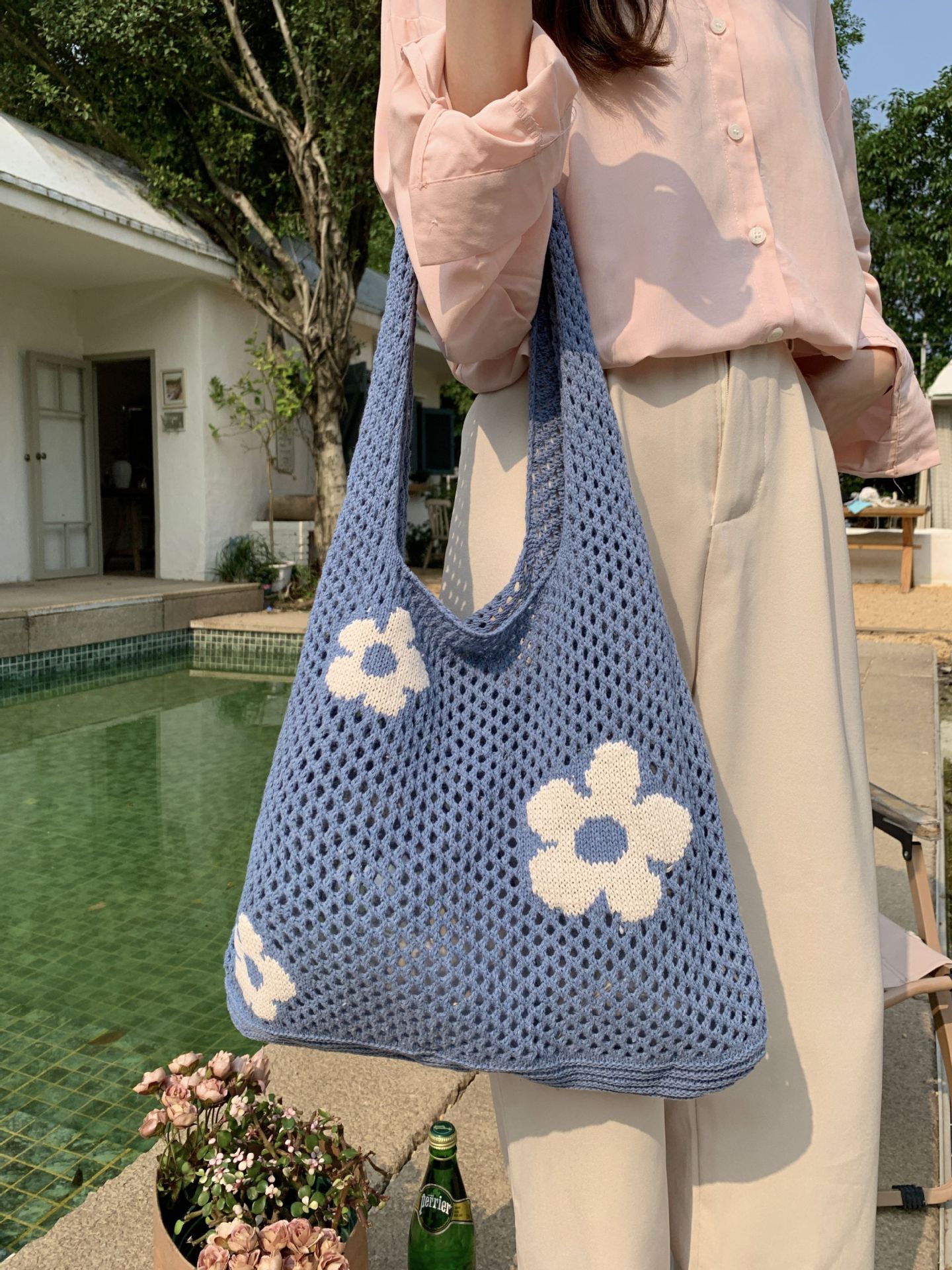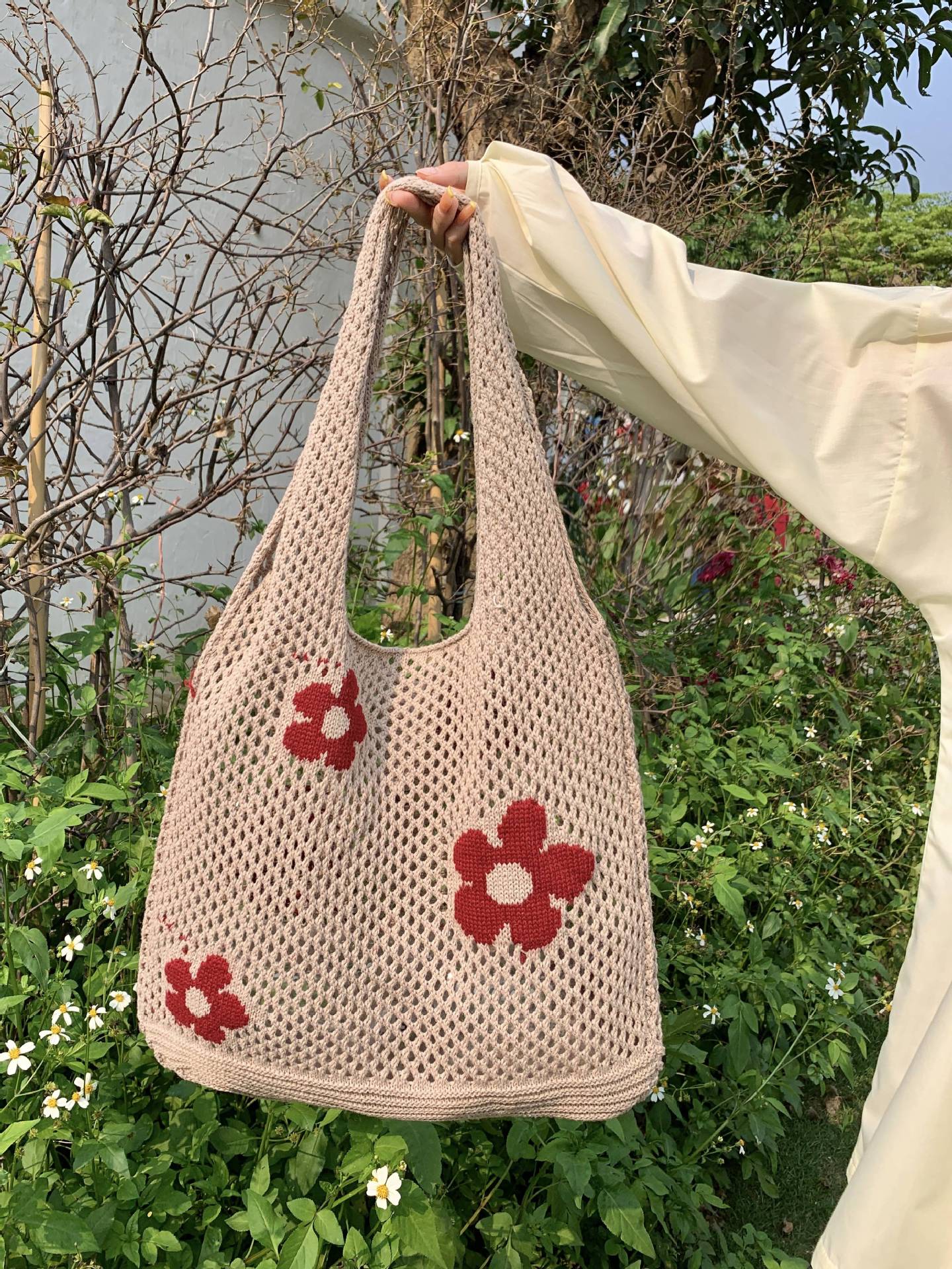 Túi đan chéo mùa hè phù hợp mọi lứa tuổi túi mua sắm sức chứa lớn túi dệt đơn giản lưới rỗng túi đeo vai nữ