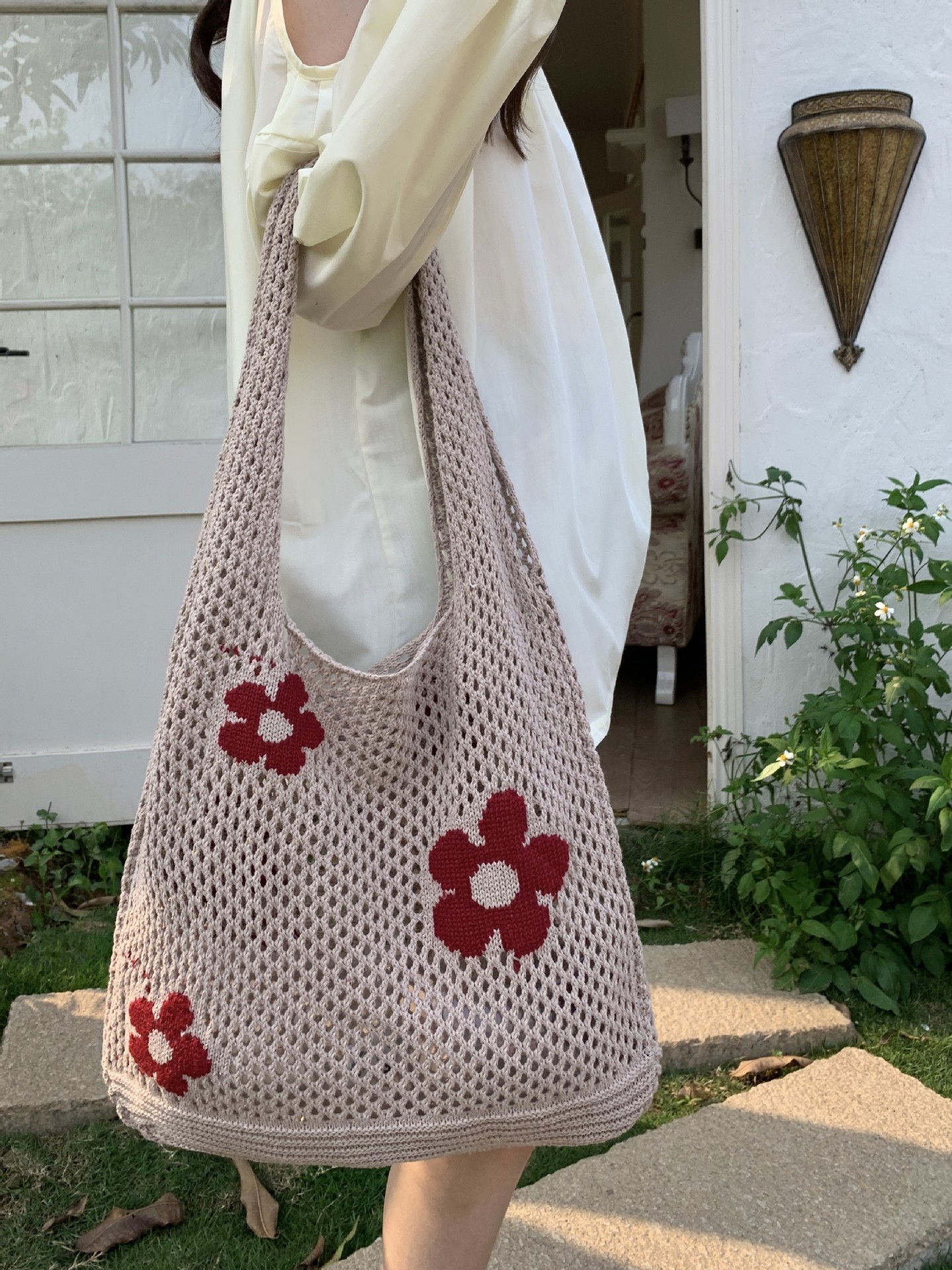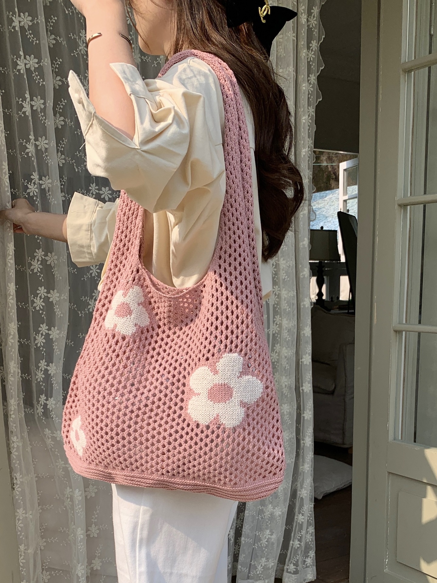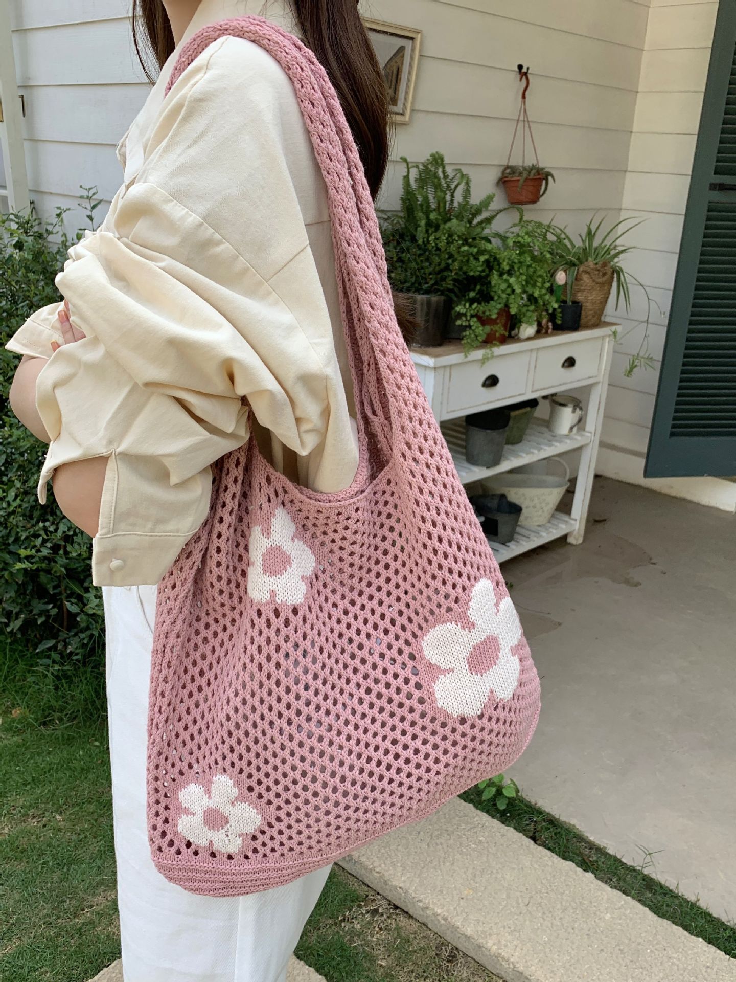 Túi đan chéo mùa hè phù hợp mọi lứa tuổi túi mua sắm sức chứa lớn túi dệt đơn giản lưới rỗng túi đeo vai nữ