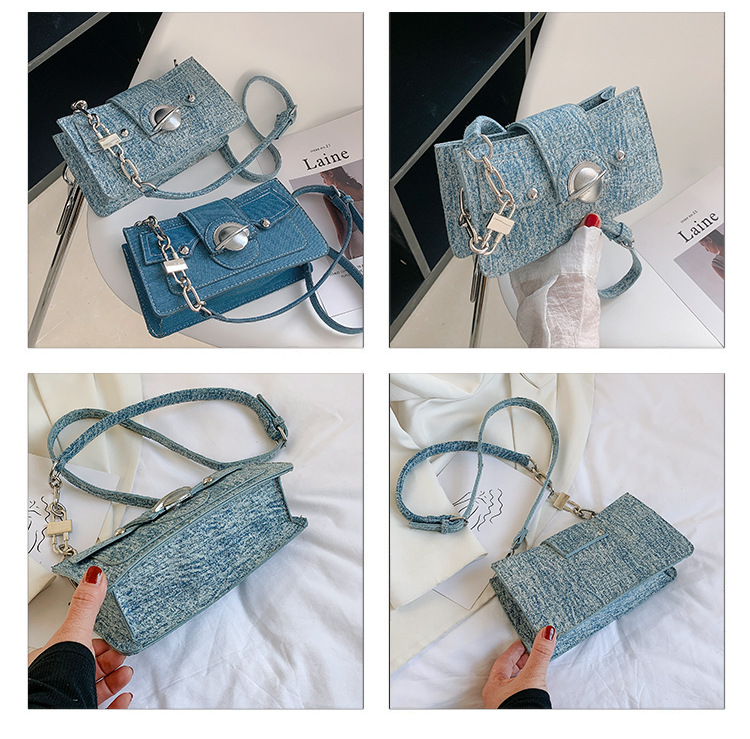 Túi denim nữ 2023 phổ biến mới thích hợp xuân hè phong cách hot túi vuông nhỏ túi đeo vai cao cấp túi Messenger
