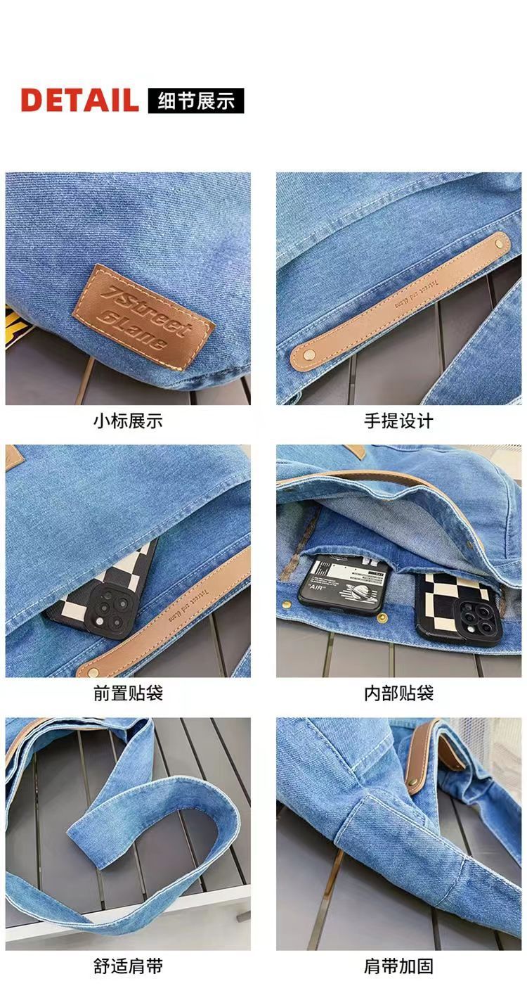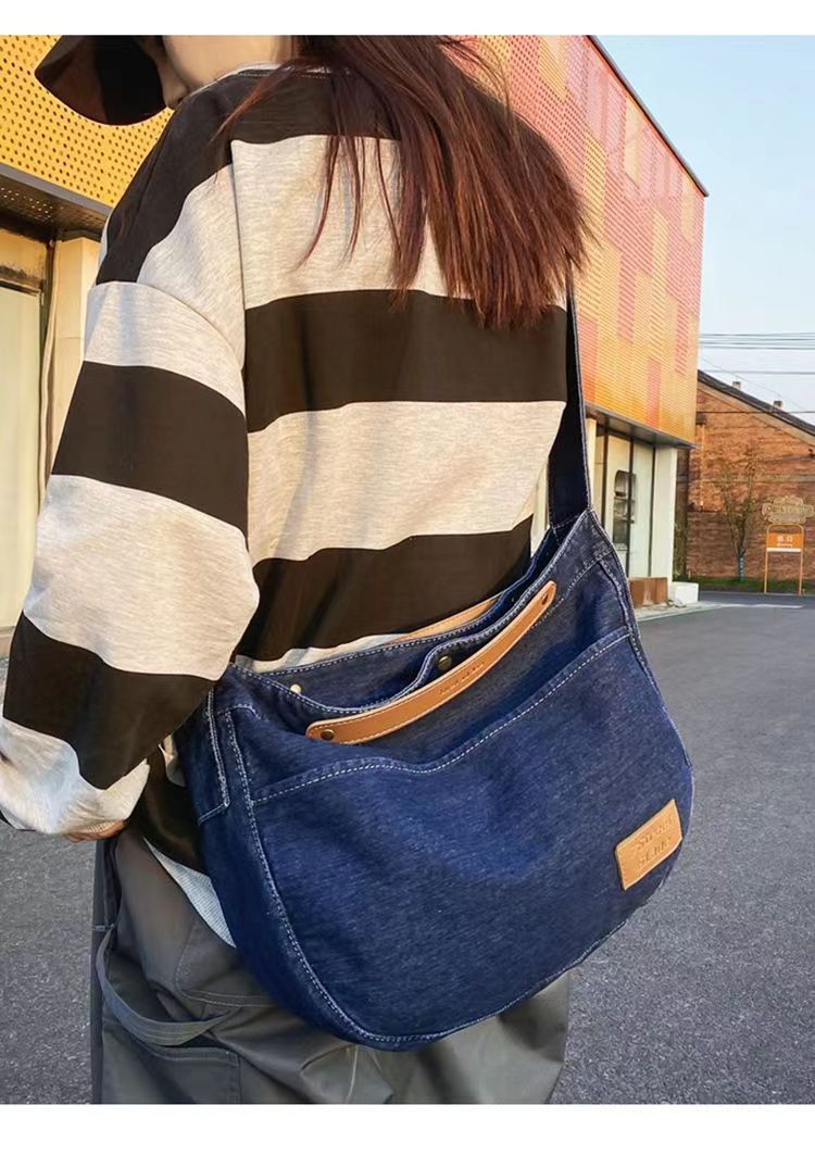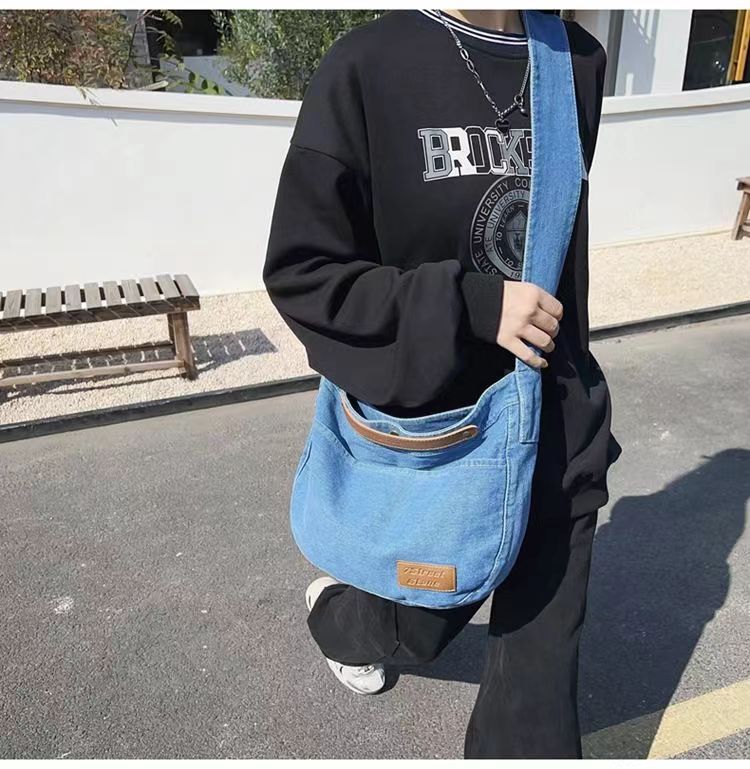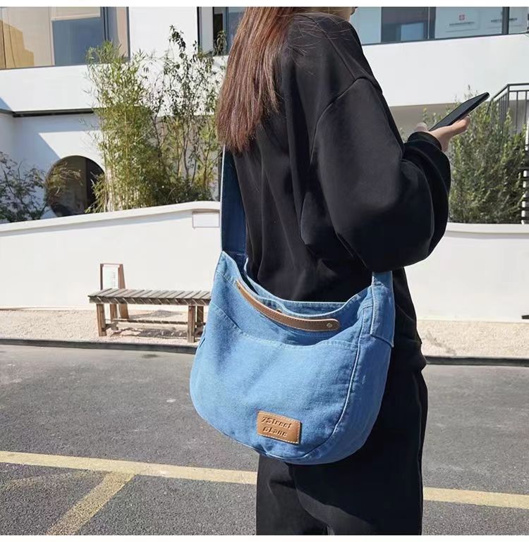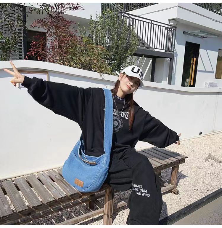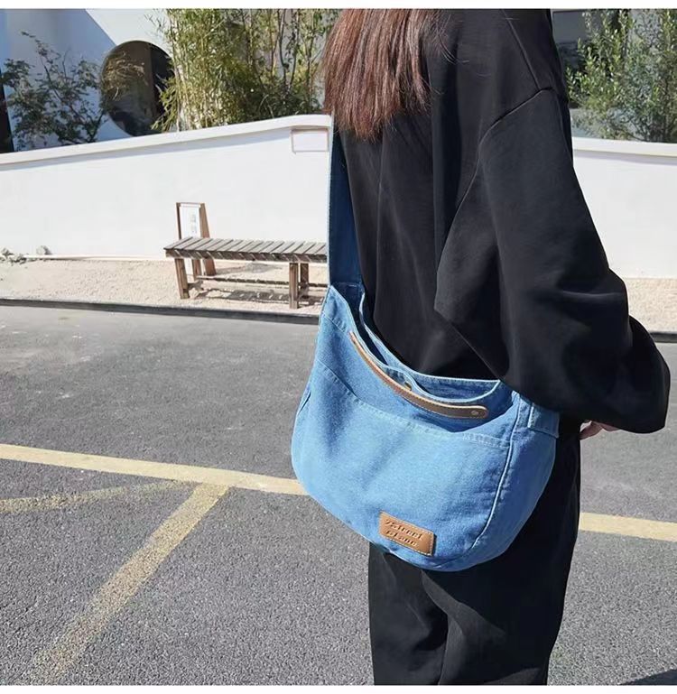 Túi đeo chéo denim nữ 2023 mới thường ngày túi vải canvas dung tích lớn sinh viên đại học lớp túi đi làm túi đeo vai