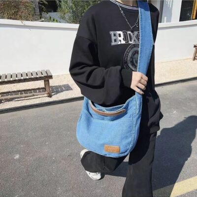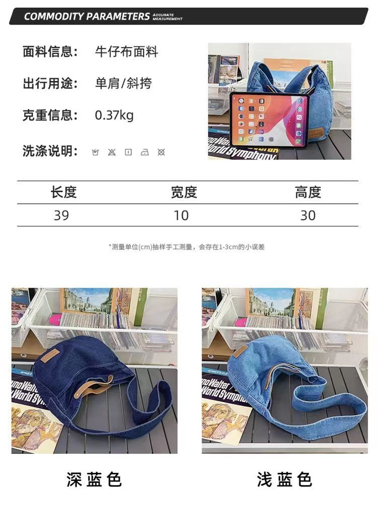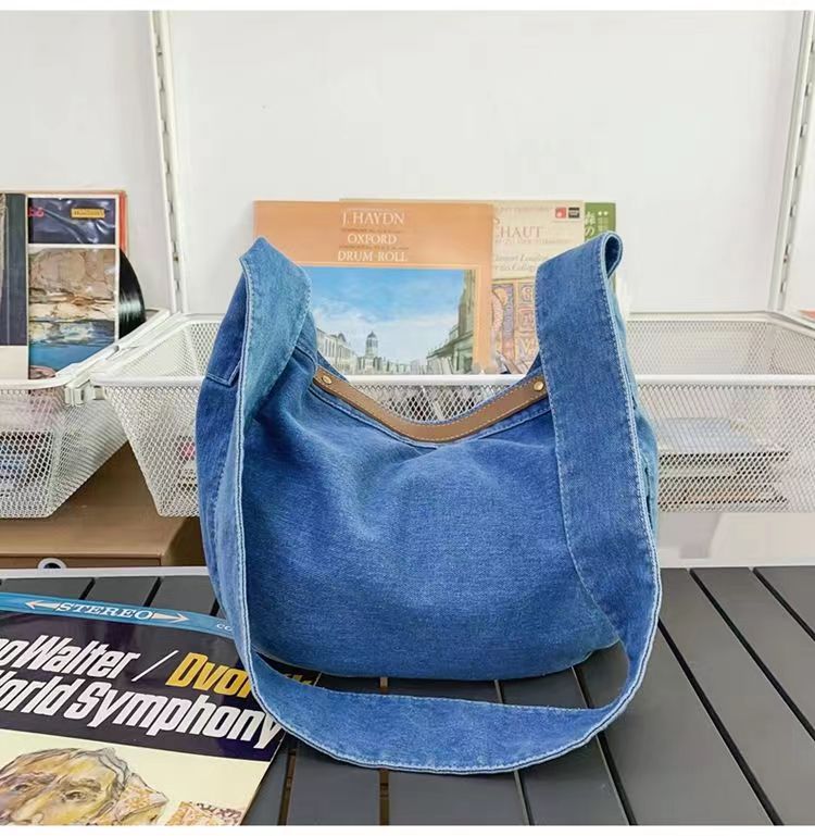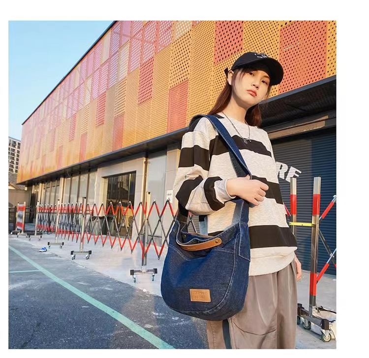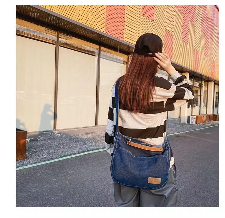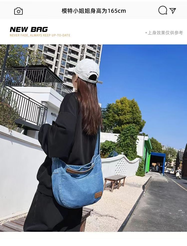 Túi đeo chéo denim nữ 2023 mới thường ngày túi vải canvas dung tích lớn sinh viên đại học lớp túi đi làm túi đeo vai