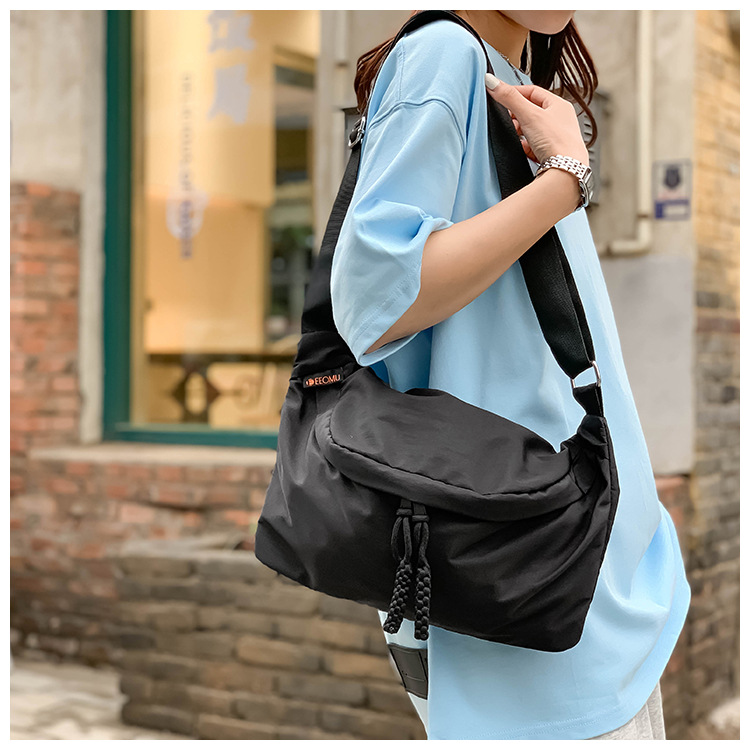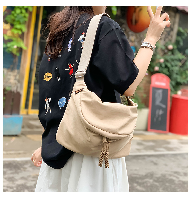 Túi Đeo Trước Ngực Mới Messenger Màu Trơn Thời Trang Nữ Công Suất Lớn Túi Messenger Đơn Giản Dây Đeo Vai Rộng Túi Đeo Vai Văn Học Nhật Bản