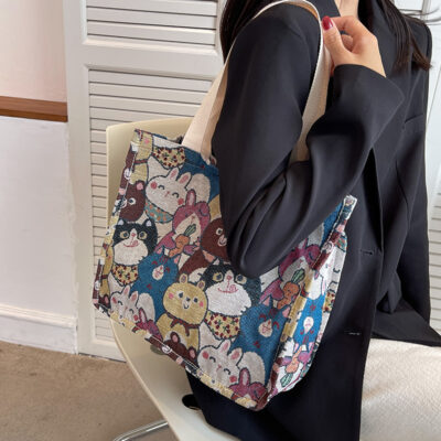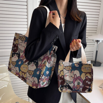 Túi đeo vai bằng vải hoạt hình dễ thương cho nữ túi sức chứa lớn 2023 túi tote di động thời trang mới ins