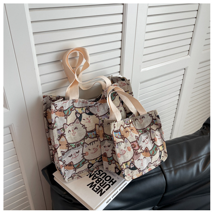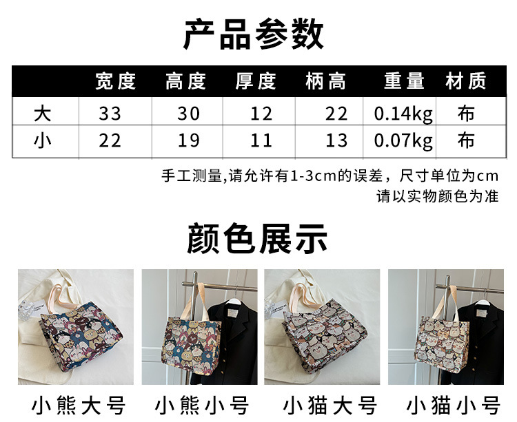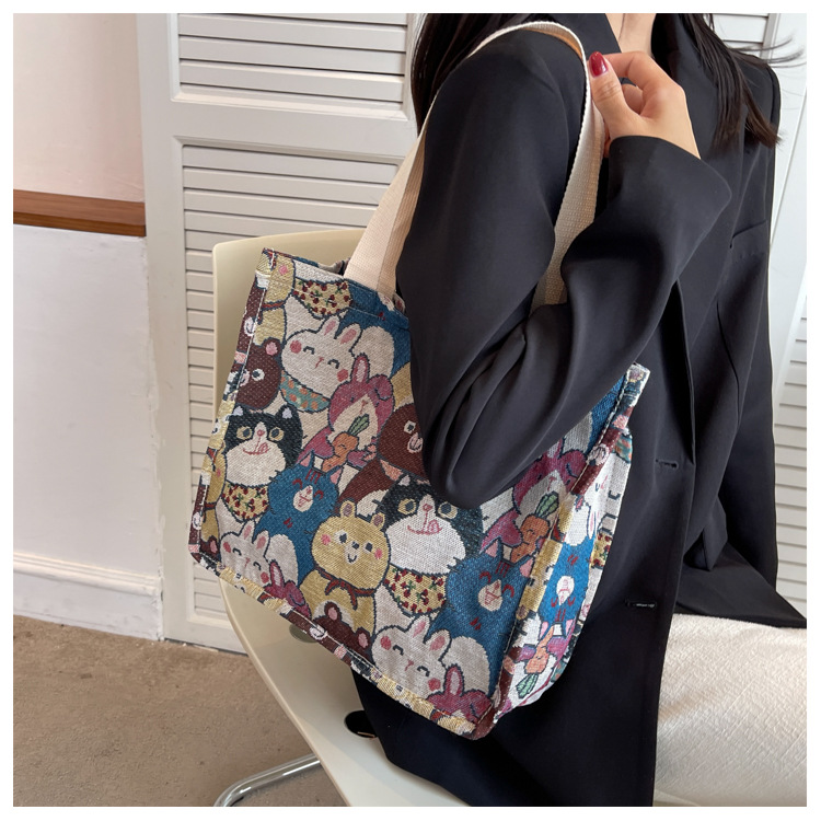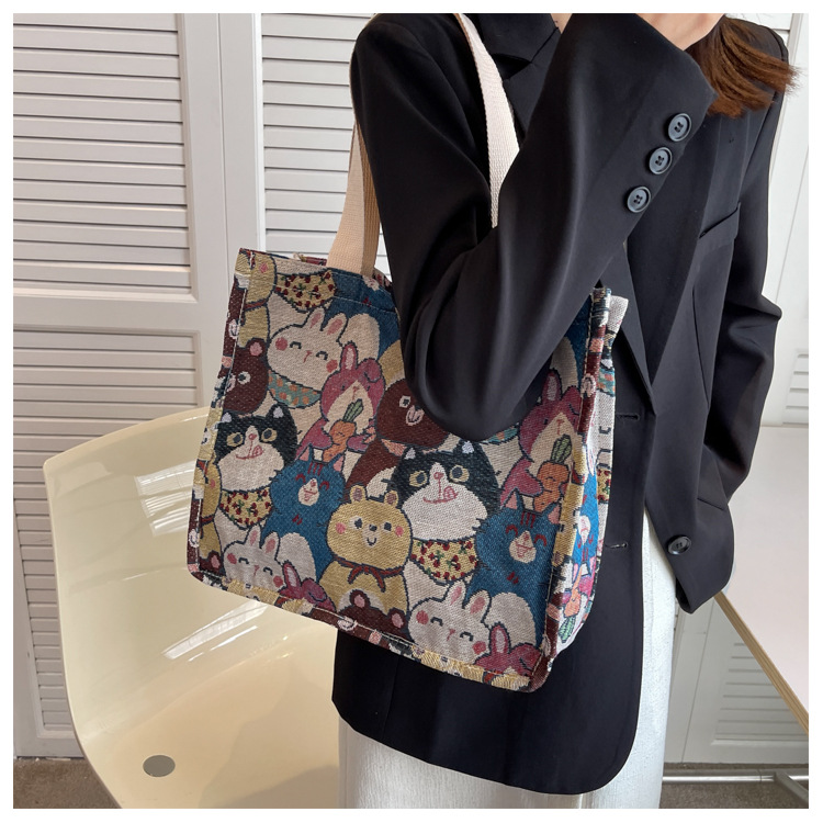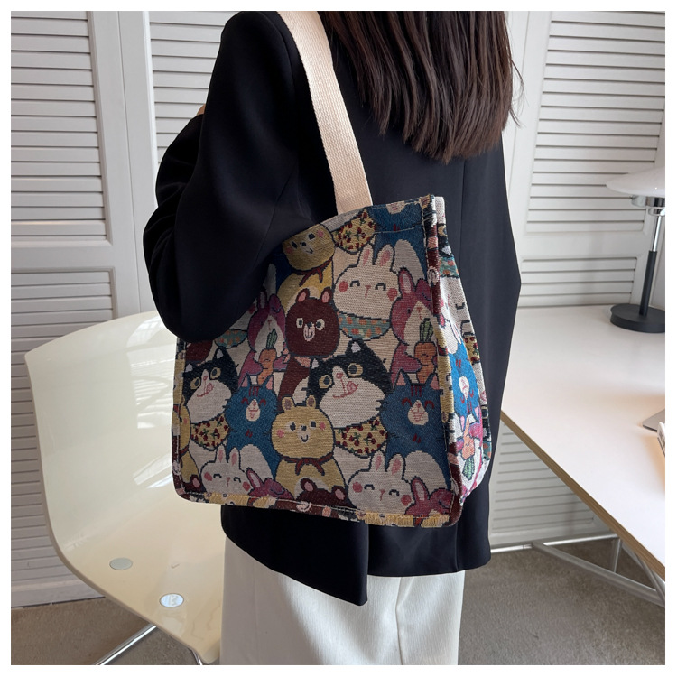 Túi đeo vai bằng vải hoạt hình dễ thương cho nữ túi sức chứa lớn 2023 túi tote di động thời trang mới ins