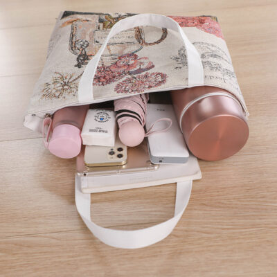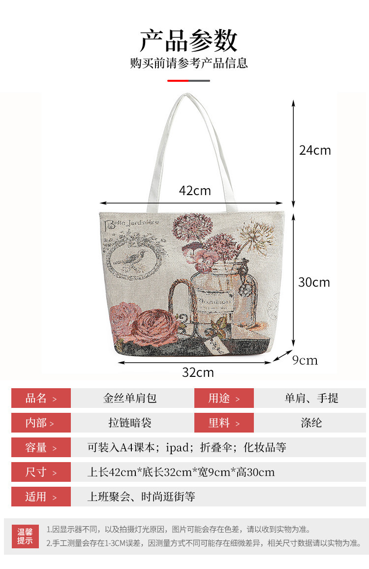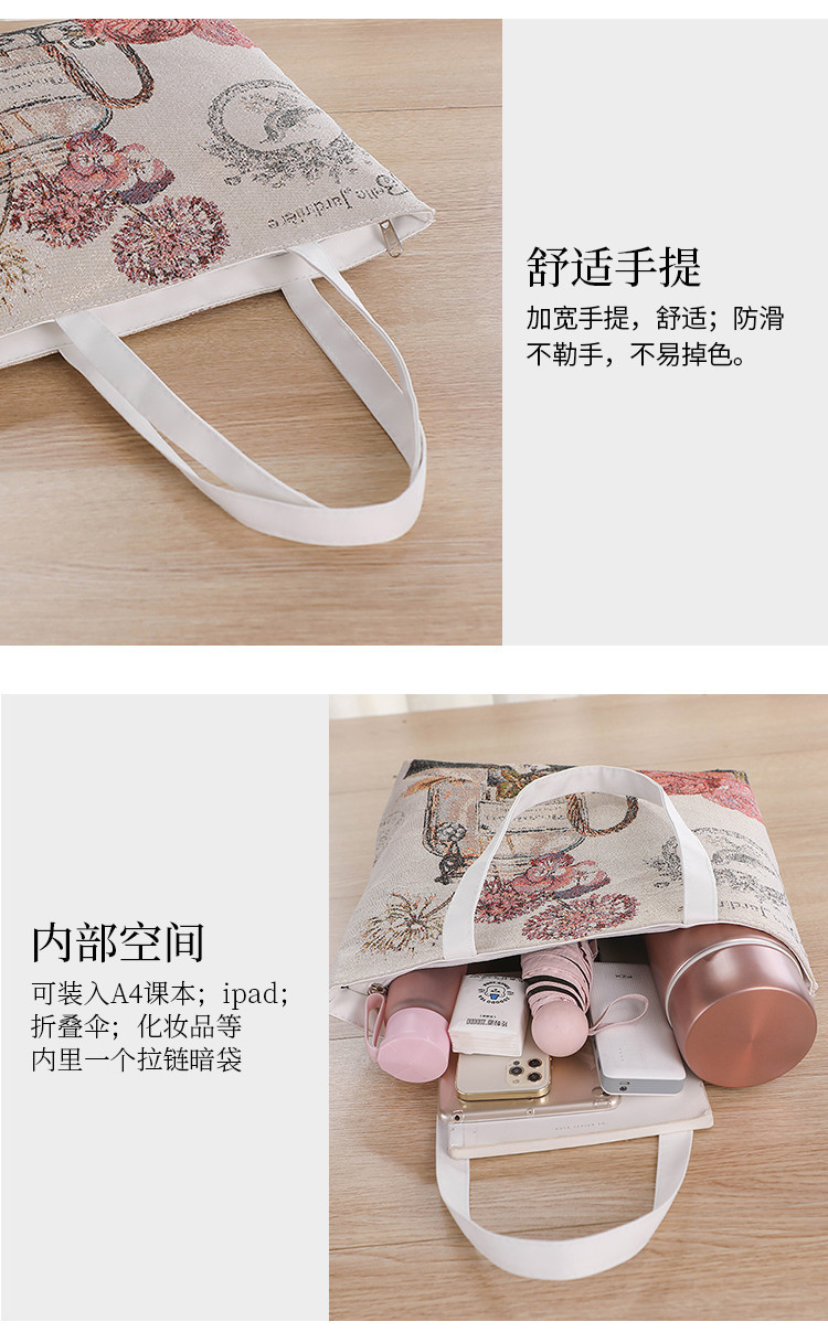 Túi đeo vai nữ túi vải bố nữ sức chứa lớn có khóa kéo thời trang dệt lụa vàng lớp học sinh hoạt hình sách