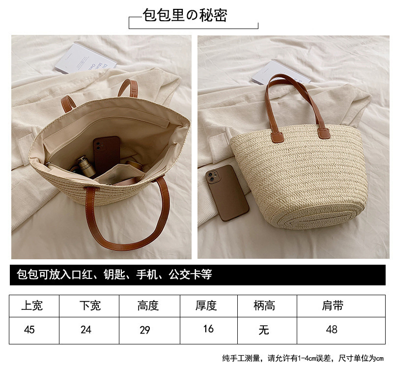 Túi dệt dành cho nữ mới Phong cách đơn giản Túi đeo vai sức chứa lớn Túi đi nghỉ đa năng bên bờ biển Túi đi lại đa năng