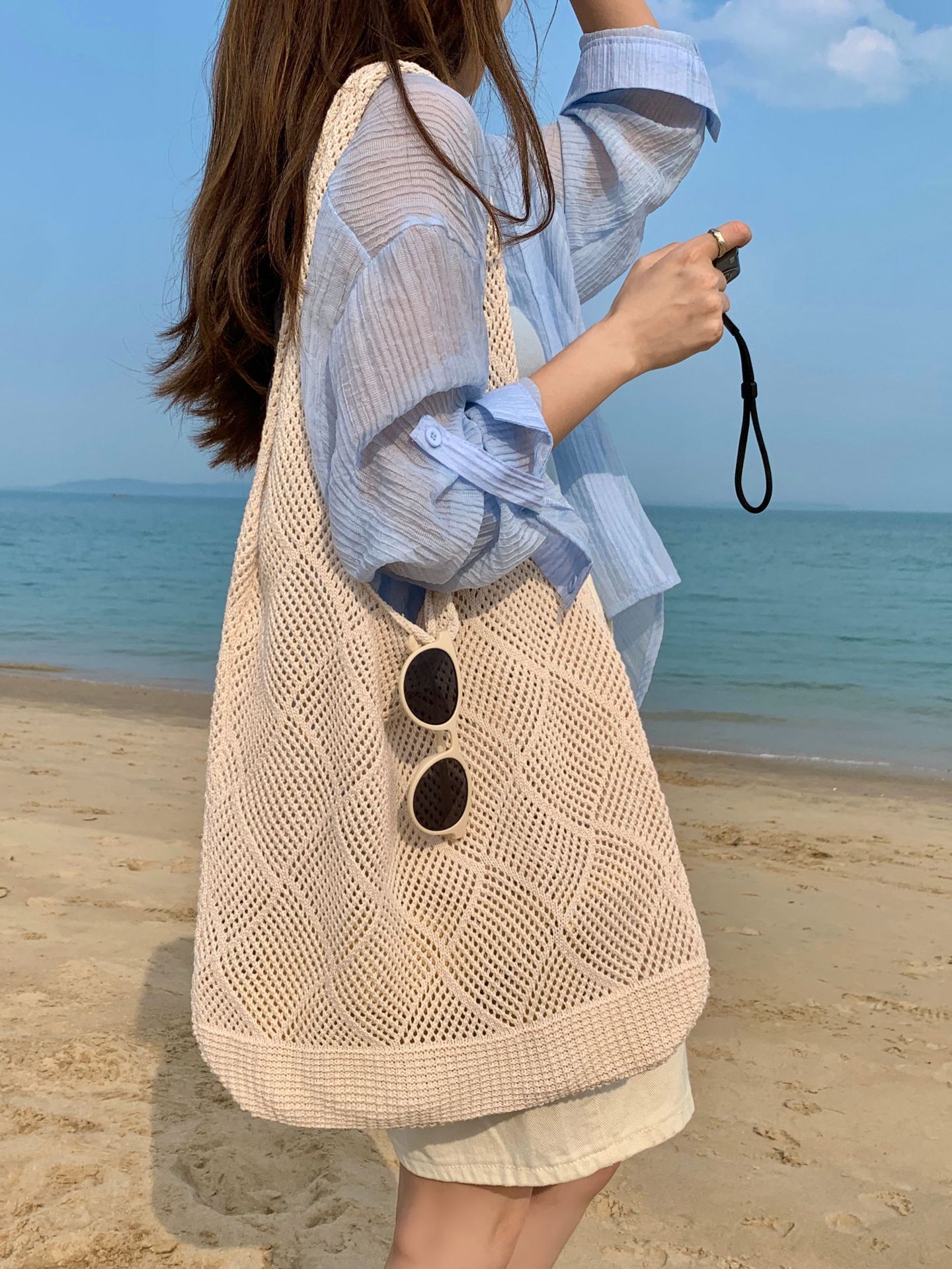 Túi dệt kim xuyên biên giới túi nữ phong cách retro túi dệt rỗng len túi tote túi xách túi đeo vai đơn giản túi