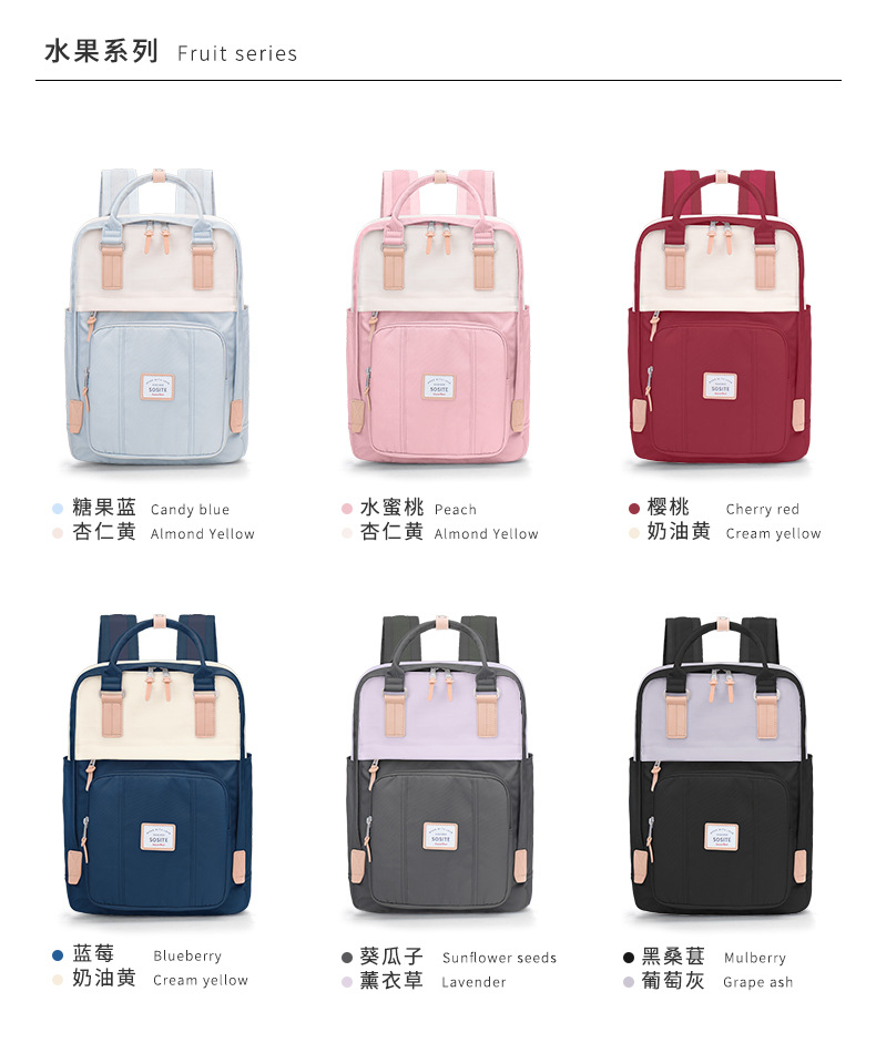 Giới tính áp dụng: Unisex/cả nam và nữ Kết cấu lót: Polyester Hoa văn: Màu trơn Số mặt hàng: 9017 Năm niêm yết Mùa: Mùa hè năm 2023 Cảnh áp dụng: Trường học Màu sắc giáo dục: Đào vừa/Quả việt quất vừa/Dâu tây vừa/Hạt hướng dương Kích thước trung bình/Đào lớn /Quả việt quất lớn/Hạt hướng dương lớn/Xanh kẹo vừa/Xanh kẹo vừa Chất liệu: Canvas Hệ thống mang: Dây đeo vai cong Các yếu tố phổ biến: Kiểu may: Tươi mát và ngọt ngào Độ tuổi đi học áp dụng: Trung học