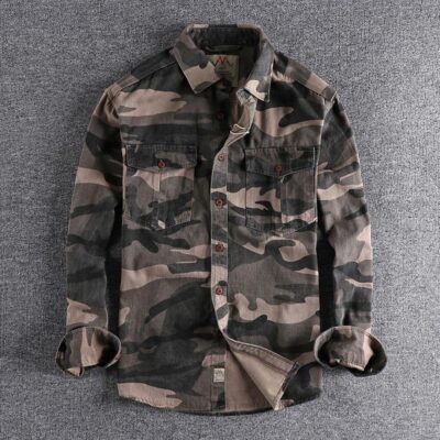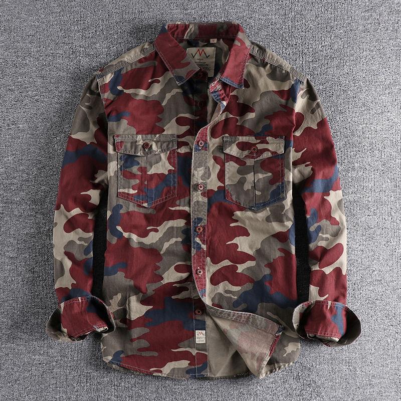 Túi đôi ngoại thương xu hướng giặt ngụy trang Quần áo bảo hộ lao động Mỹ áo sơ mi dài tay quần áo rộng chống mài mòn thường ngày của nam triều