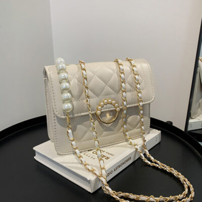 Túi hình thoi dây chuyền nữ 2023 thời trang mới phiên bản Hàn Quốc Túi đeo vai đơn ngọc trai phong cách nước ngoài Túi vuông nhỏ cho nữ Túi