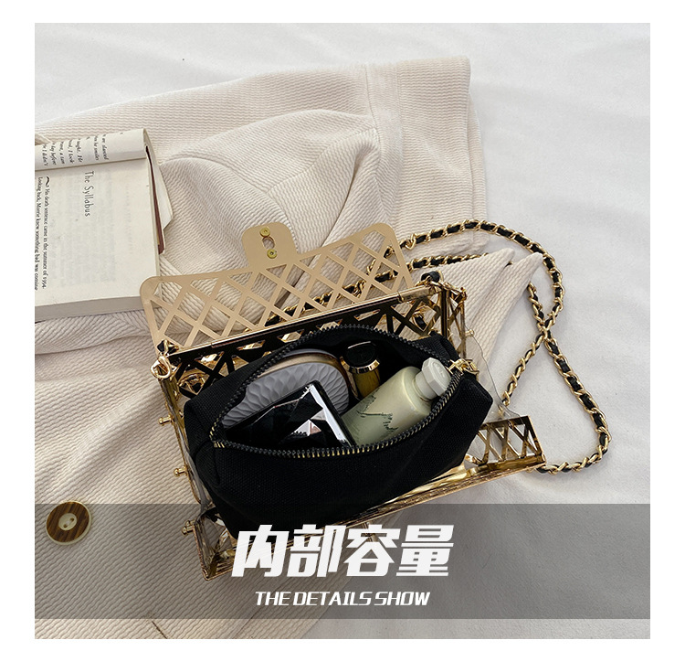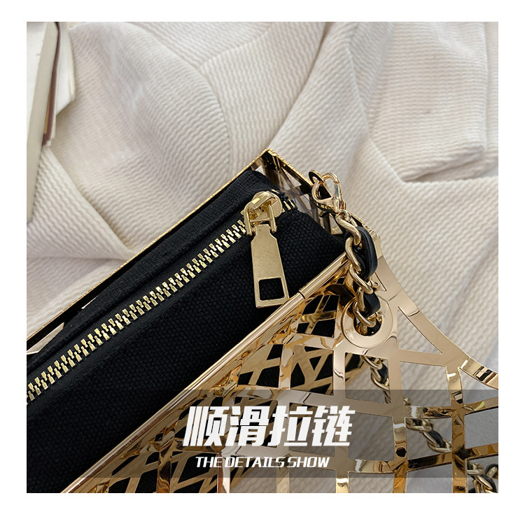 Túi kim loại nhỏ mới 2023 thời trang Âu Mỹ túi đeo vai rỗng cá tính ins xu hướng túi vuông nhỏ đeo chéo nữ