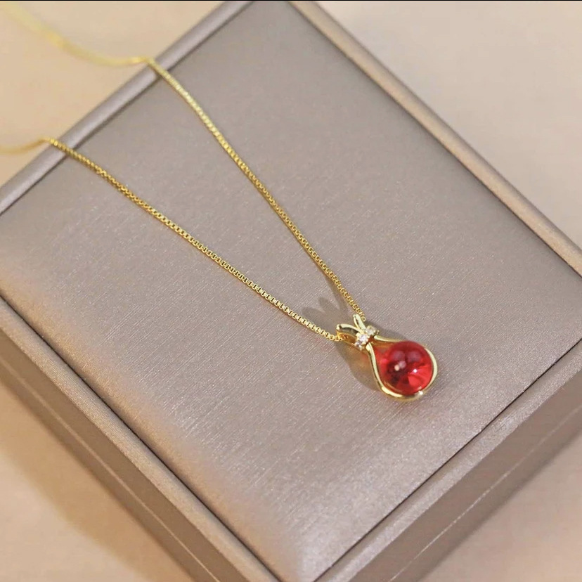 Túi may mắn vòng cổ tự nhiên dây chuyền cổ ánh sáng mặt dây chuyền thiết kế hốc sang trọng chuỗi xương đòn hợp thời trang phù hợp với tất cả các trận đấu đơn giản hỗ trợ phát sóng trực tiếp