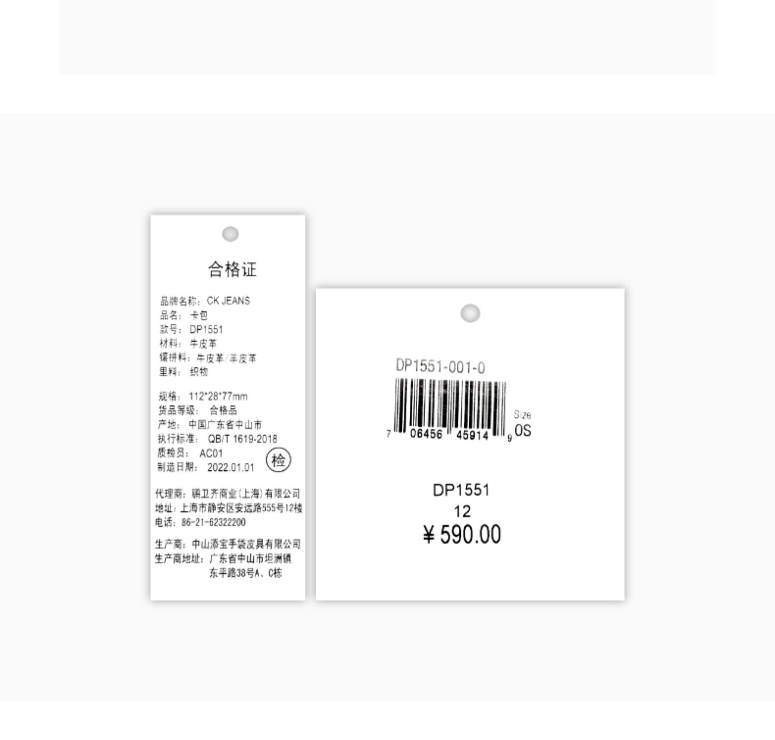 Túi nữ CK 22 mùa xuân mới nữ thời trang dây kéo tay kim loại LOGO túi đựng thẻ da bò DP1551