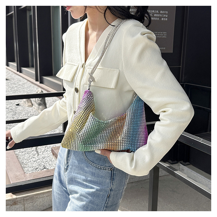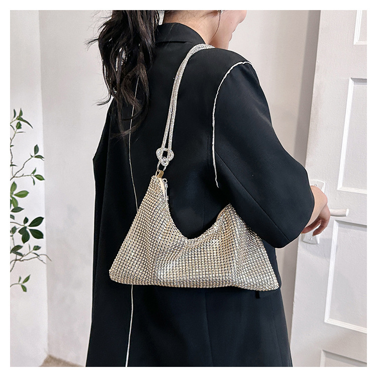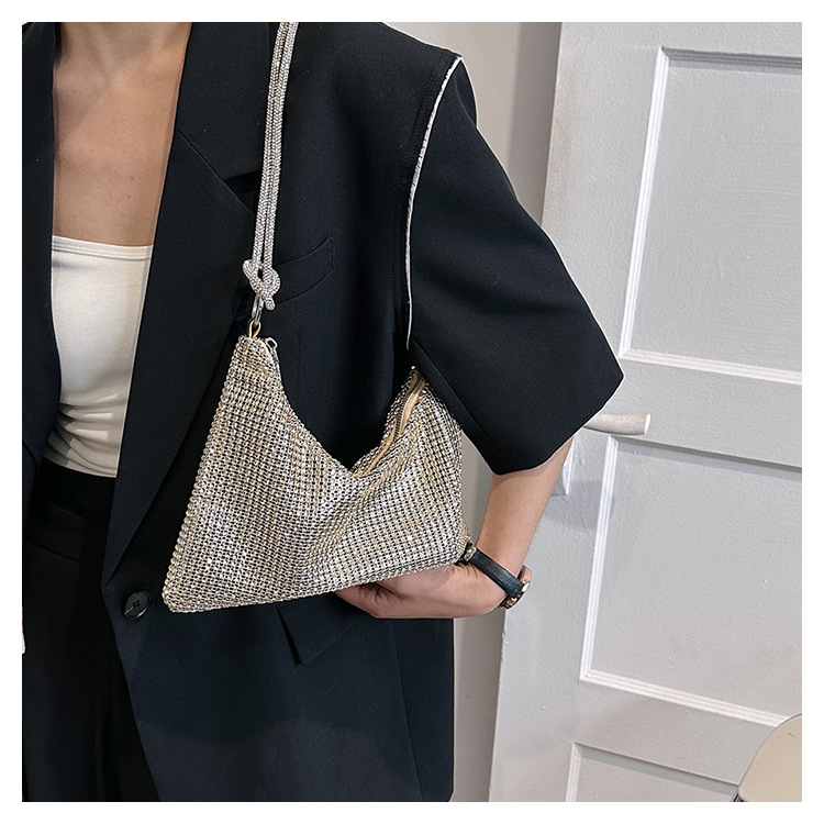 Túi phổ biến năm nay mới 2023 thời trang châu Âu và Mỹ túi đeo vai phong cách cổ điển đính đá giả kim cương giả cho nữ Túi sát nách Messenger