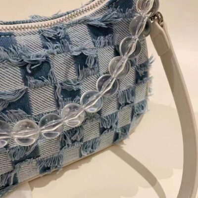Túi Sát Nách Túi Đeo Vai Kẻ Sọc Công Thức Denim Tua Rua Túi Nữ Mới Túi Hạt Túi Xách Đa Năng