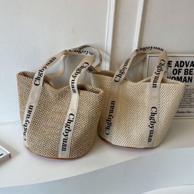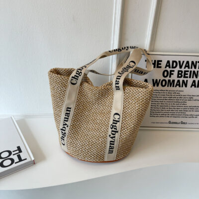 Túi tote dệt rơm túi chữ cái túi xô nữ mùa hè mới 2023 túi sát nách dệt túi đeo vai di động