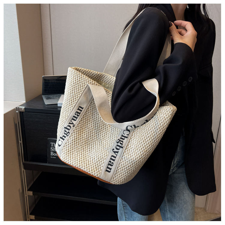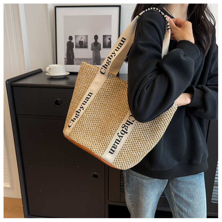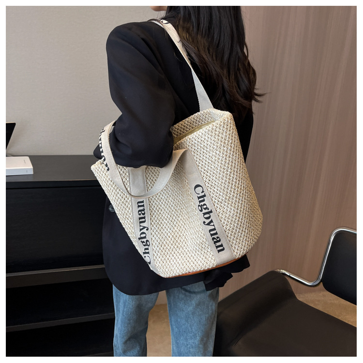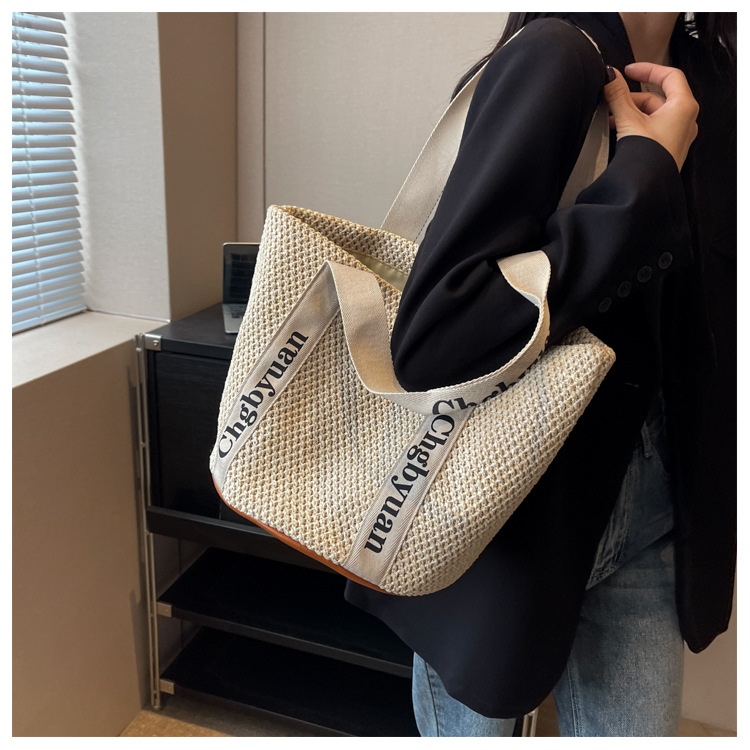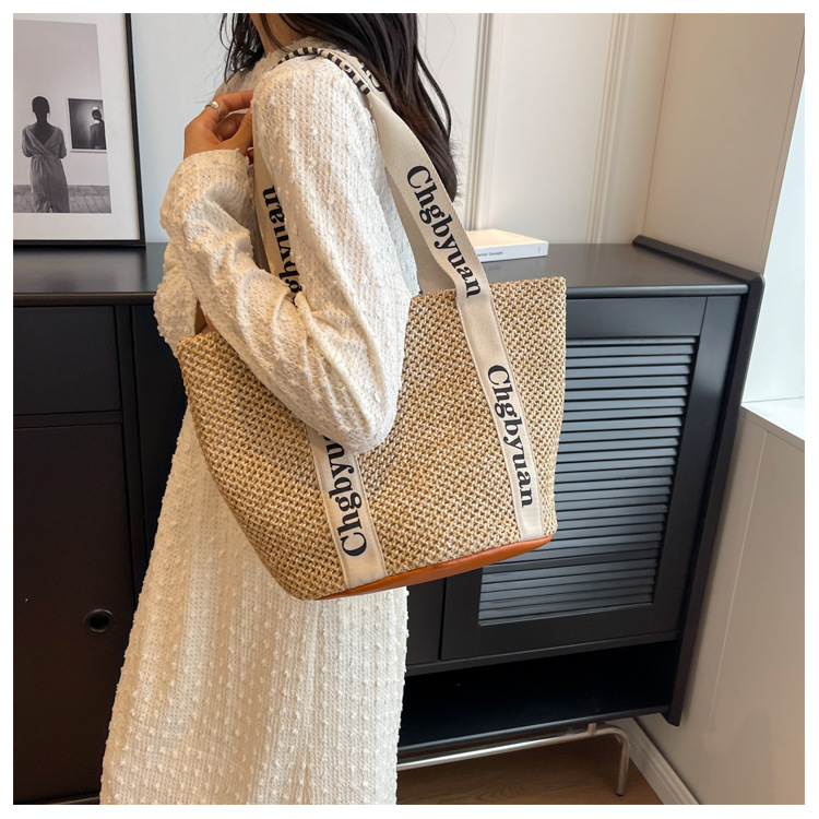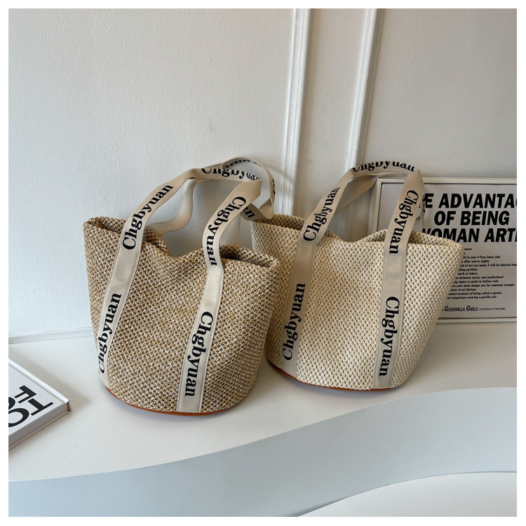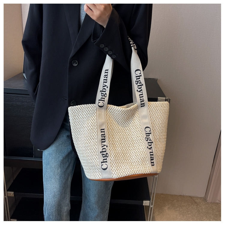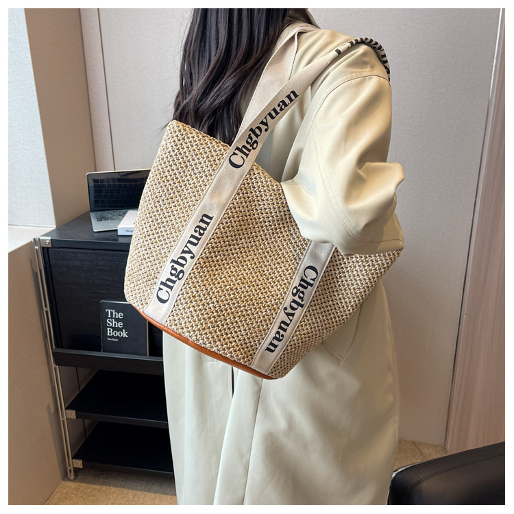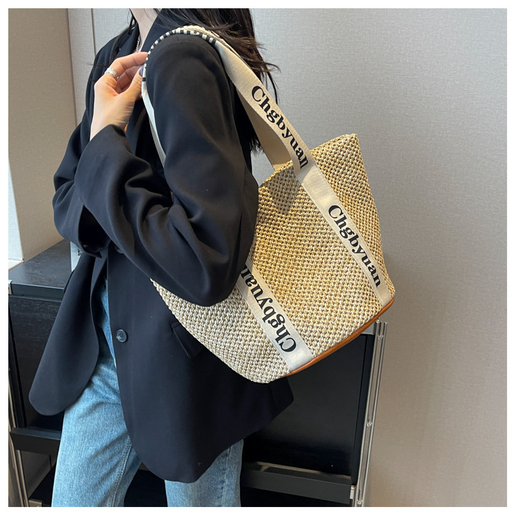 Túi tote dệt rơm túi chữ cái túi xô nữ mùa hè mới 2023 túi sát nách dệt túi đeo vai di động