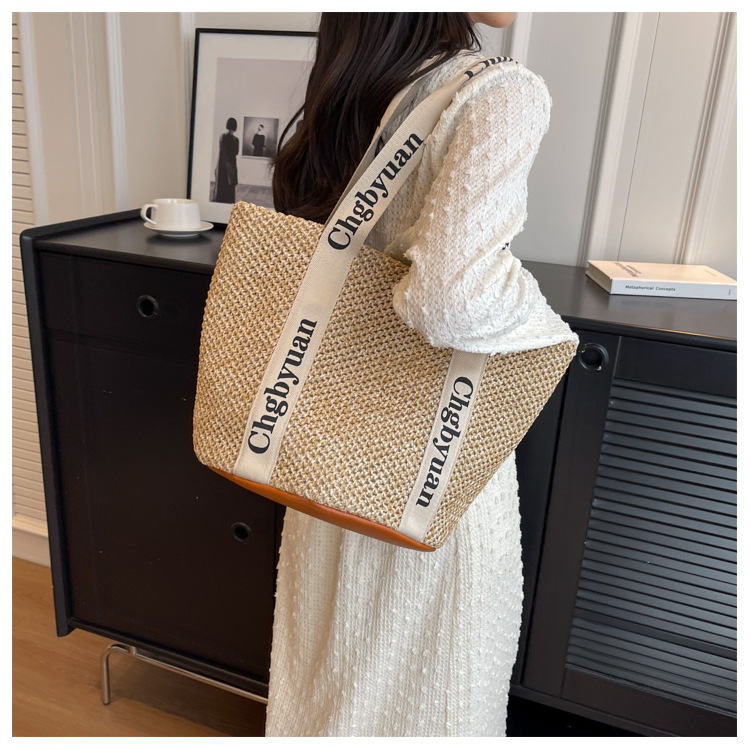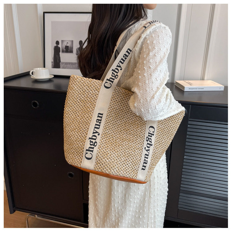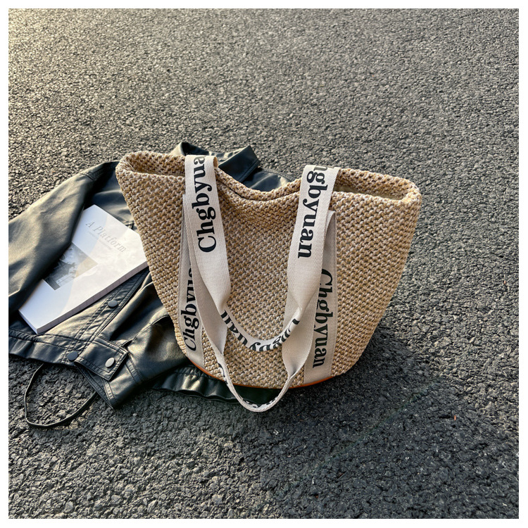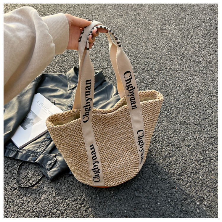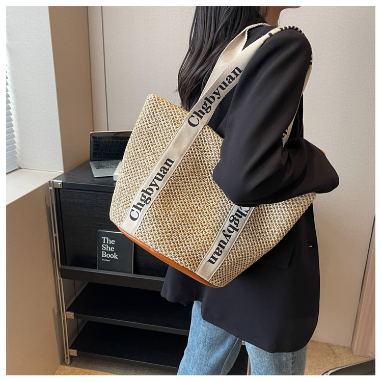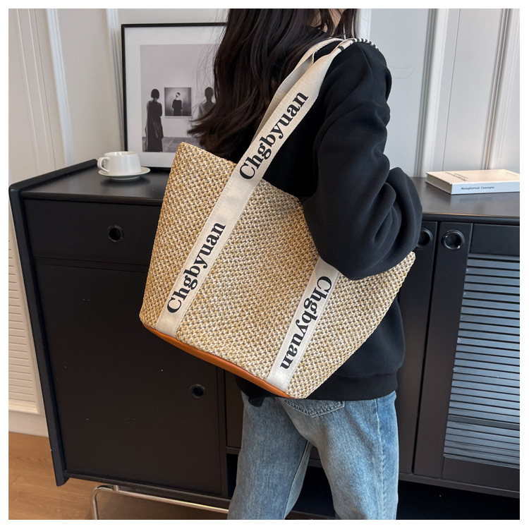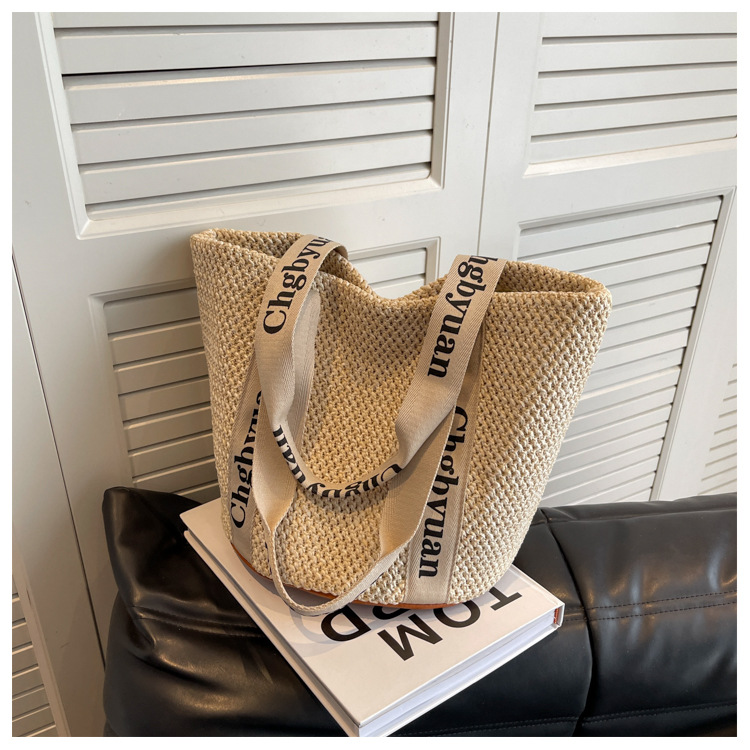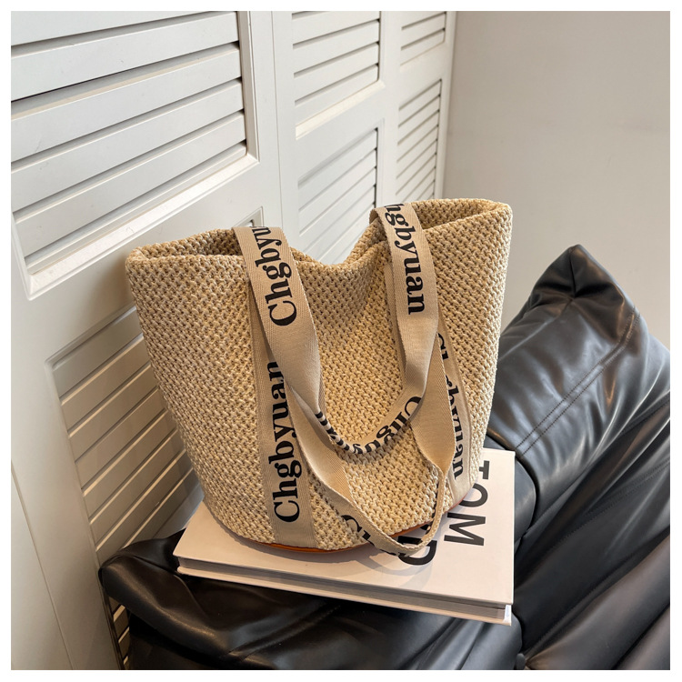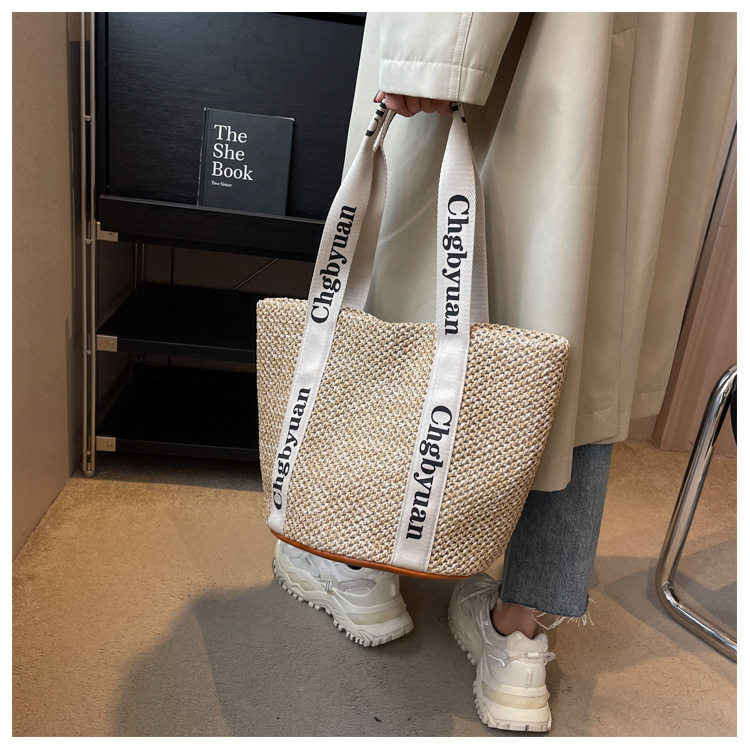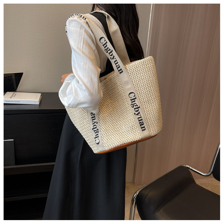 Túi tote dệt rơm túi chữ cái túi xô nữ mùa hè mới 2023 túi sát nách dệt túi đeo vai di động