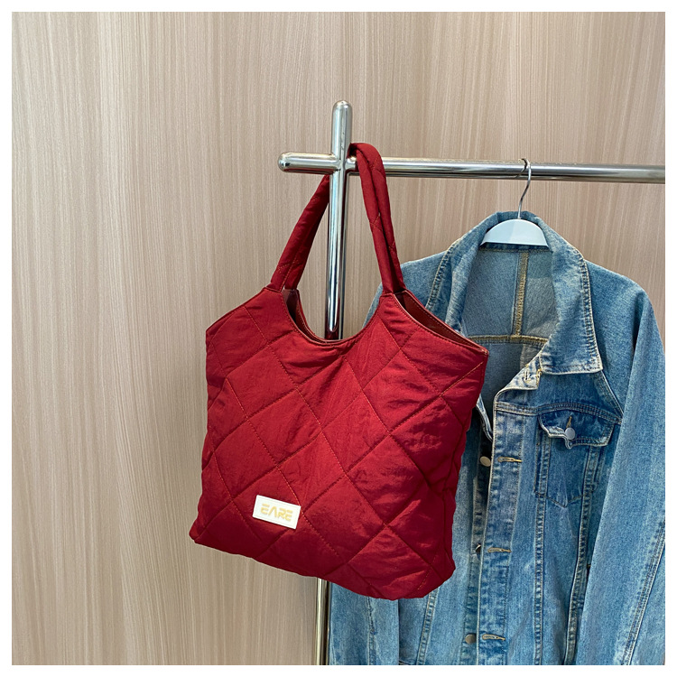 Túi tote nữ 2023 mới công suất lớn hình thoi chỉ thêu túi đeo vai học sinh lớp túi đi làm túi xách