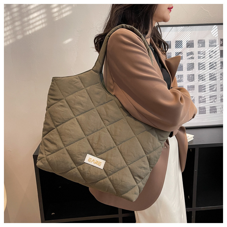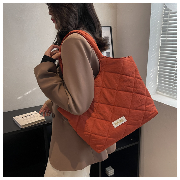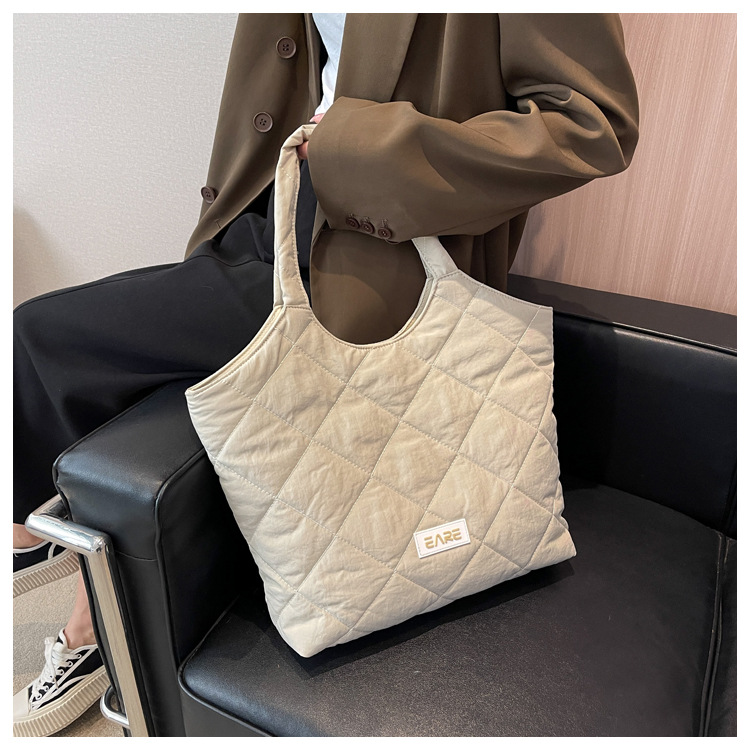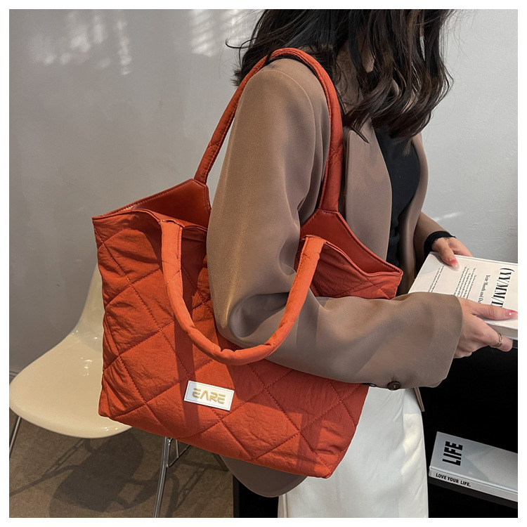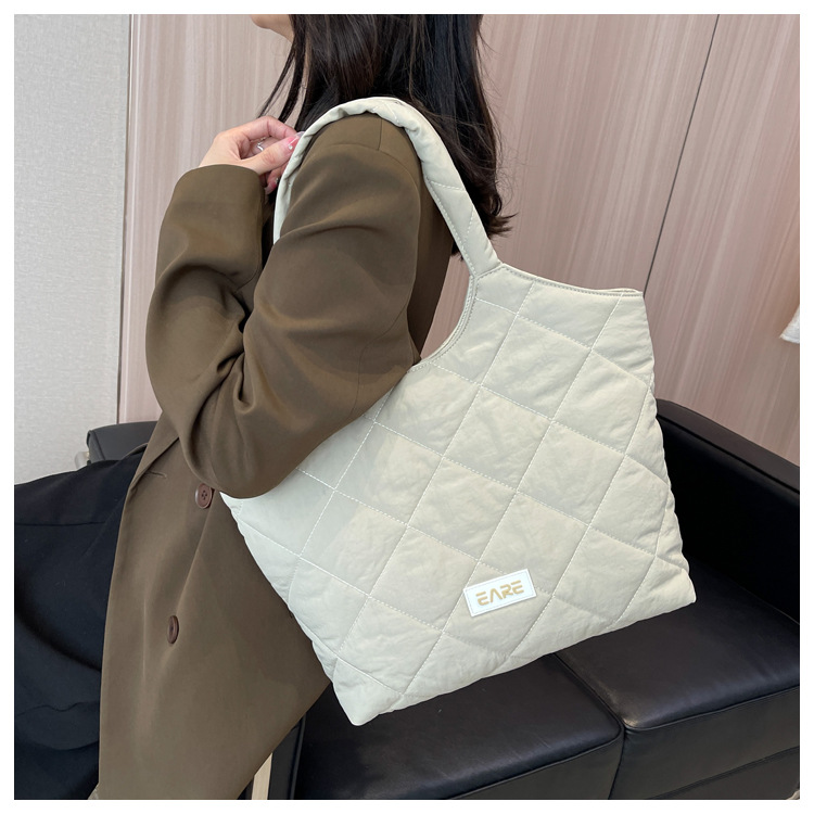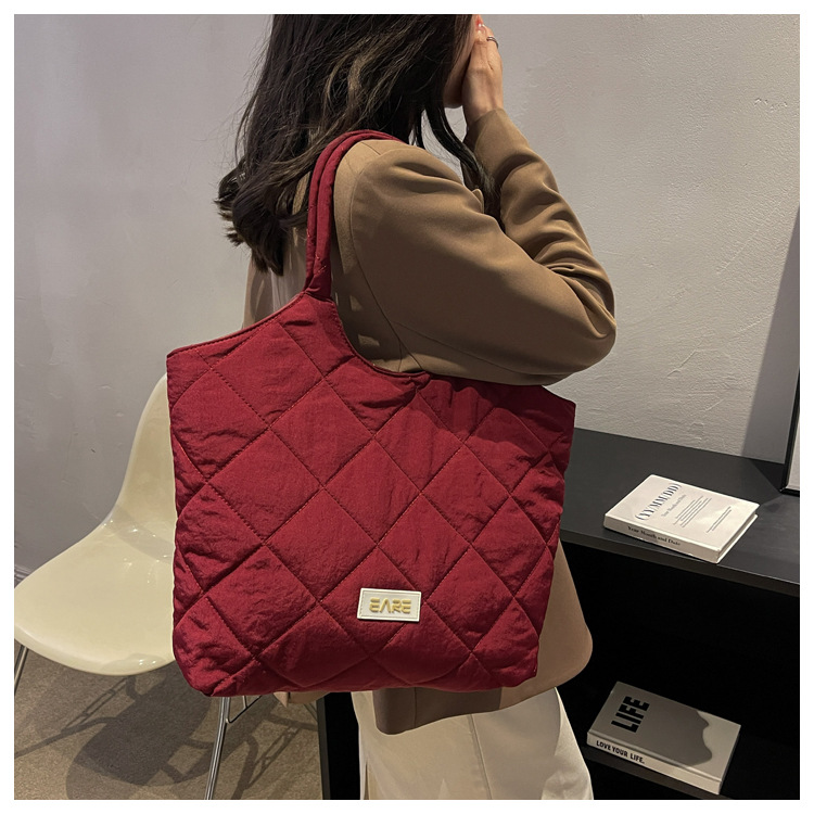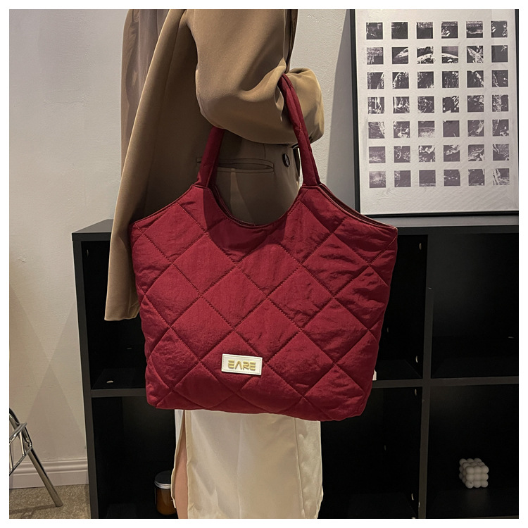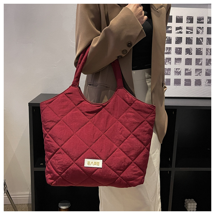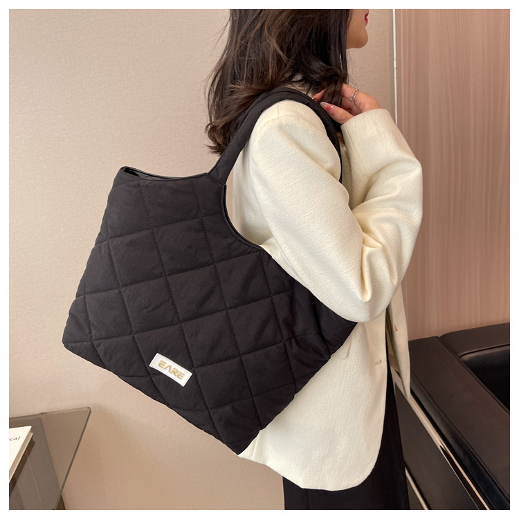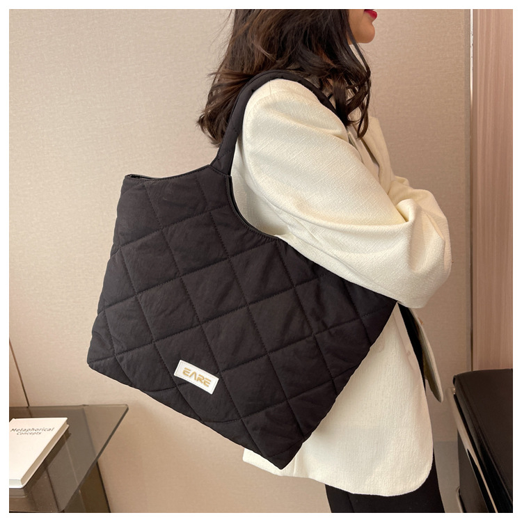 Túi tote nữ 2023 mới công suất lớn hình thoi chỉ thêu túi đeo vai học sinh lớp túi đi làm túi xách
