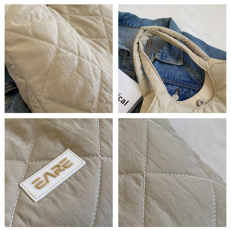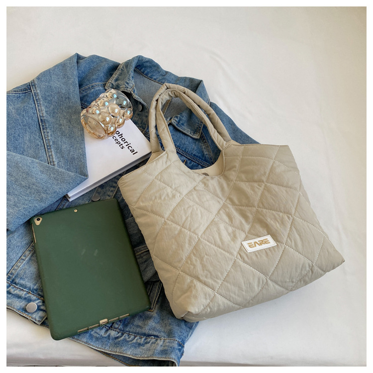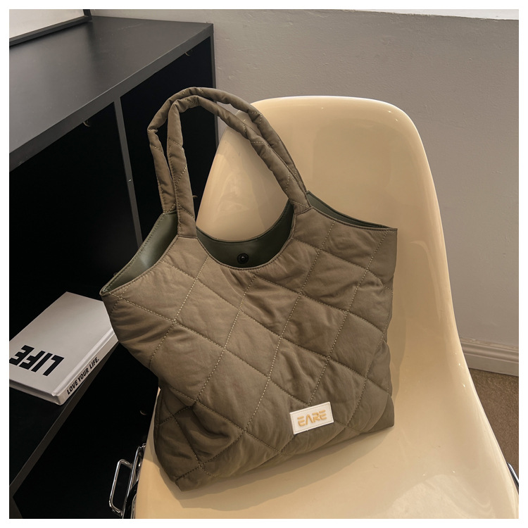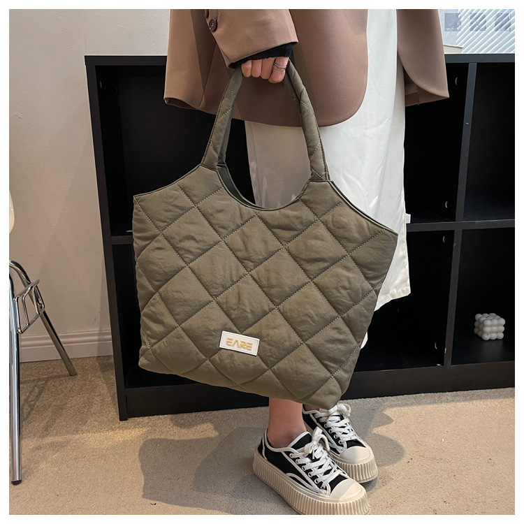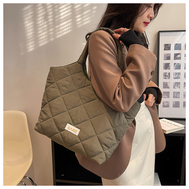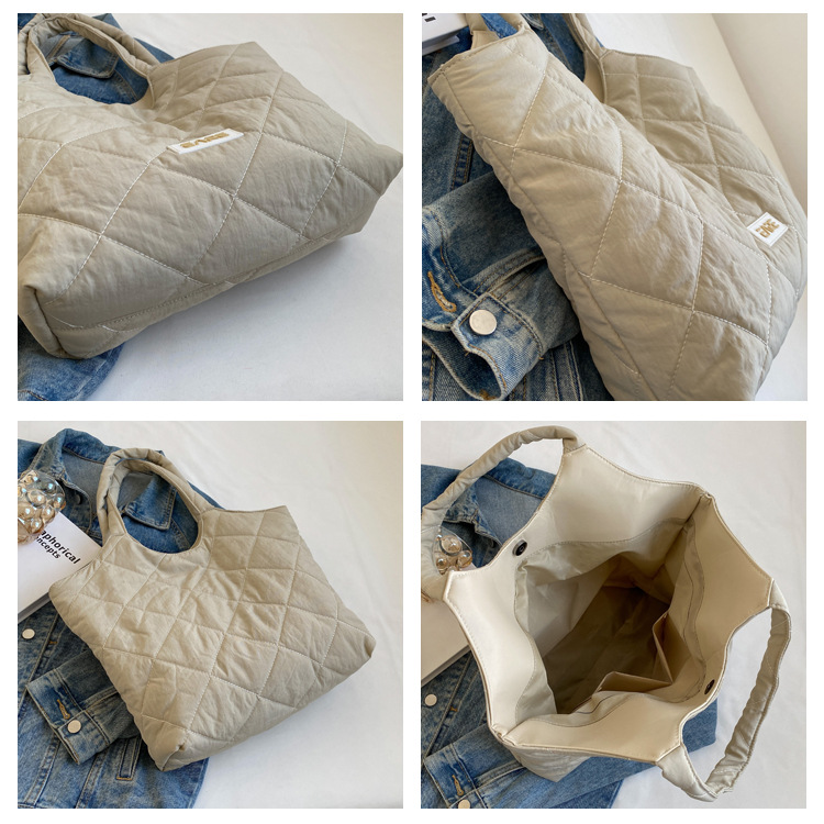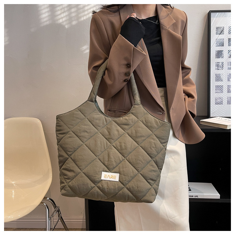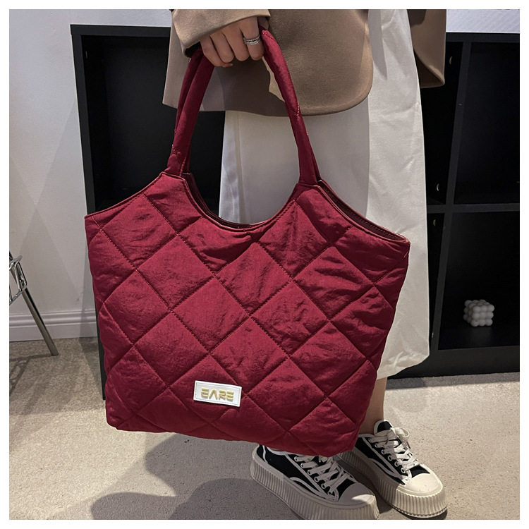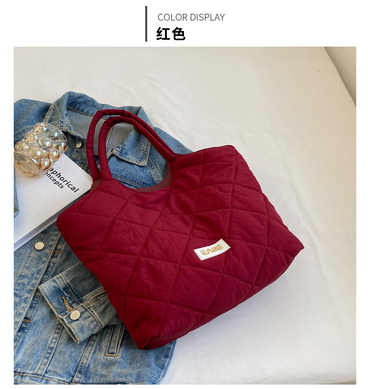 Túi tote nữ 2023 mới công suất lớn hình thoi chỉ thêu túi đeo vai học sinh lớp túi đi làm túi xách